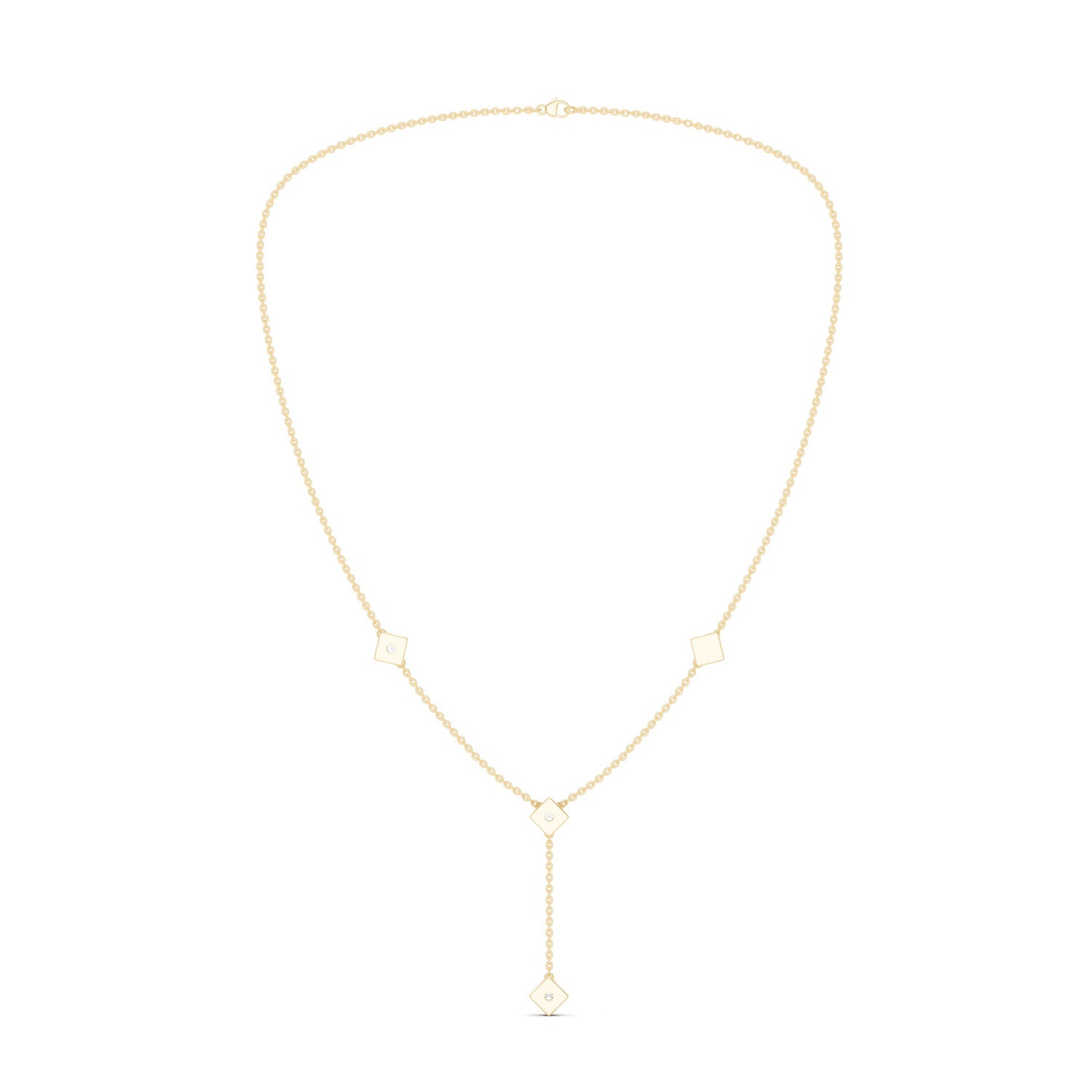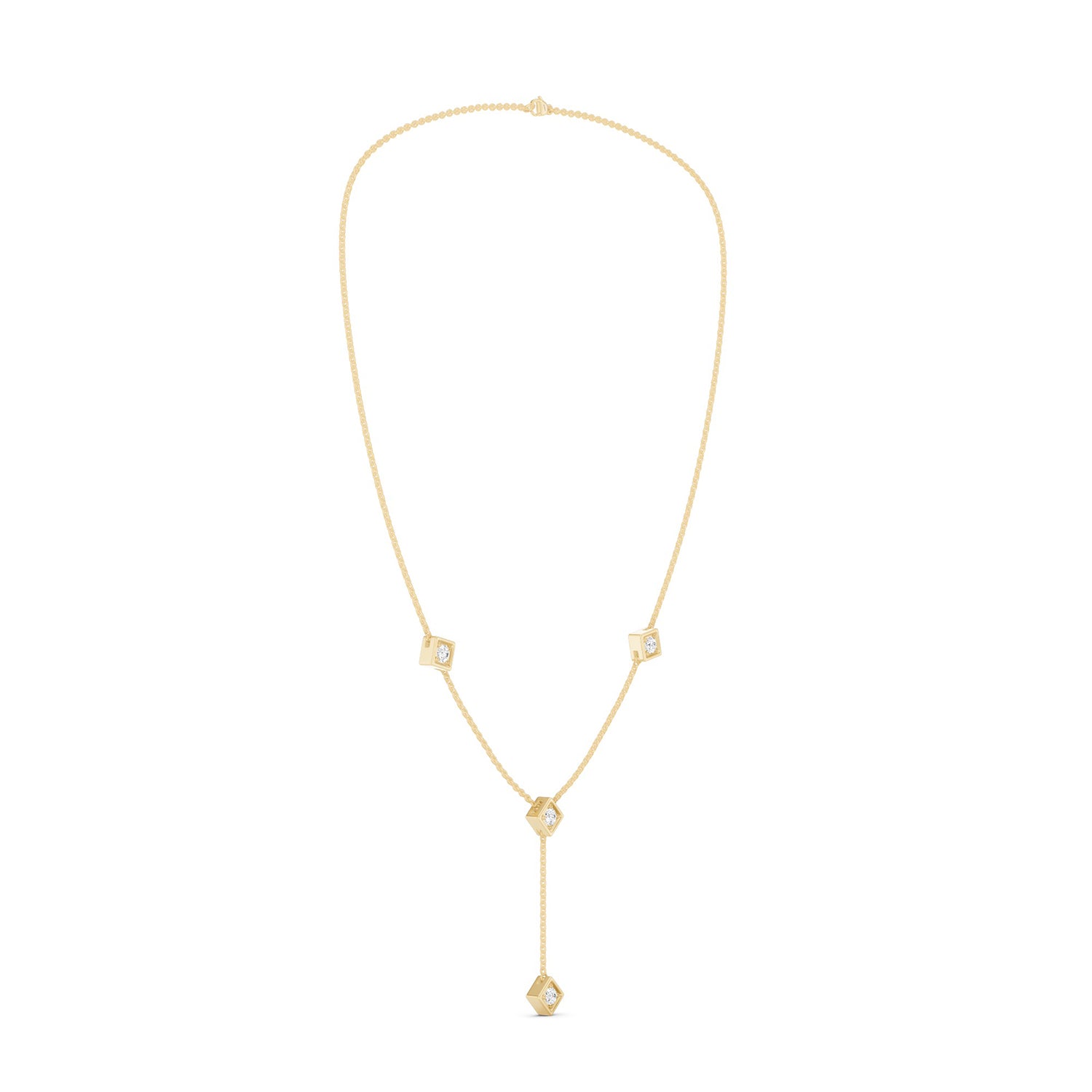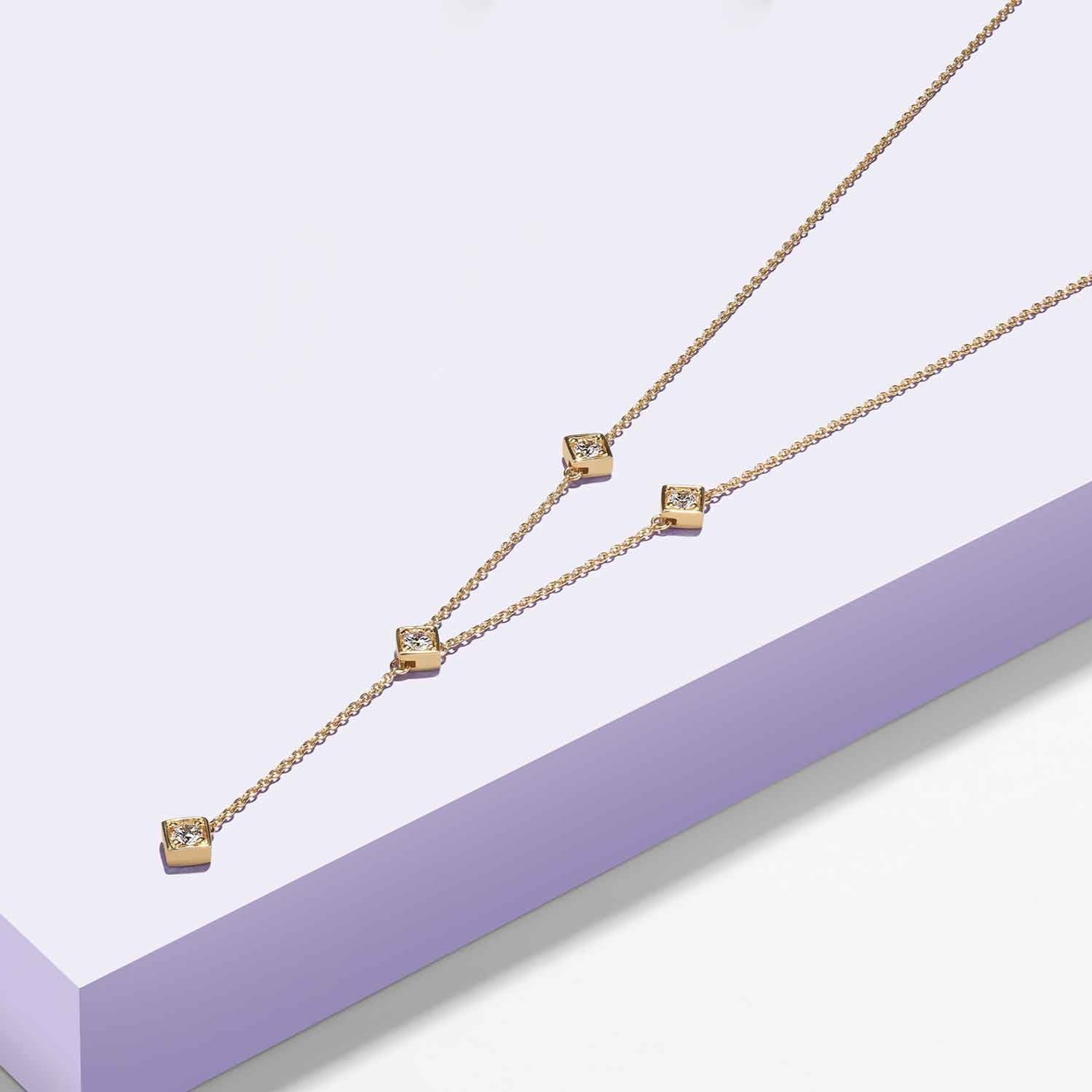 Make a subtle statement with the the Cubic Stationed Y Necklace, a stunning blend of dainty elegance and sustainable luxury. Handcrafted with lab-grown diamonds set in 14KT gold, this necklace adds a delicate yet striking accent to any look. Pe. . . Read More