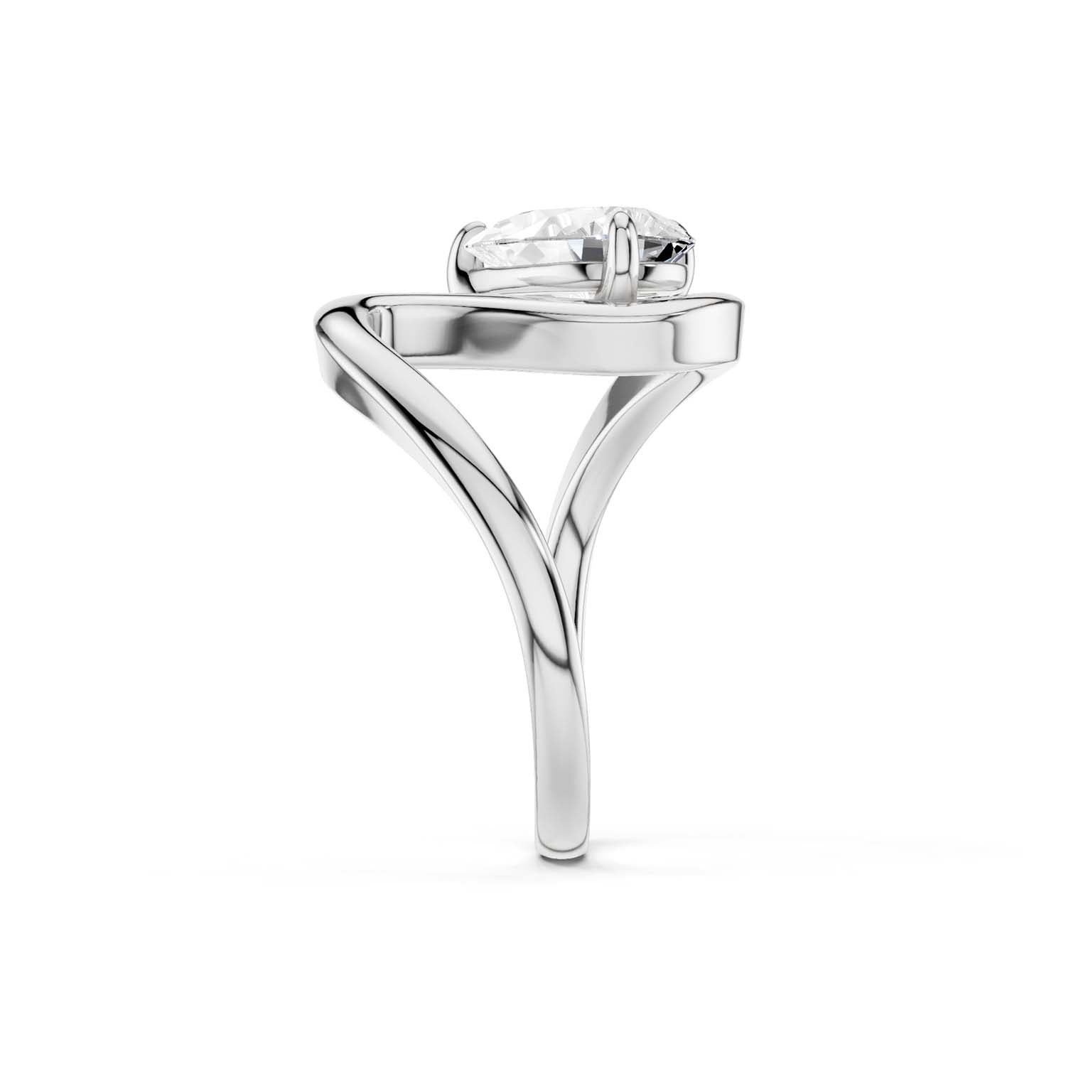 For a more contemporary and edgy flair, opt for this wrap-around curved design with a pear-cut lab diamond ring. This unique ring with a sleek and chic spin exudes an enthralling charm showcasing its everlasting beauty.