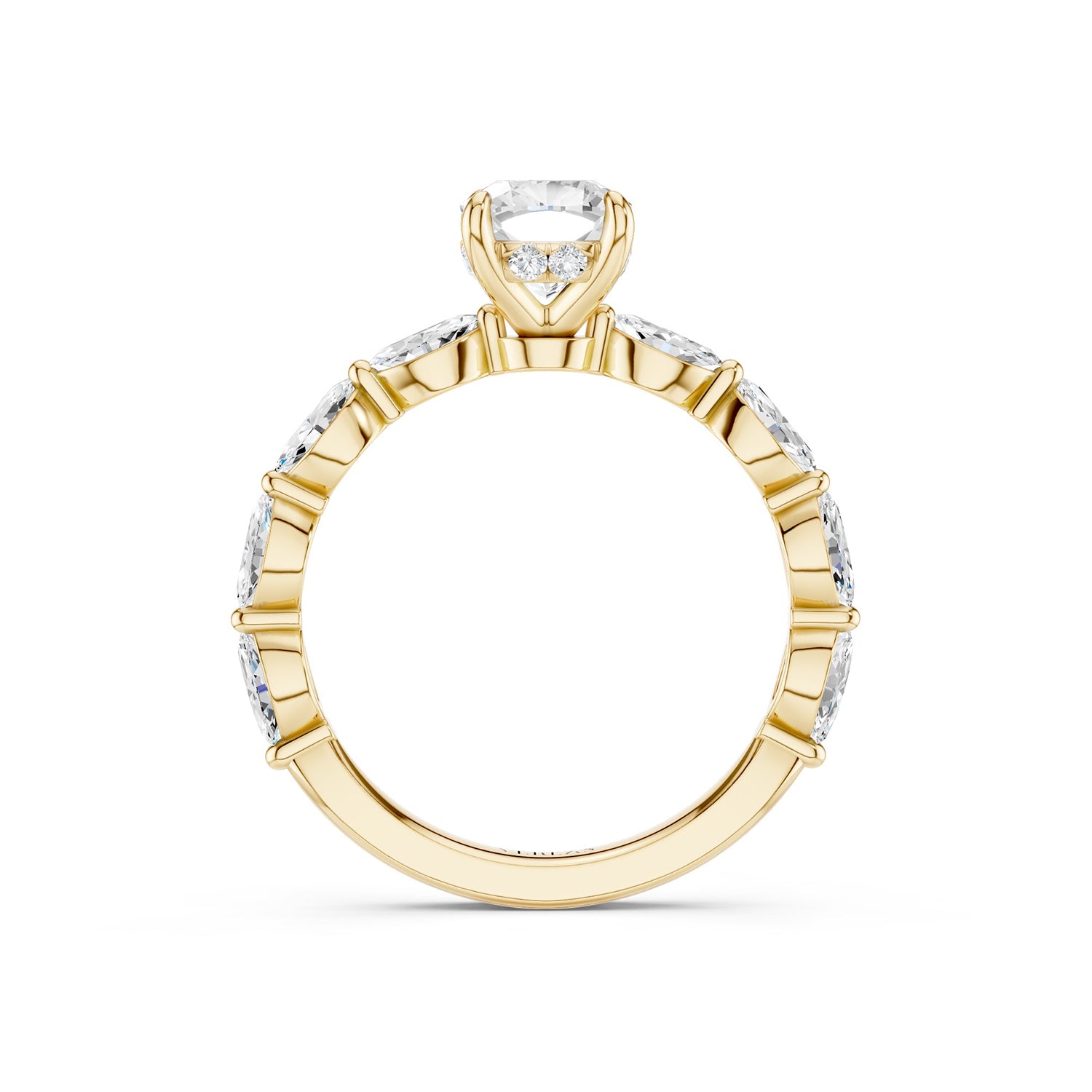 The Hidden Halo Marquise Diamond Engagement Ring reveals its artistry only upon a closer look. A delicate halo of diamonds lies beneath a stunning centerpiece; a design crafted for those who value subtle sophistication. And that golden band adorned with magnificent marquise diamonds is what elevates the experience of wearing this ring to a whole new level. Find your perfect solitaire engagement ring.