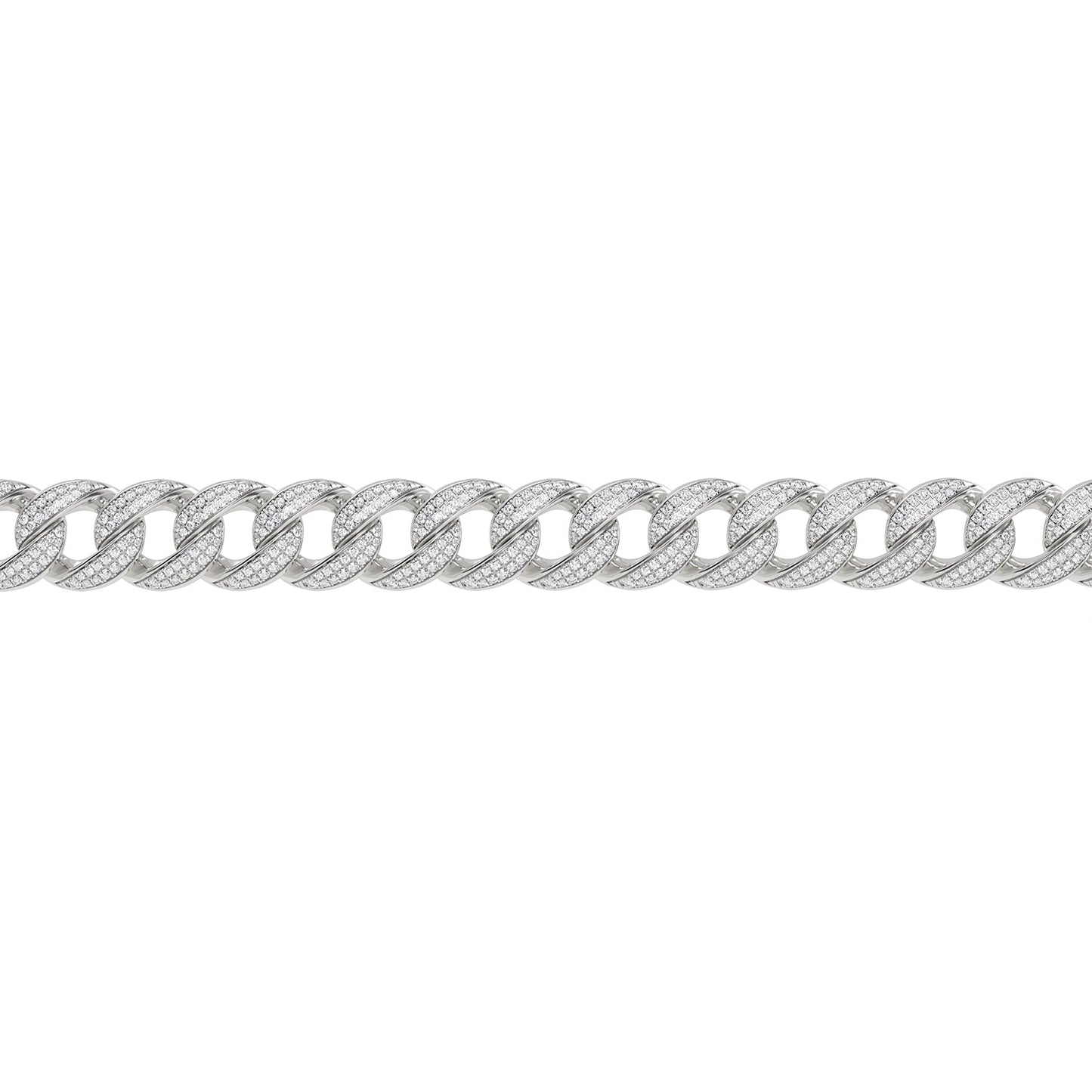 This Diamond Cuban Link Bracelet showcases a meticulously crafted curved Cuban link chain that gracefully wraps around your wrist. Each link is adorned with a radiant round diamonds, creating a continuous shimmer that catches the eye and elevates your every look. This diamond-cut bracelet stands as the epitome of a solitary style statement, exuding both strength and elegance with a distinct touch that sets it apart.