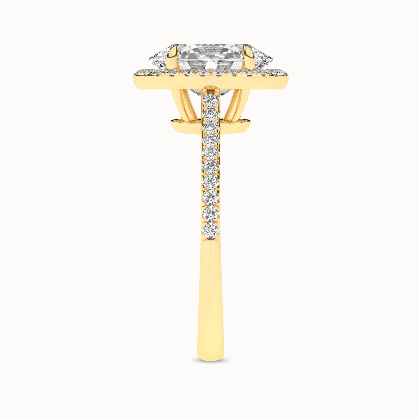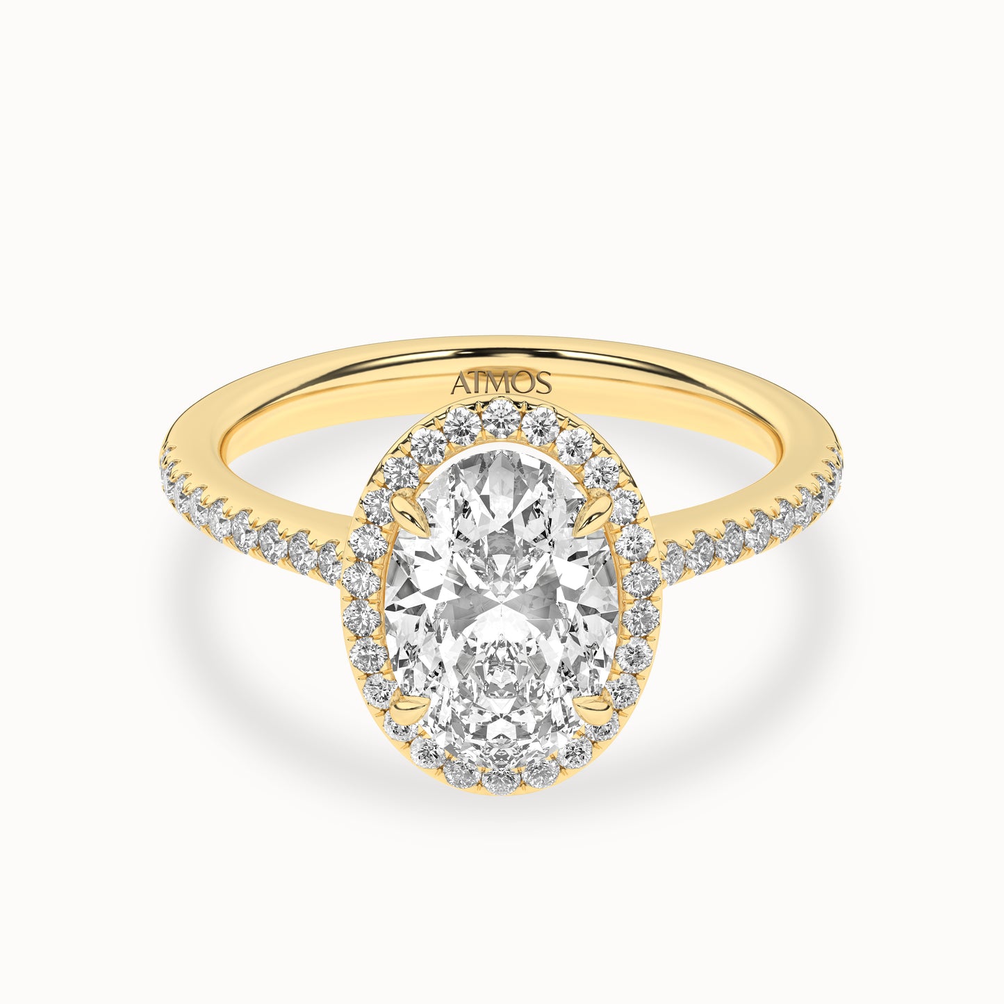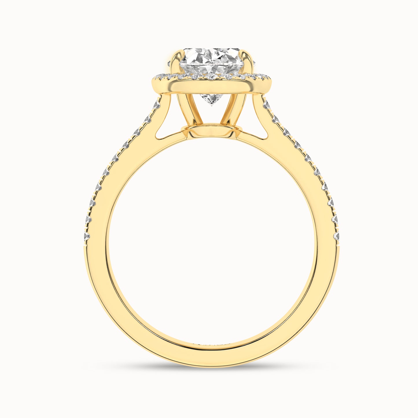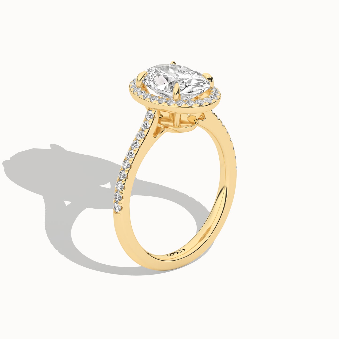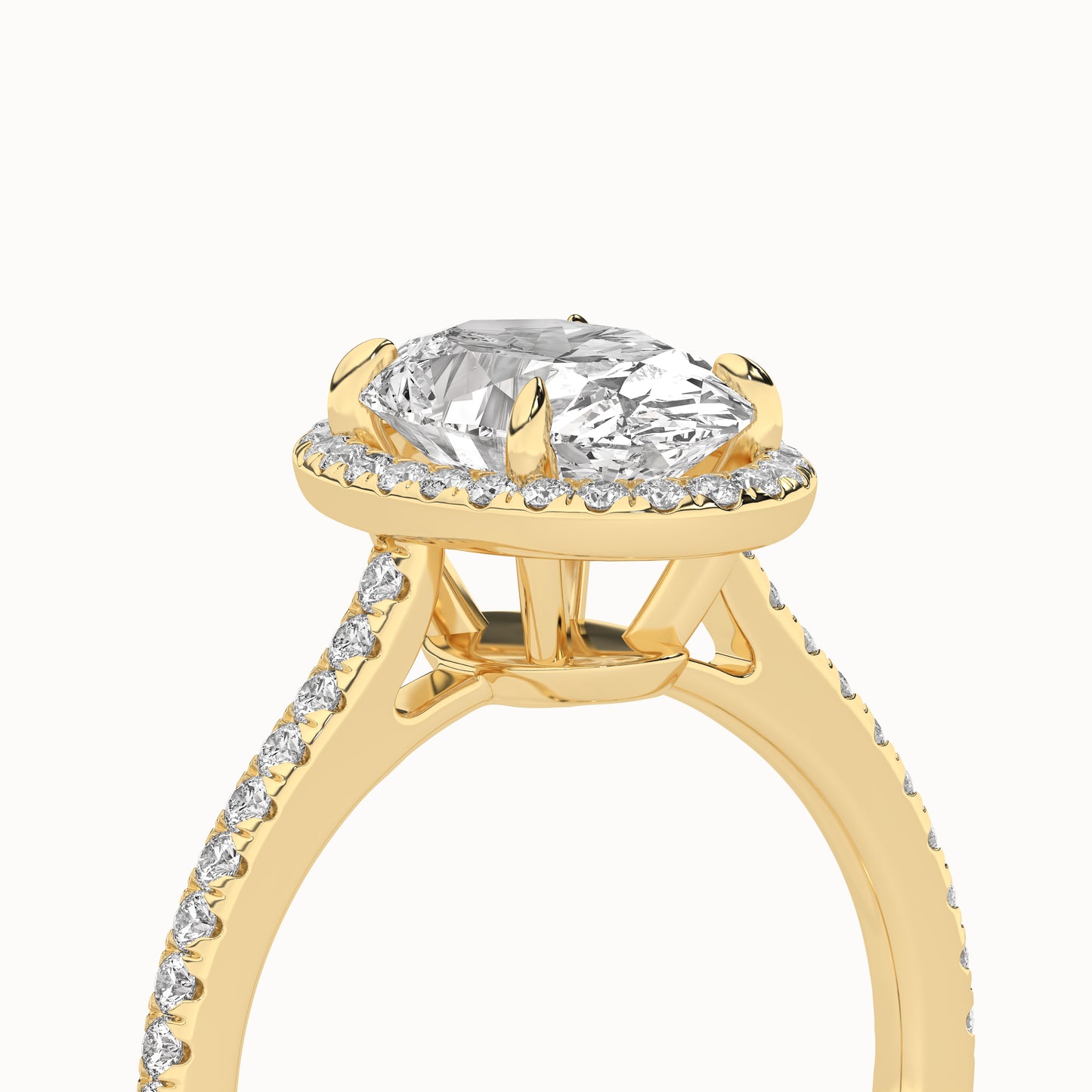 This lab-grown diamond halo ring is a testament to exquisite craftsmanship with carefully placed pave diamonds around the ellipse-cut center stone. With remarkable sparkle and shine, this ring makes for an elegant choice for its modern appeal.