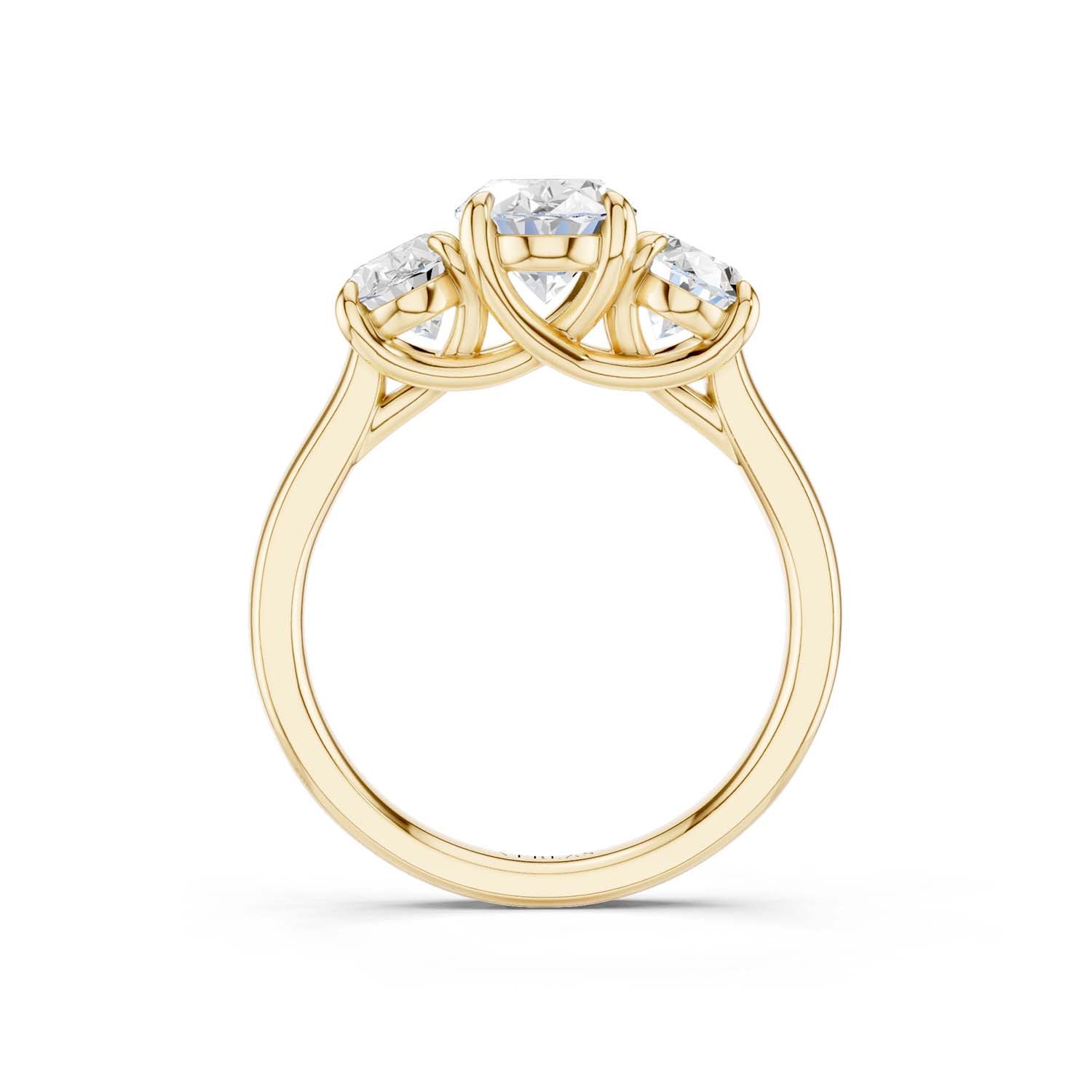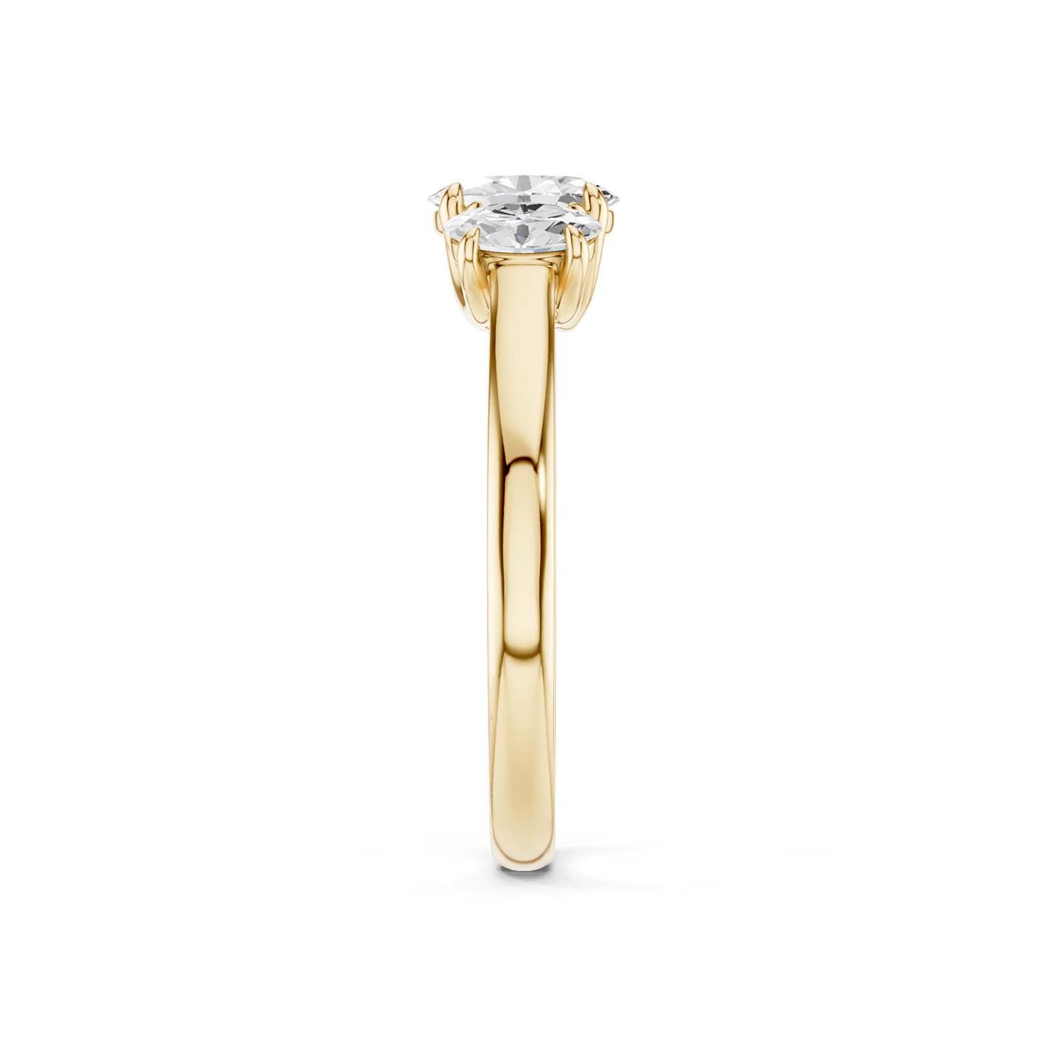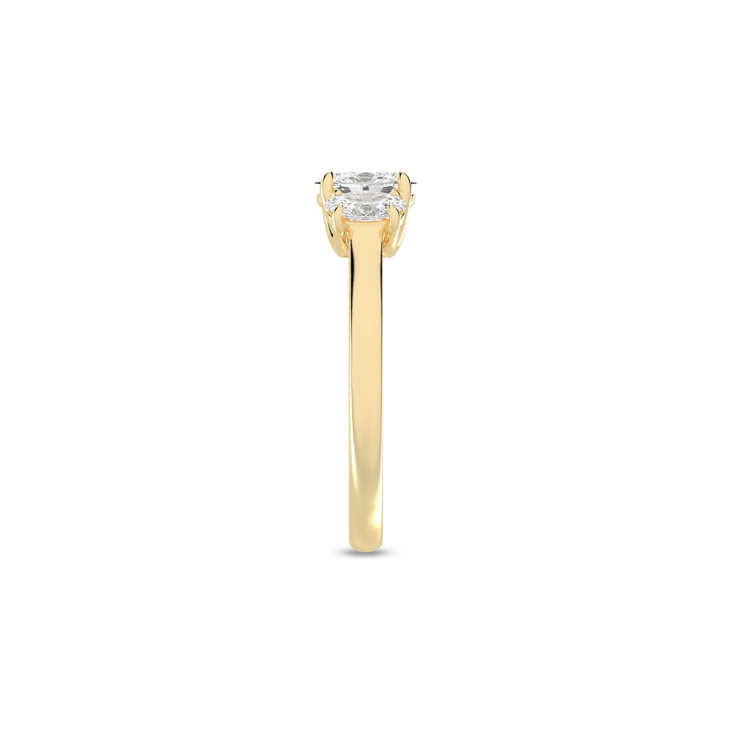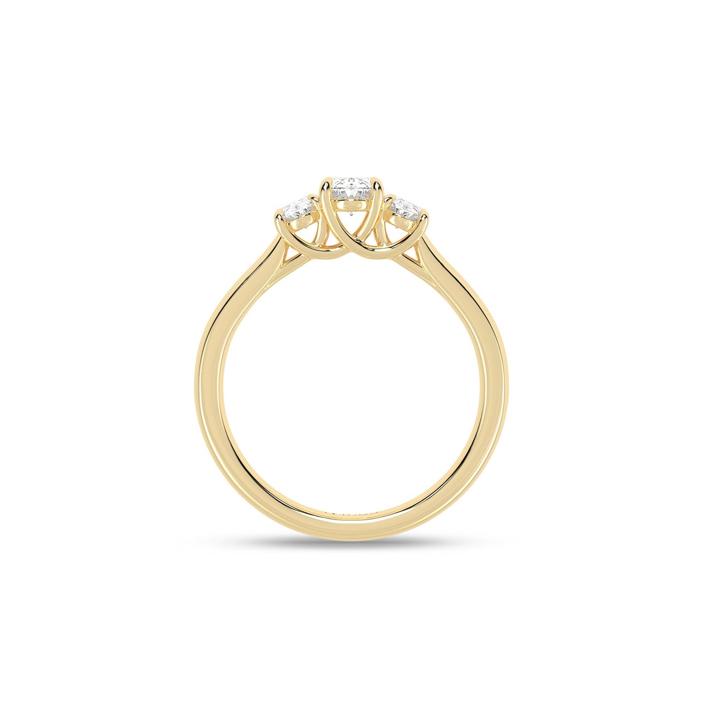 This 3-stone ring of high-quality lab-grown diamonds creates a sense of effortless glamour and iconic style. Crafted in 14k gold, the expertly positioned three ellipse-shaped scintillating diamonds are perfect for those who appreciate artistic, sophisticated jewelry.