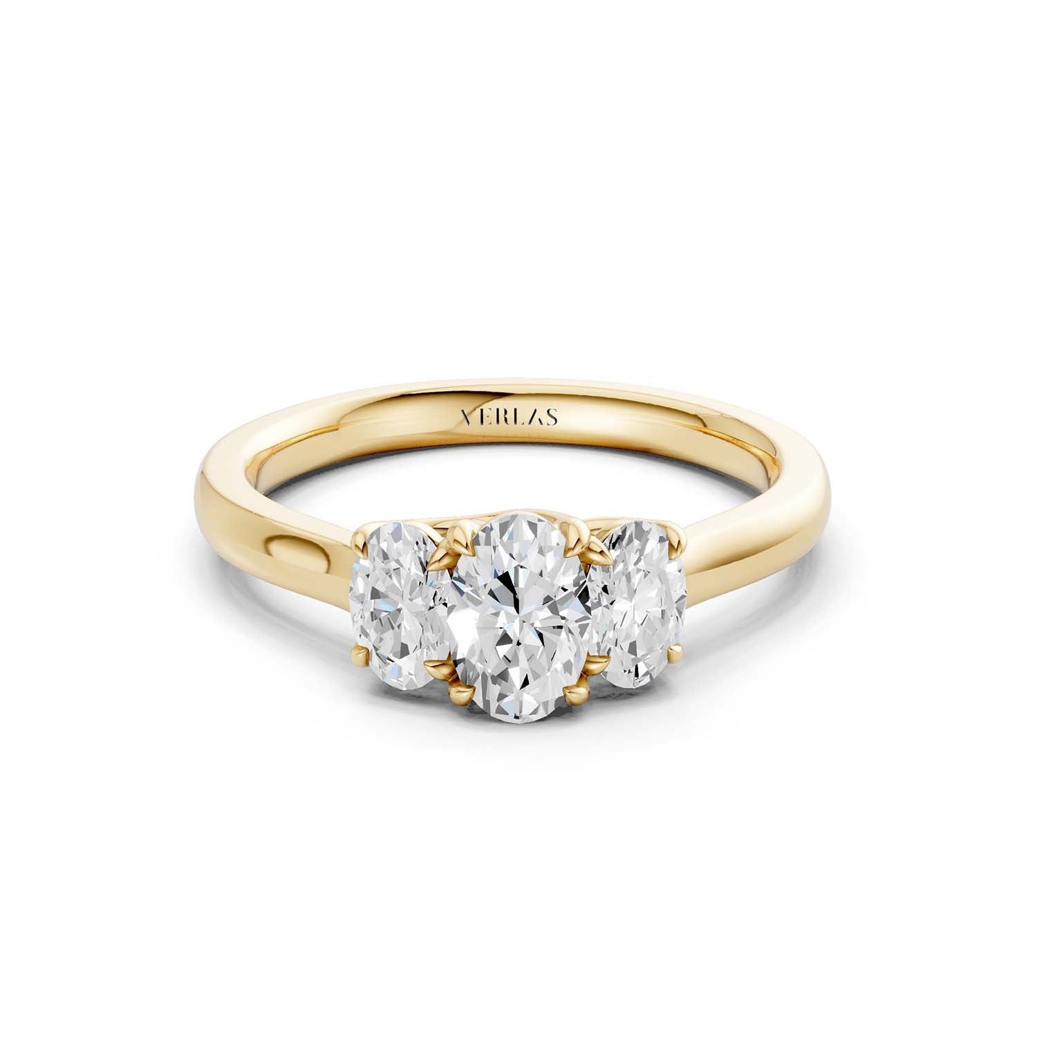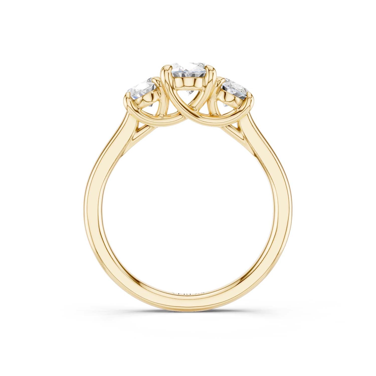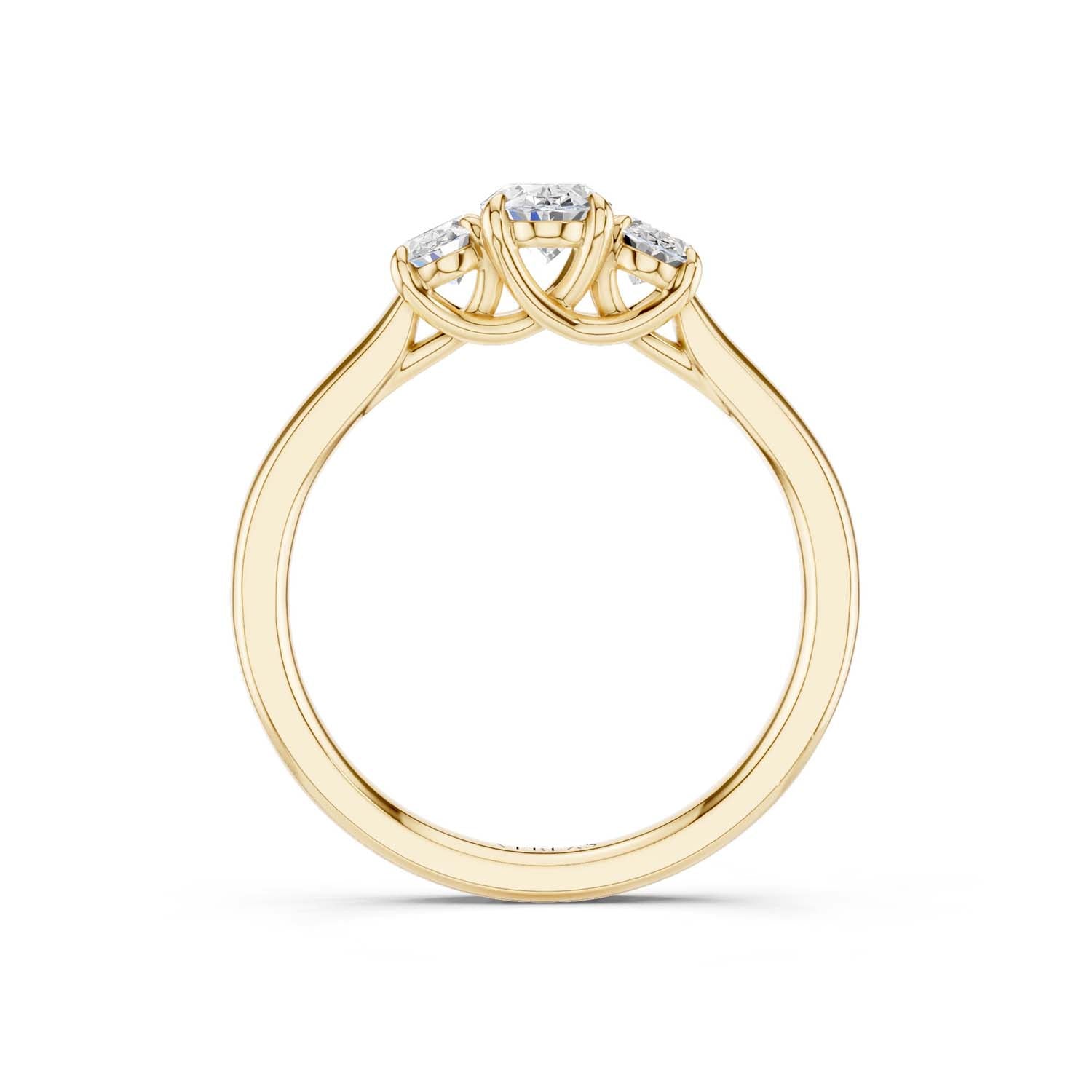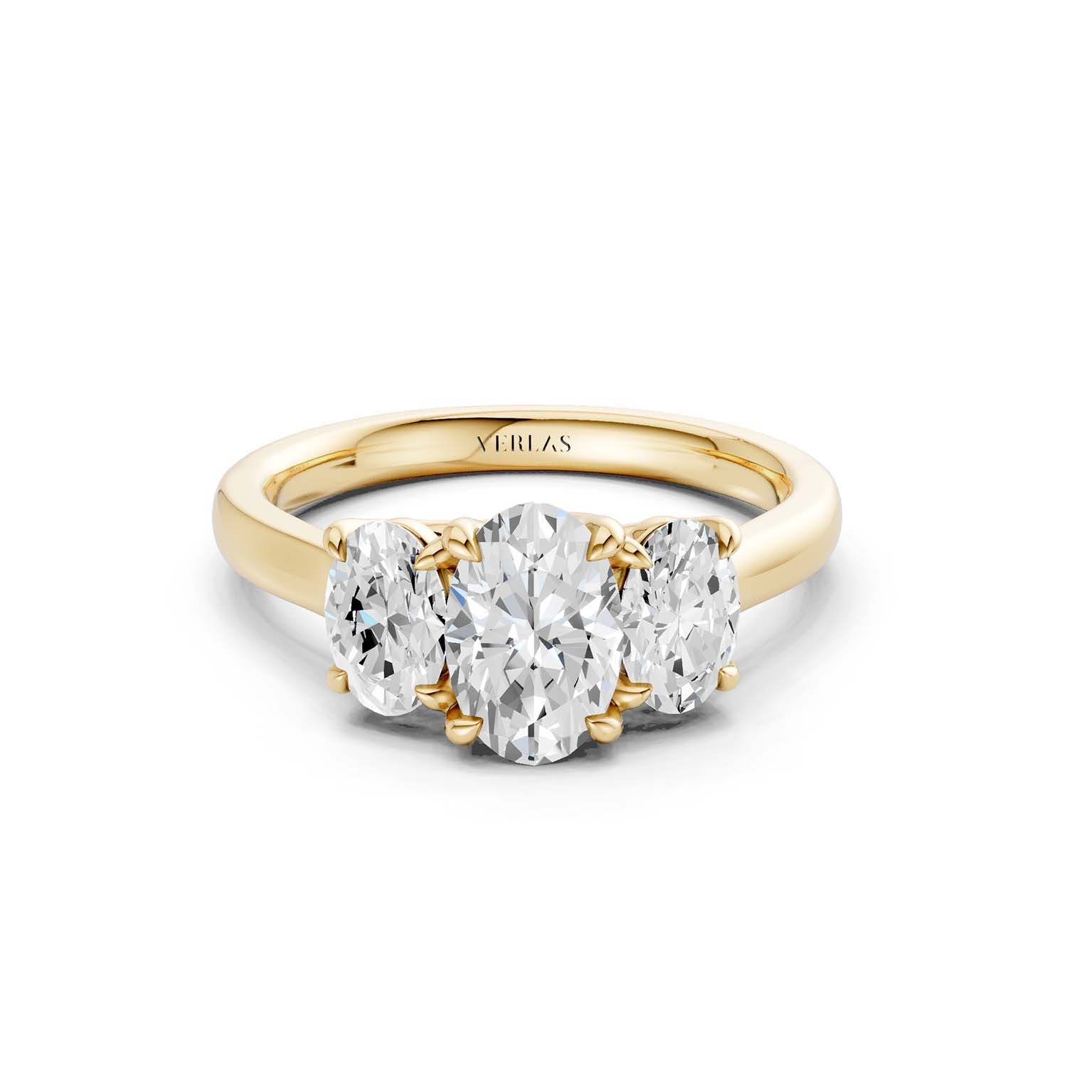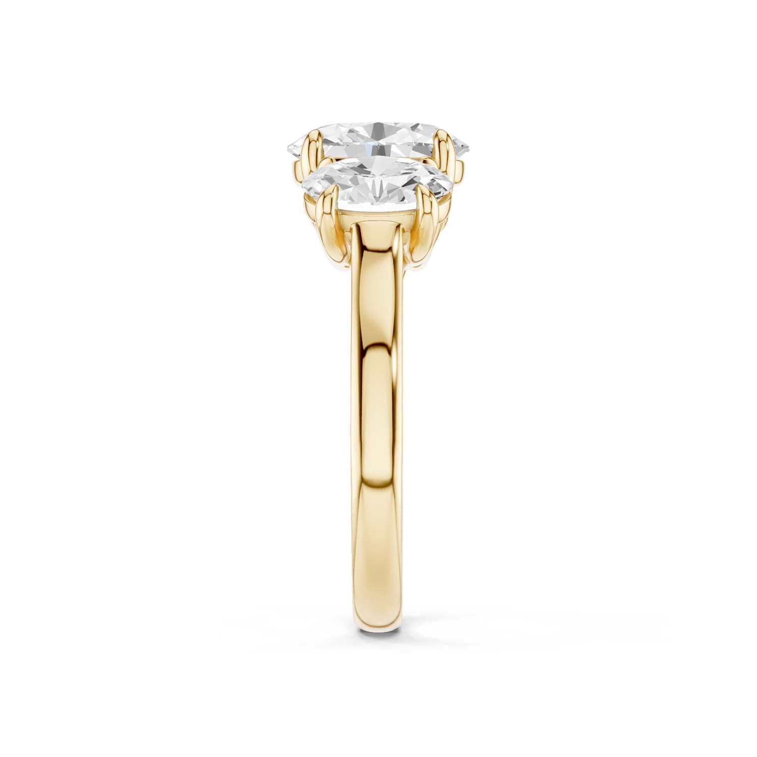 This 3-stone ring of high-quality lab-grown diamonds creates a sense of effortless glamour and iconic style. Crafted in 14k gold, the expertly positioned three ellipse-shaped scintillating diamonds are perfect for those who appreciate artistic, sophisticated jewelry.