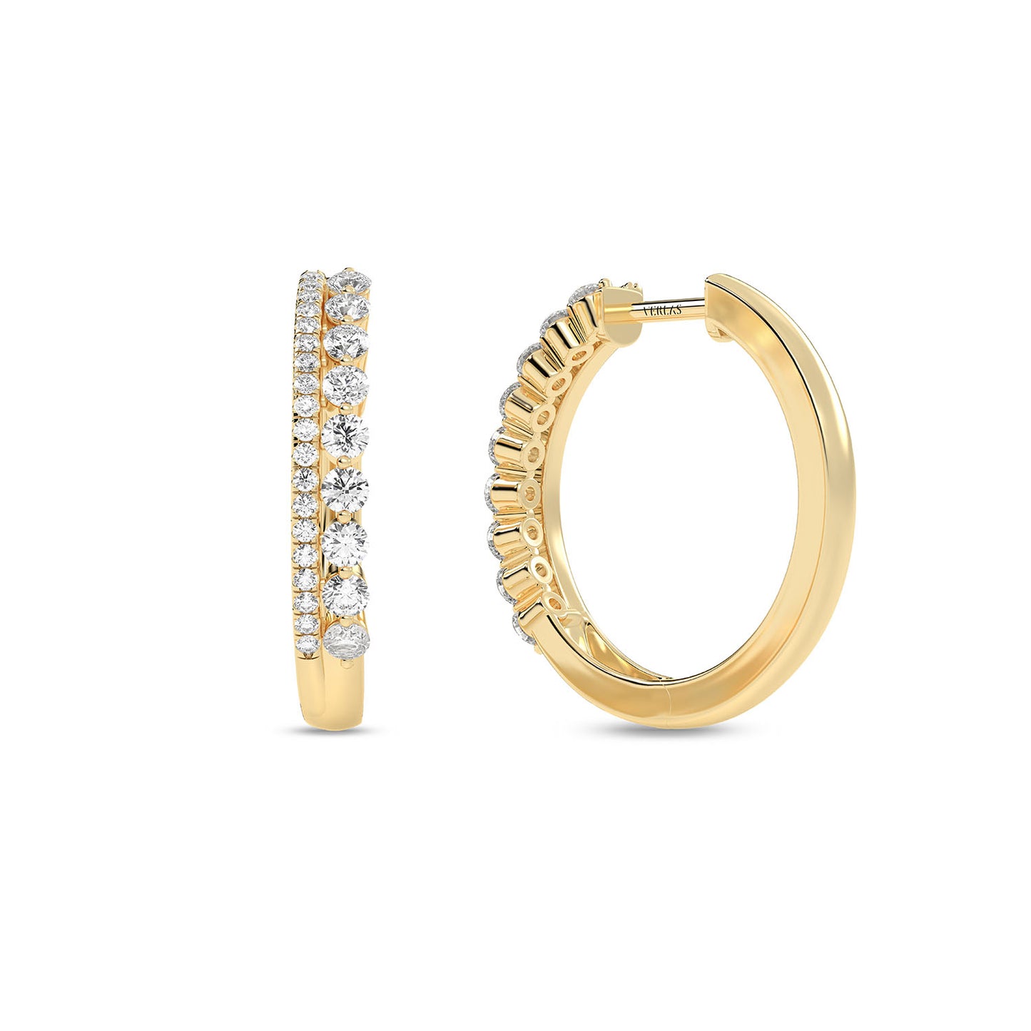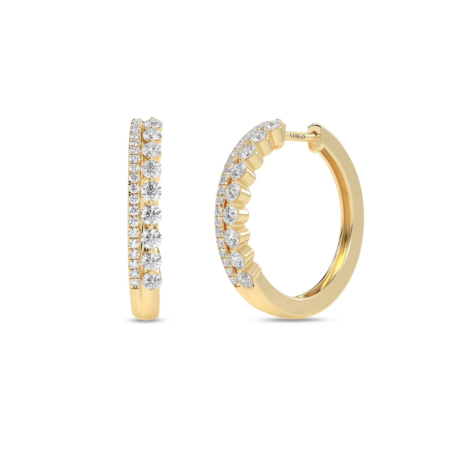 These Embellished Charming Hoops showcase a dual row of diamonds for a captivating contrast. The larger diamonds, set in prongs, create a striking focal point, while the adjacent row, adorned with tiny diamonds in micro-pave settings, adds an enchanting play of light. Whether it's a formal event, a special date night, or a casual outing, these Hoops add a touch of elegance to your look. Read Less