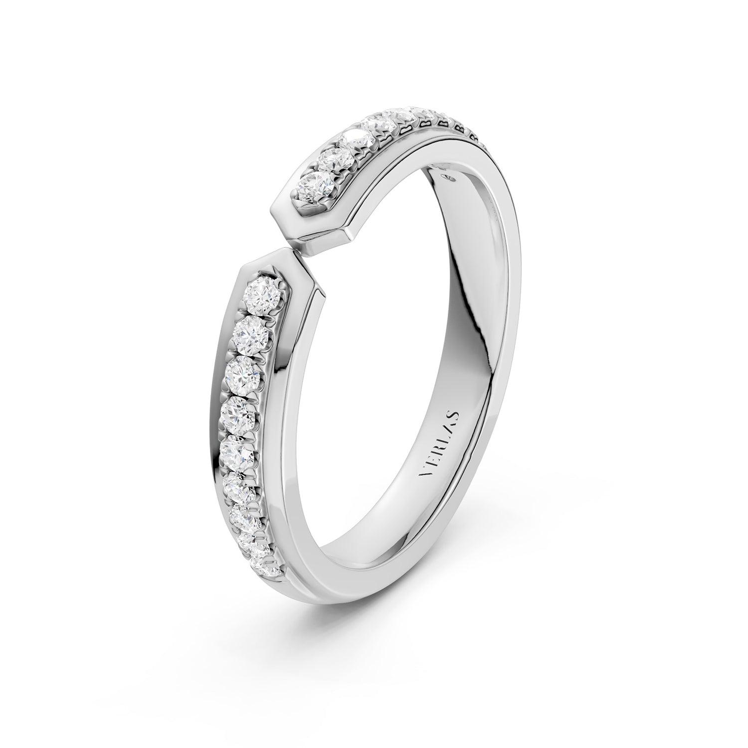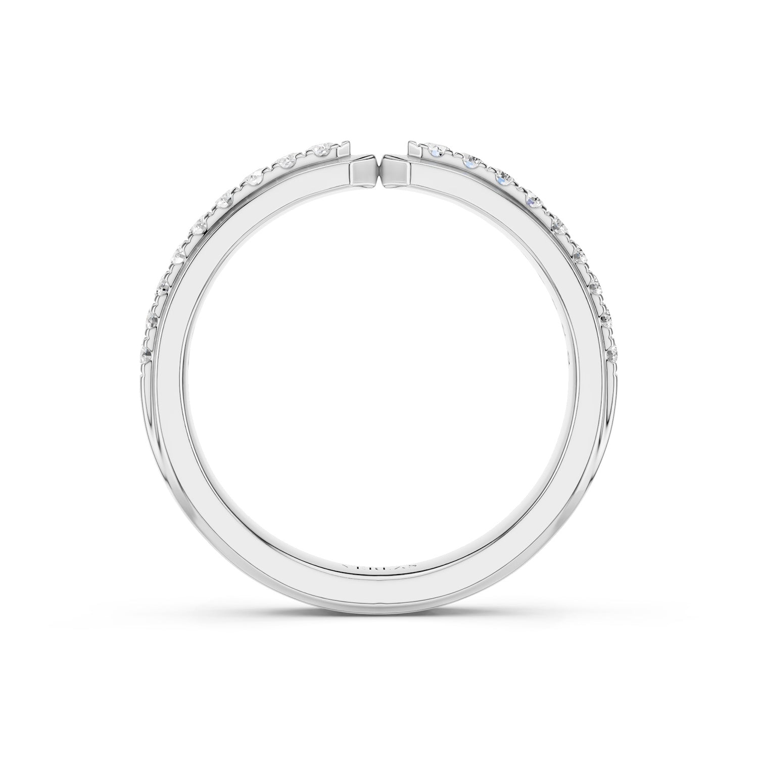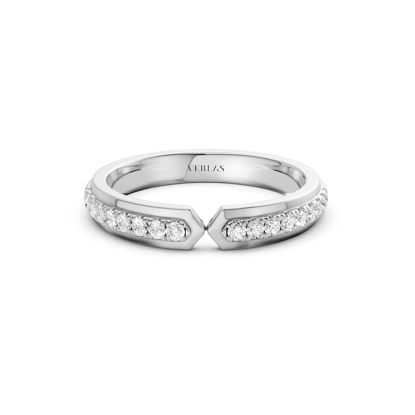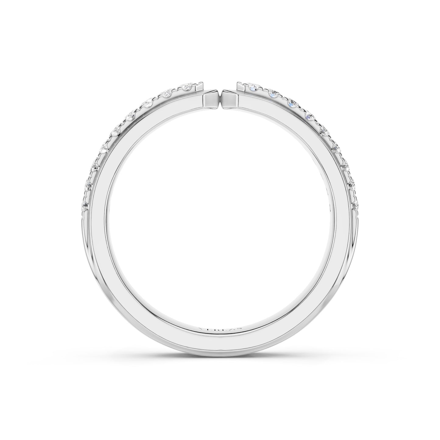 The Embrace Band’s striking appearance is characterized by a row of dazzling diamonds, thoughtfully interspersed with a pinch design at the center. This unique detail adds depth and character to the band, creating an engaging visual that sets it apart as an exceptional diamond stacking ring.