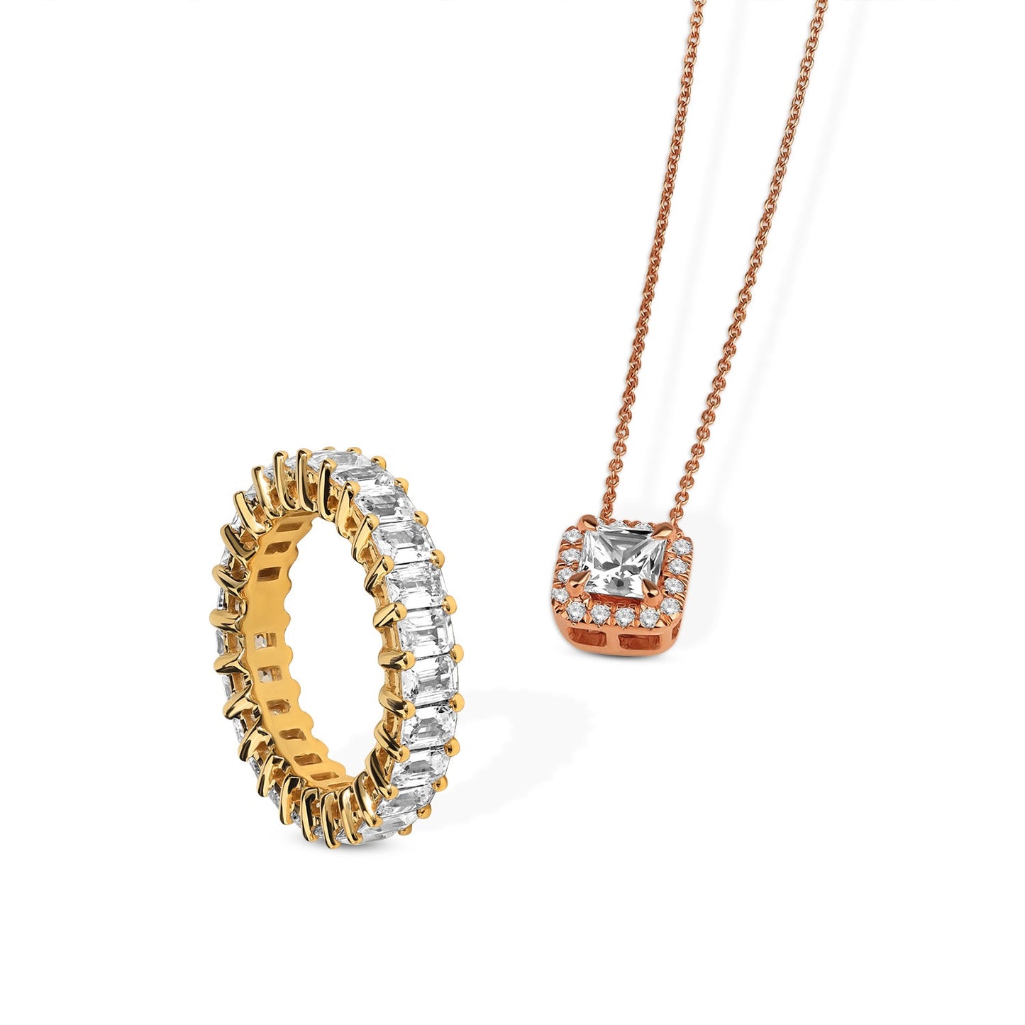 Read MoreSymbolizing the never-ending love, this eternity band consists of a continuous line of emerald shape lab-grown diamonds. A beautiful alternative to a traditional wedding band, the band encircles the finger with pure radiance.