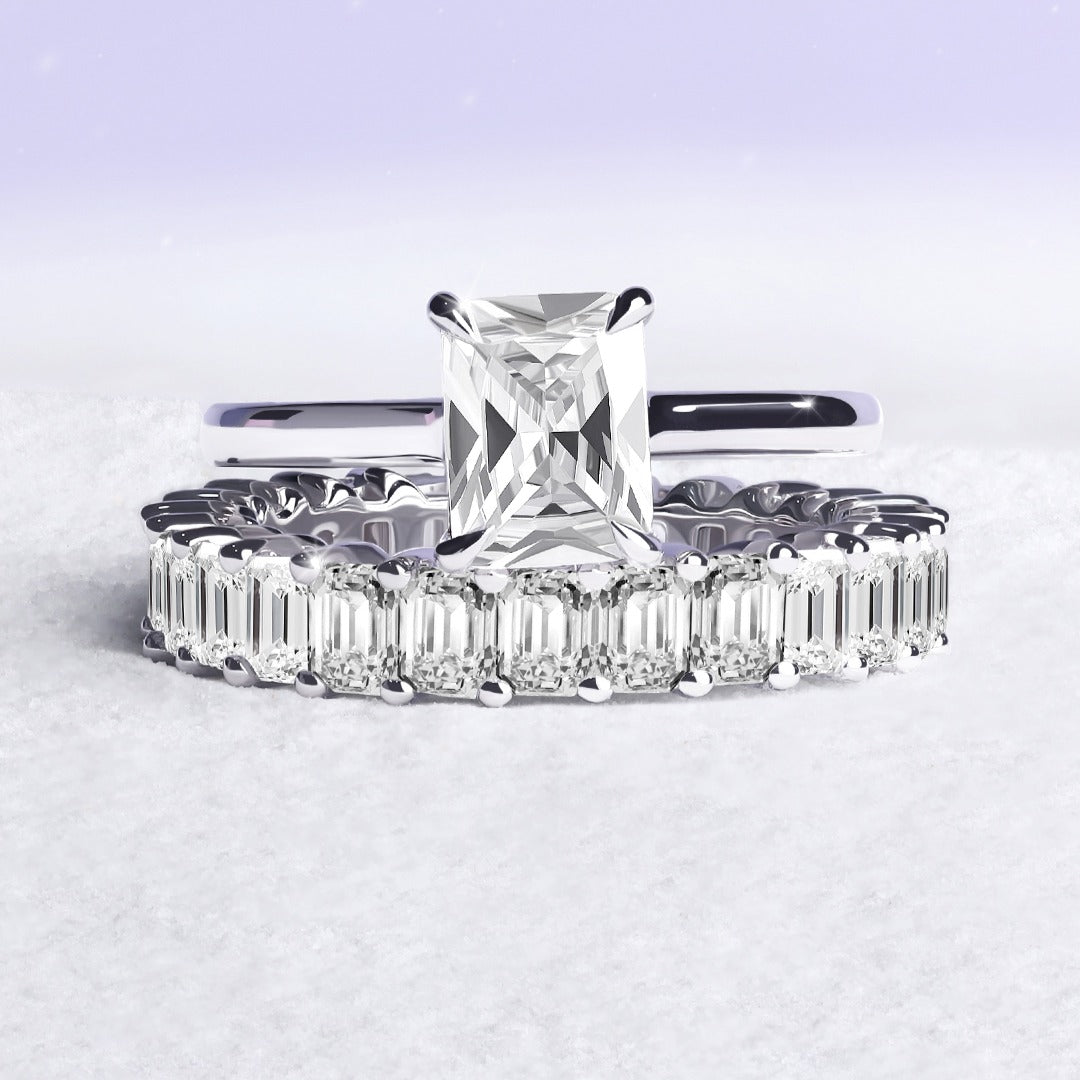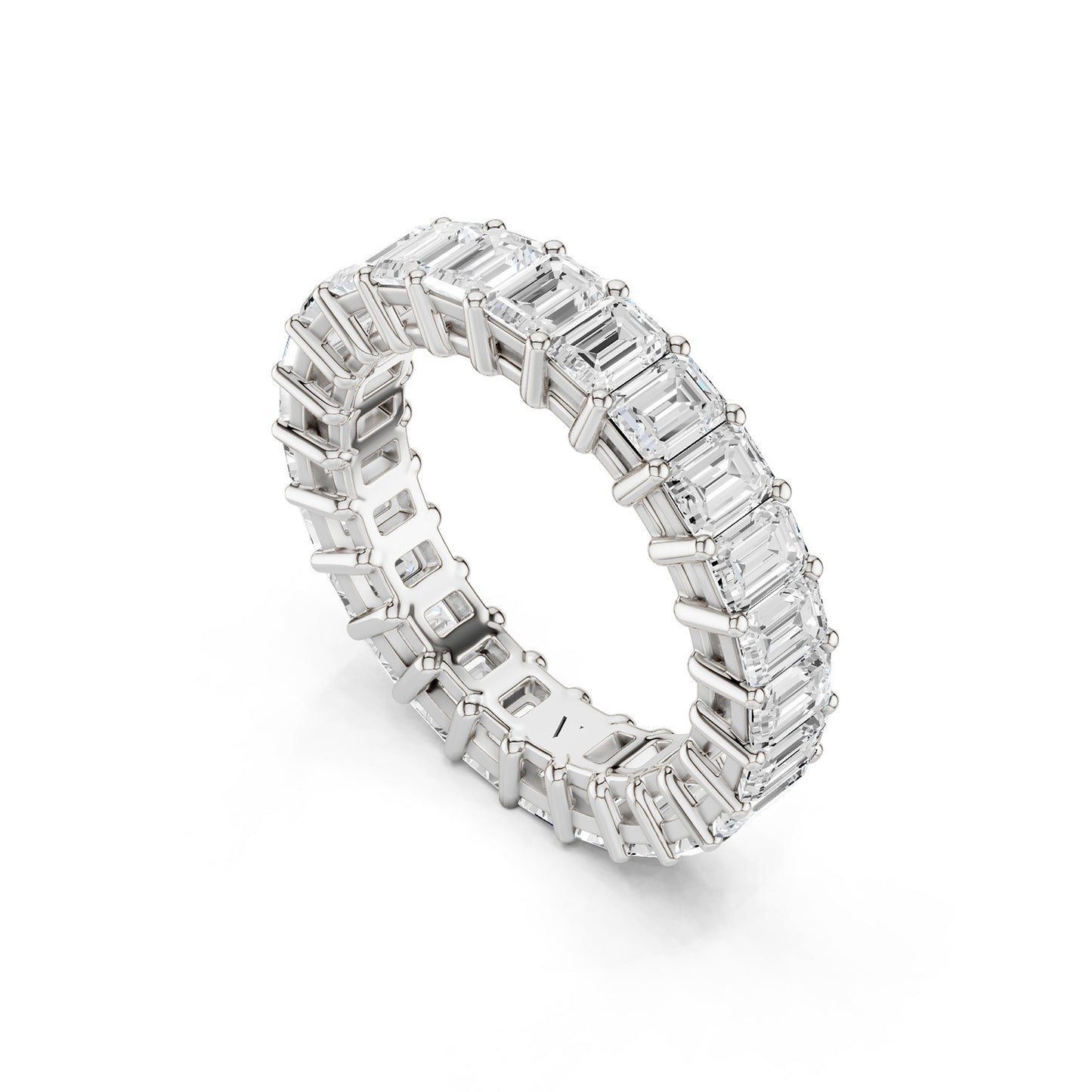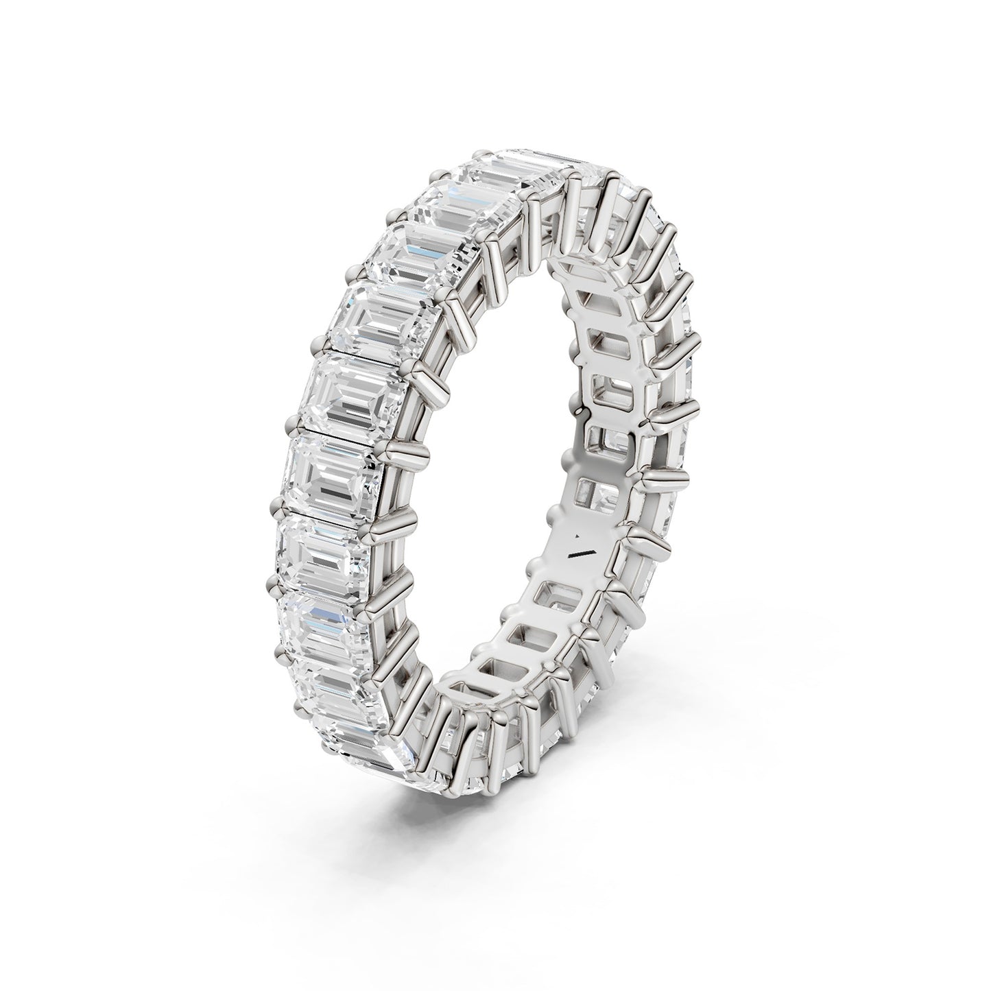 Read MoreSymbolizing the never-ending love, this eternity band consists of a continuous line of emerald shape lab-grown diamonds. A beautiful alternative to a traditional wedding band, the band encircles the finger with pure radiance.