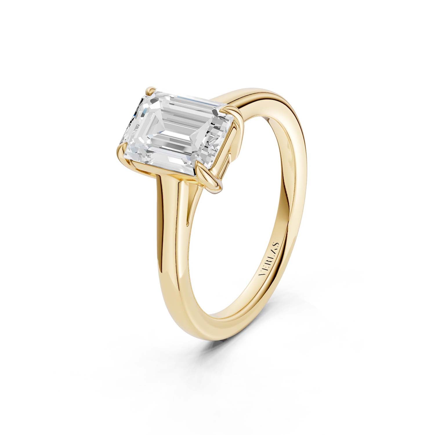 This elegant solitaire ring features an open basket with claw prongs that cradle the center emerald shape lab-grown diamond solitaire. The simple yet classic band style adds to the sleek, contemporary look of the design.