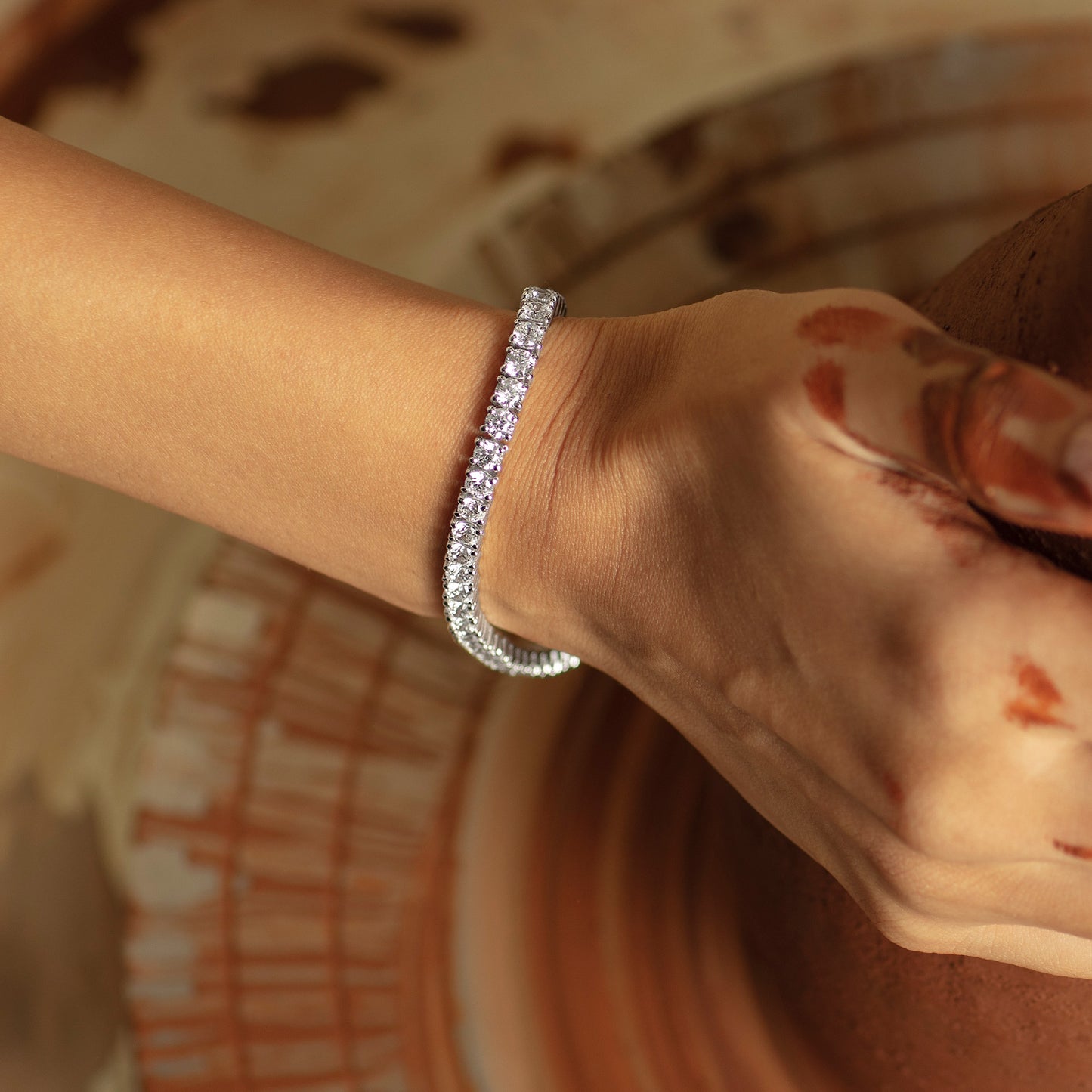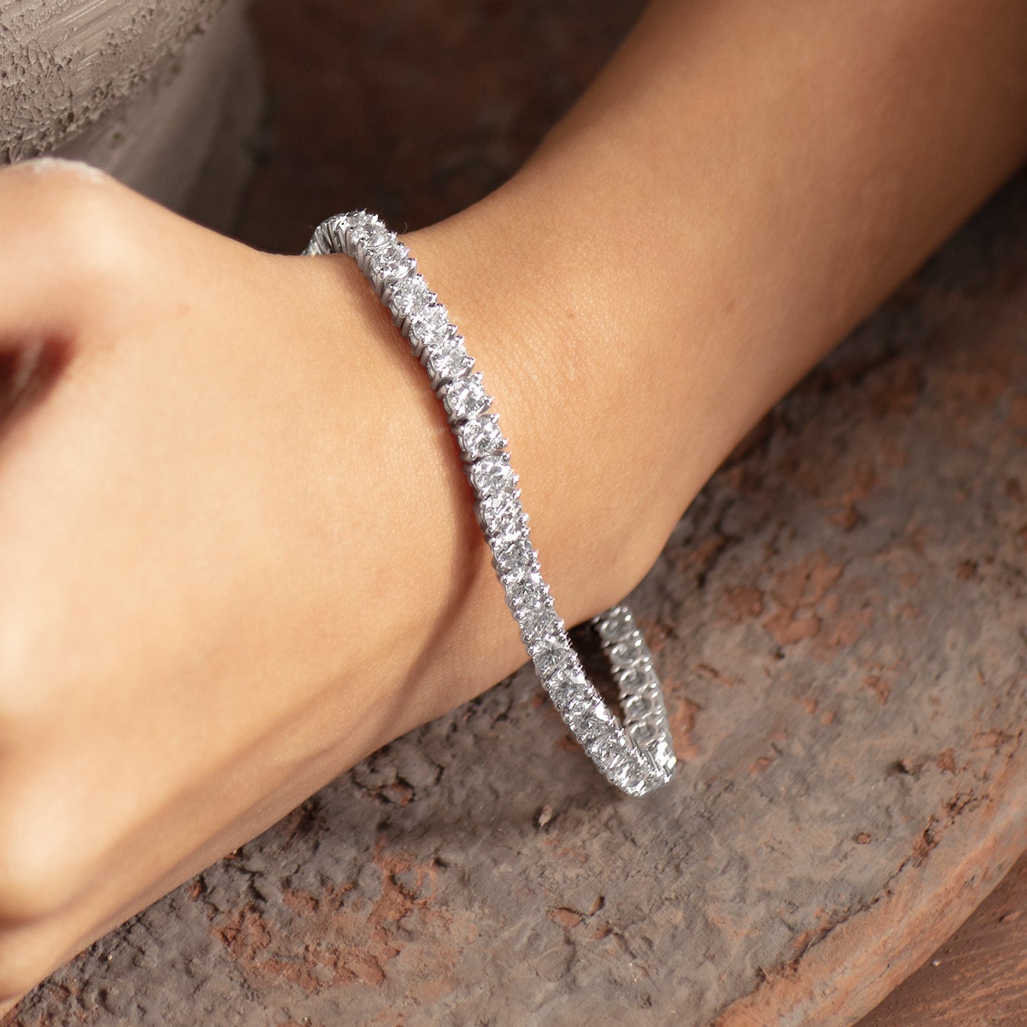 This enthralling tennis bracelet consists of scintillating lab-grown diamonds set in a shared prong setting that really highlights their brilliant sparkle. Thanks to its timeless elegance, this Tennis Bracelet makes an excellent style statement on every occasion and is ideal for gifting.