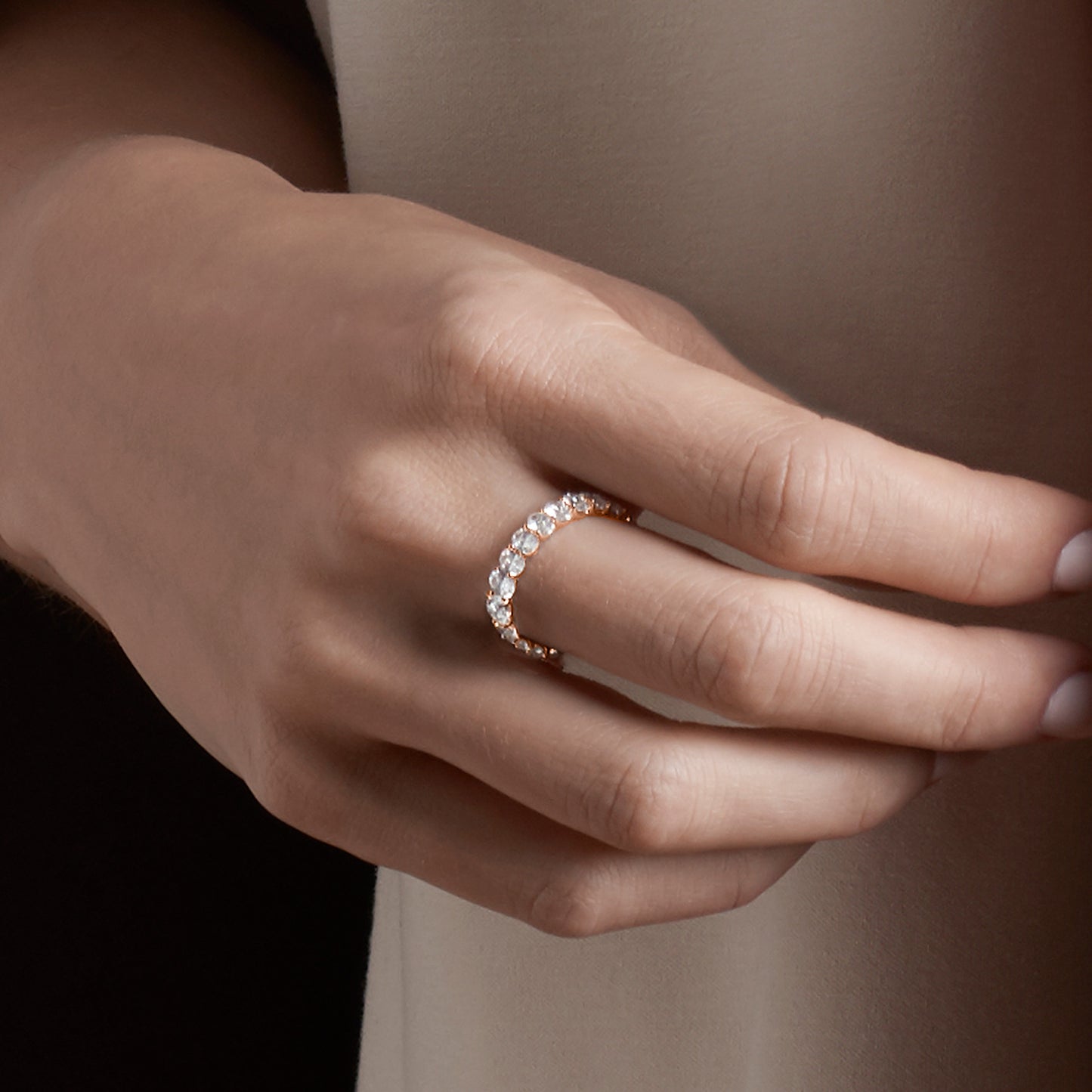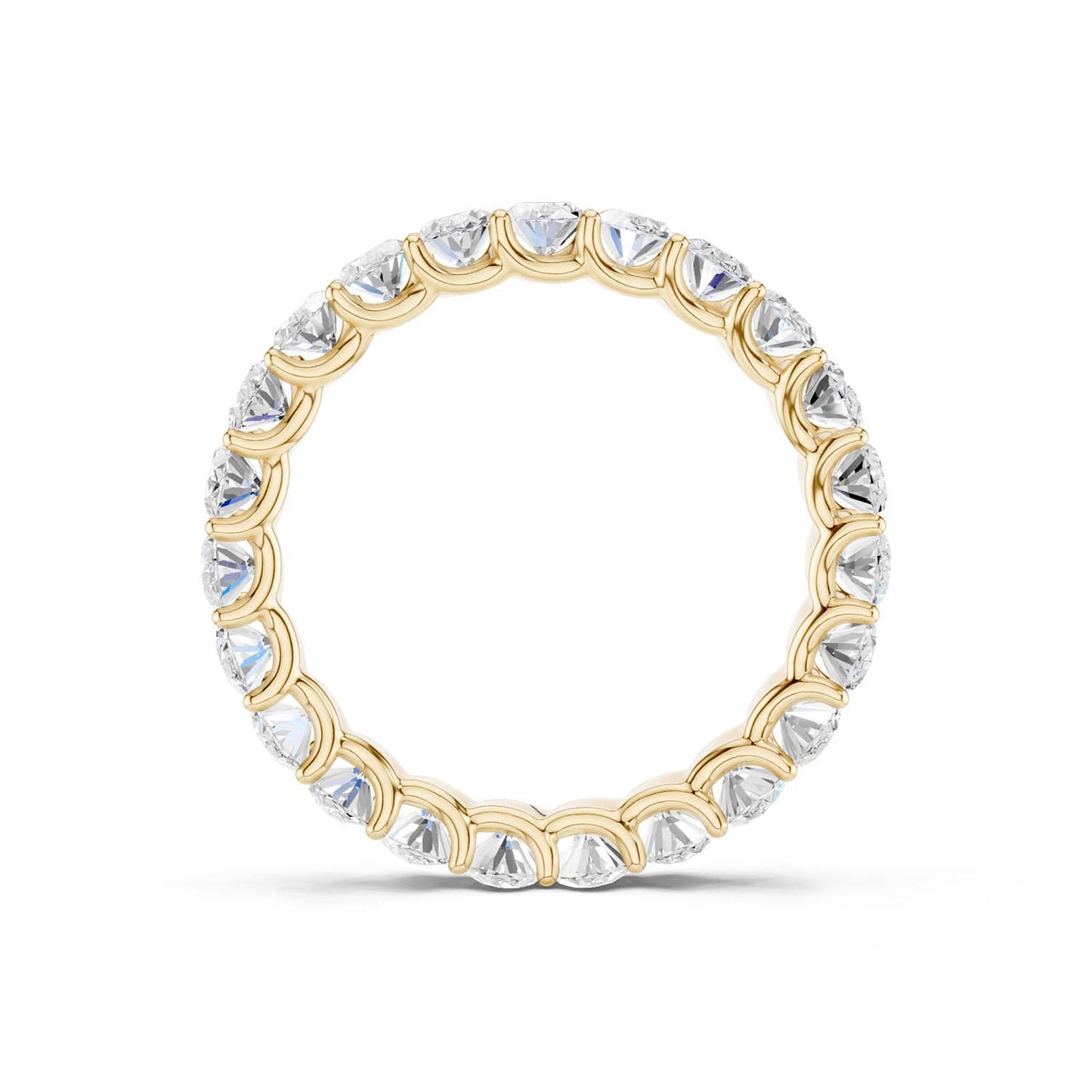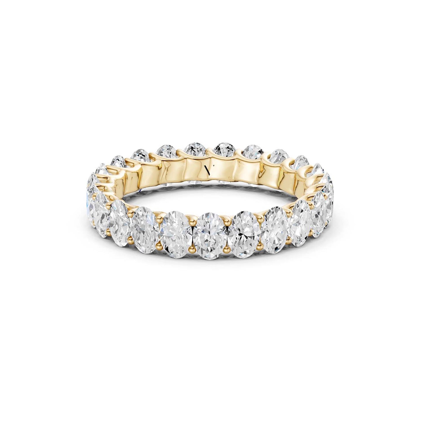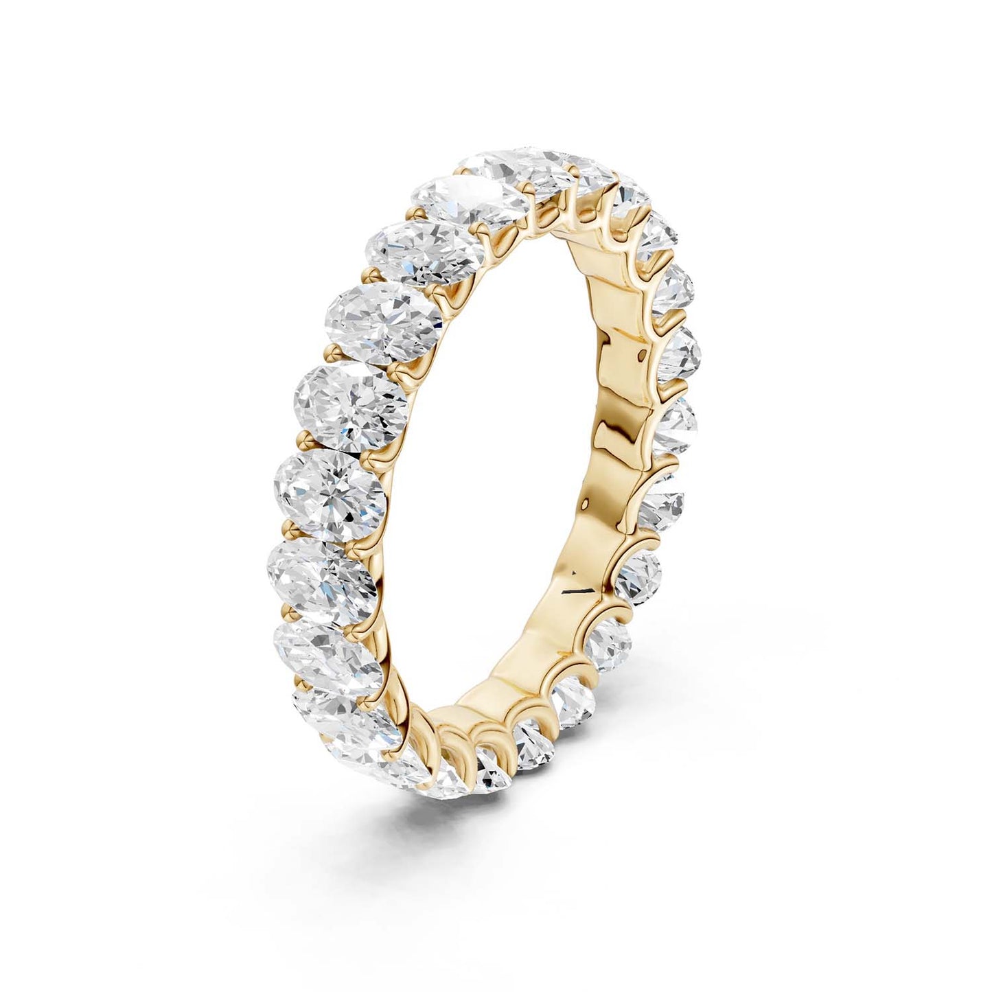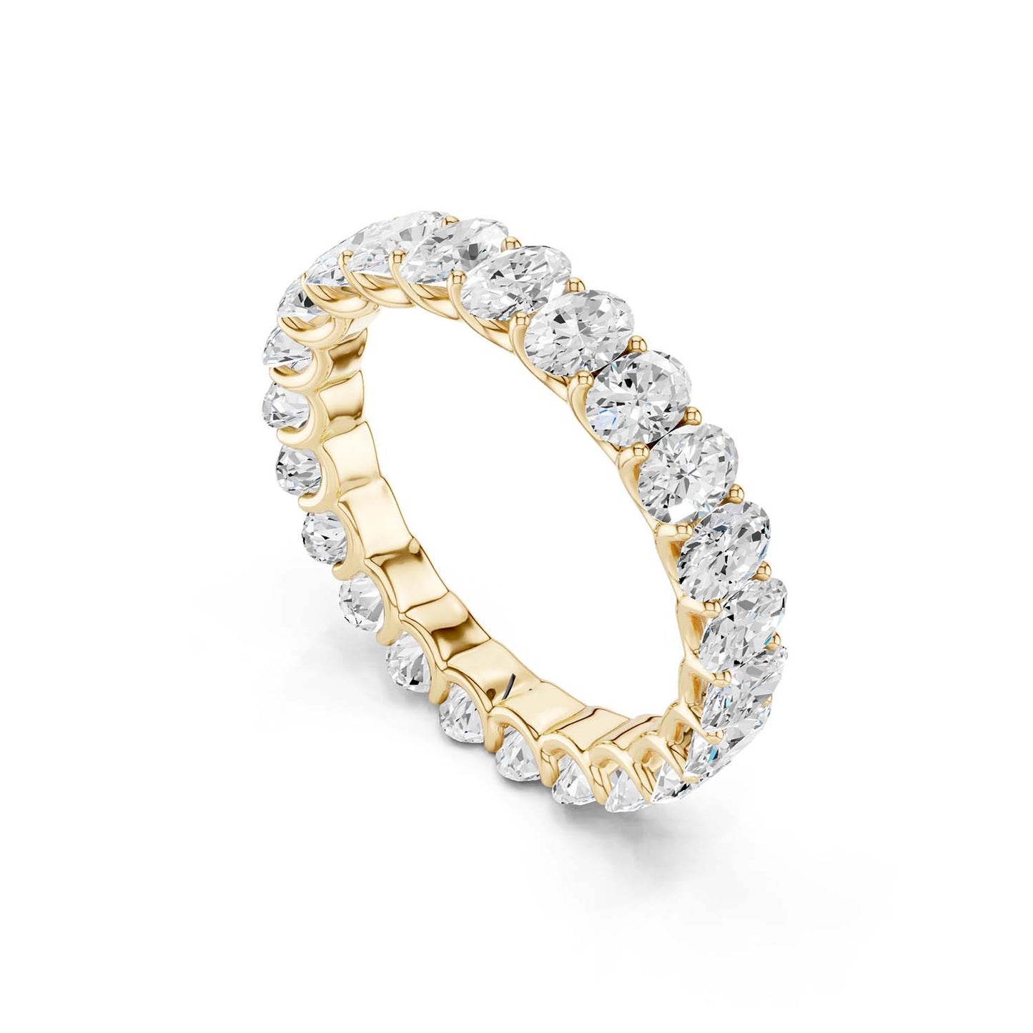 The Eternal Ellipse Band encapsulates the continuum of beauty that shapes our lives. This band is a symphony of 19 oval-shaped brilliant diamonds, each held in a prong setting—an ode to the eternal cycles of life. The design radiates elliptical brilliance from every viewpoint—a timeless choice, perfect for the eternal commitment of love.