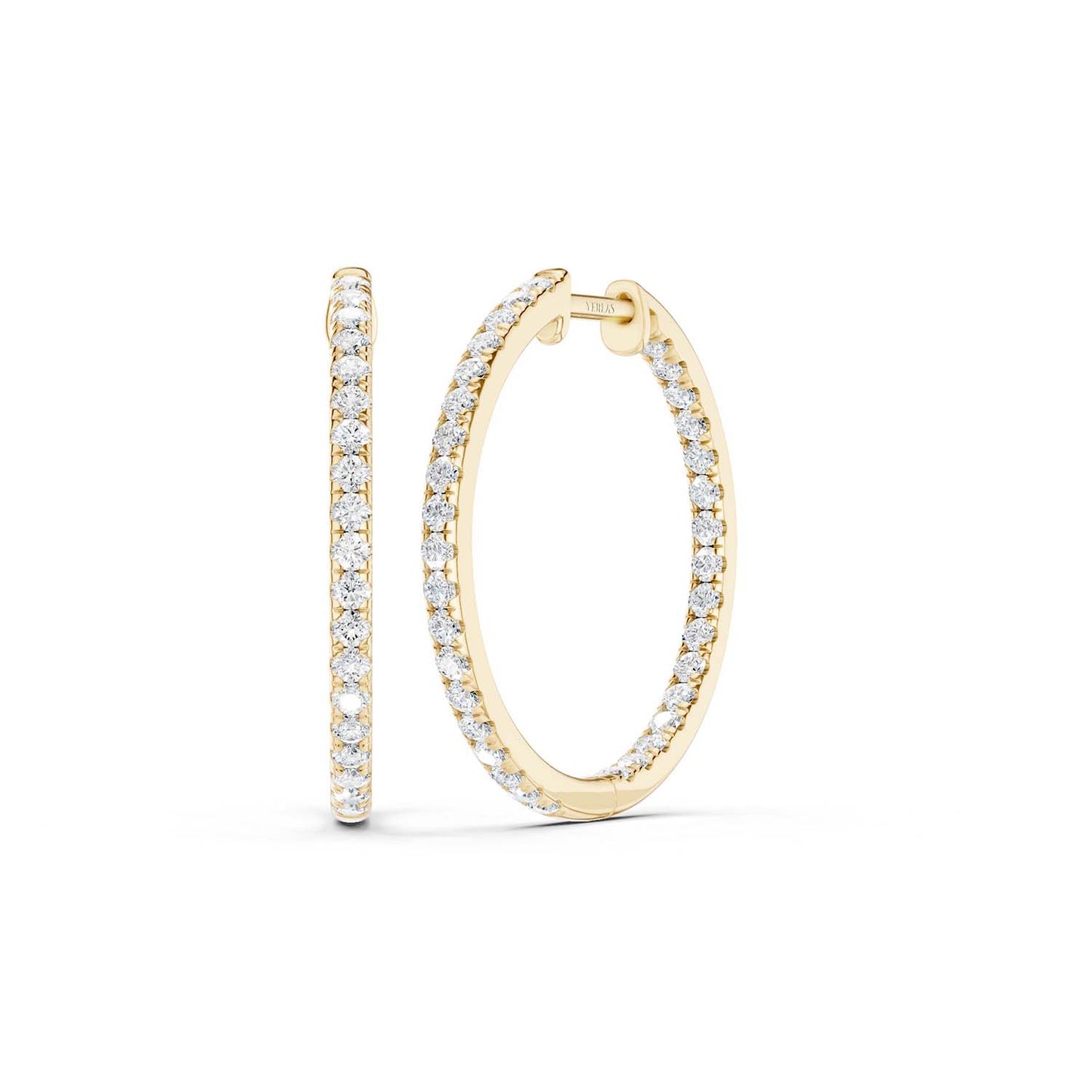 Simple and classy, these classic pair of Forever Hoops feature a continuous, unbroken circle of stunning radiance. Each hoop is adorned with a carefully selected array of high-quality diamonds that catch the light from every angle. Radiant, bold, and versatile, these subtle diamond cut hoop earrings make for a truly thoughtful and cherished gift. Read Less