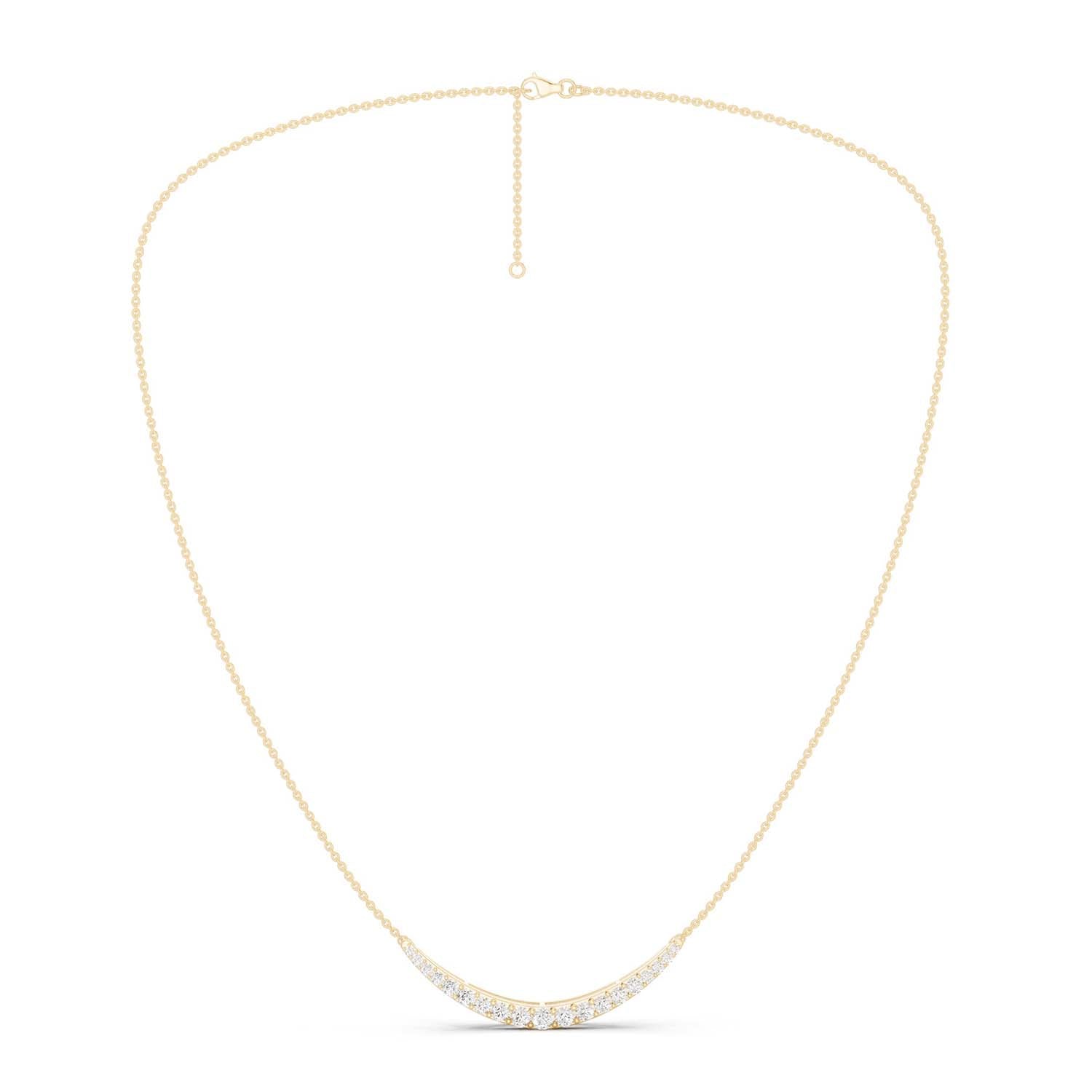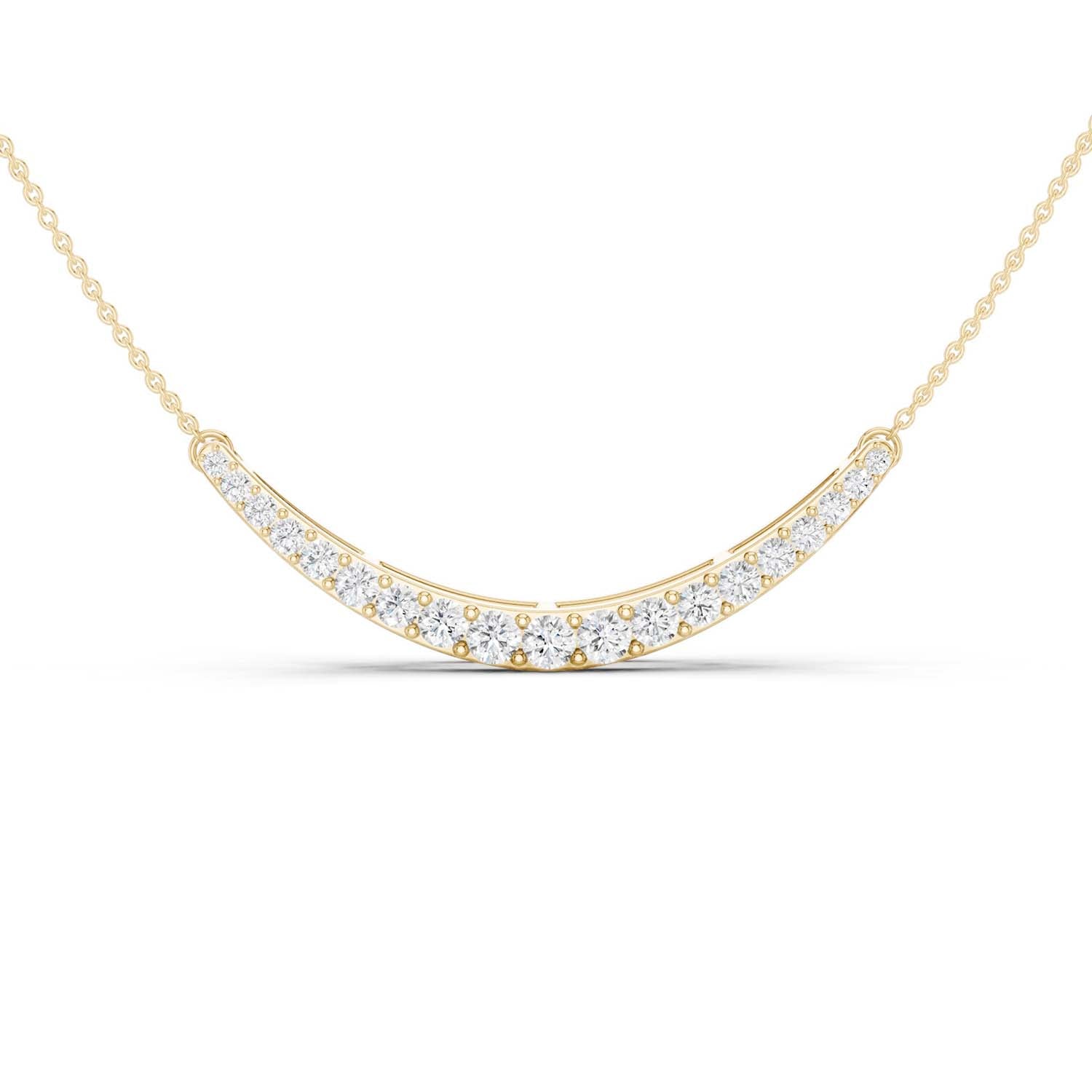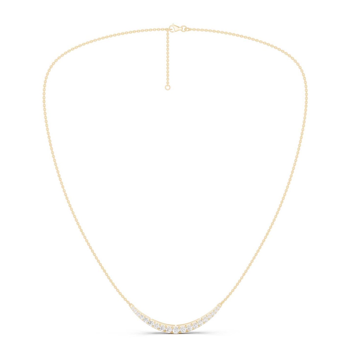 This graduated necklace features 21 best lab-made diamonds adjoined together in a channel setting. Presented in a smile shape, the curved necklace has a scintillating stream of brilliance, making it a perfect choice for any occasion.
