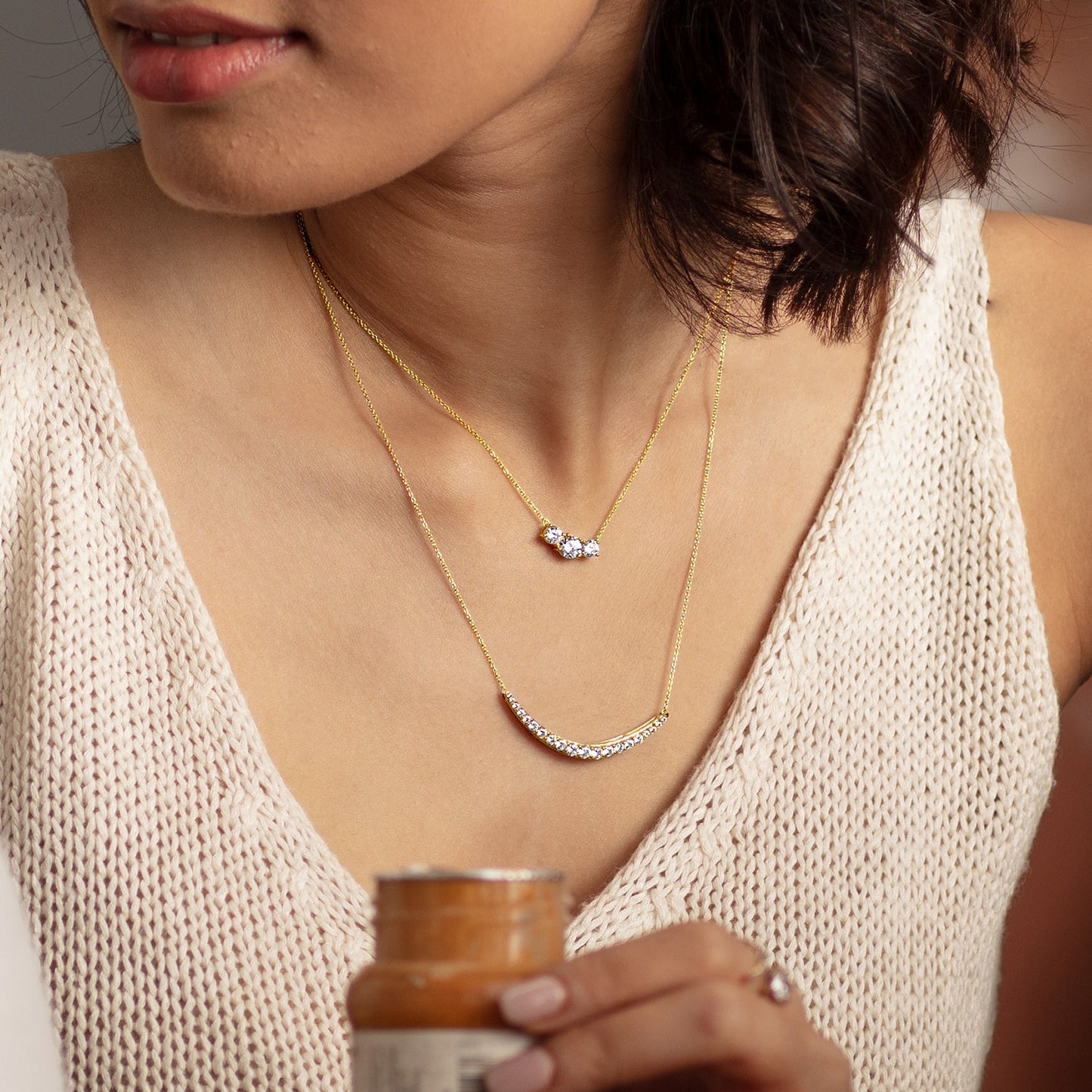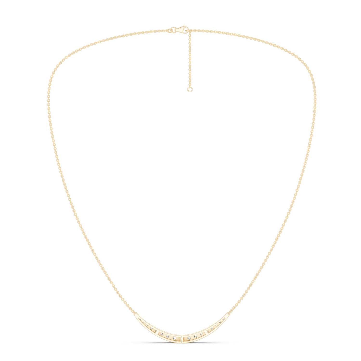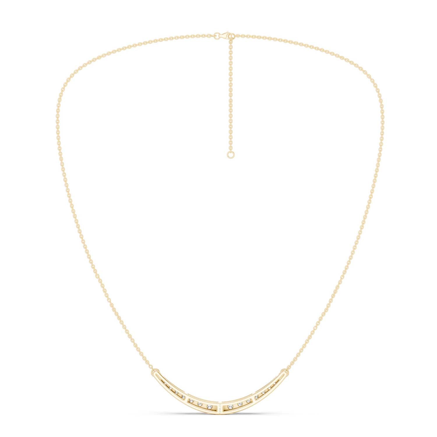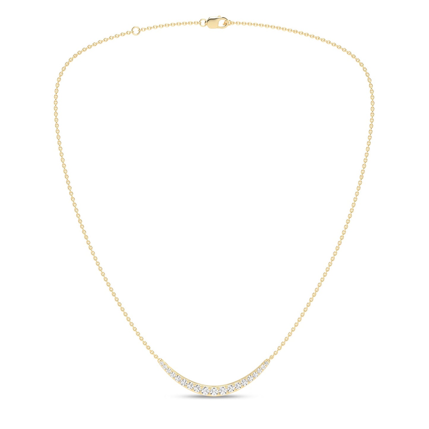 This graduated necklace features 21 best lab-made diamonds adjoined together in a channel setting. Presented in a smile shape, the curved necklace has a scintillating stream of brilliance, making it a perfect choice for any occasion.
