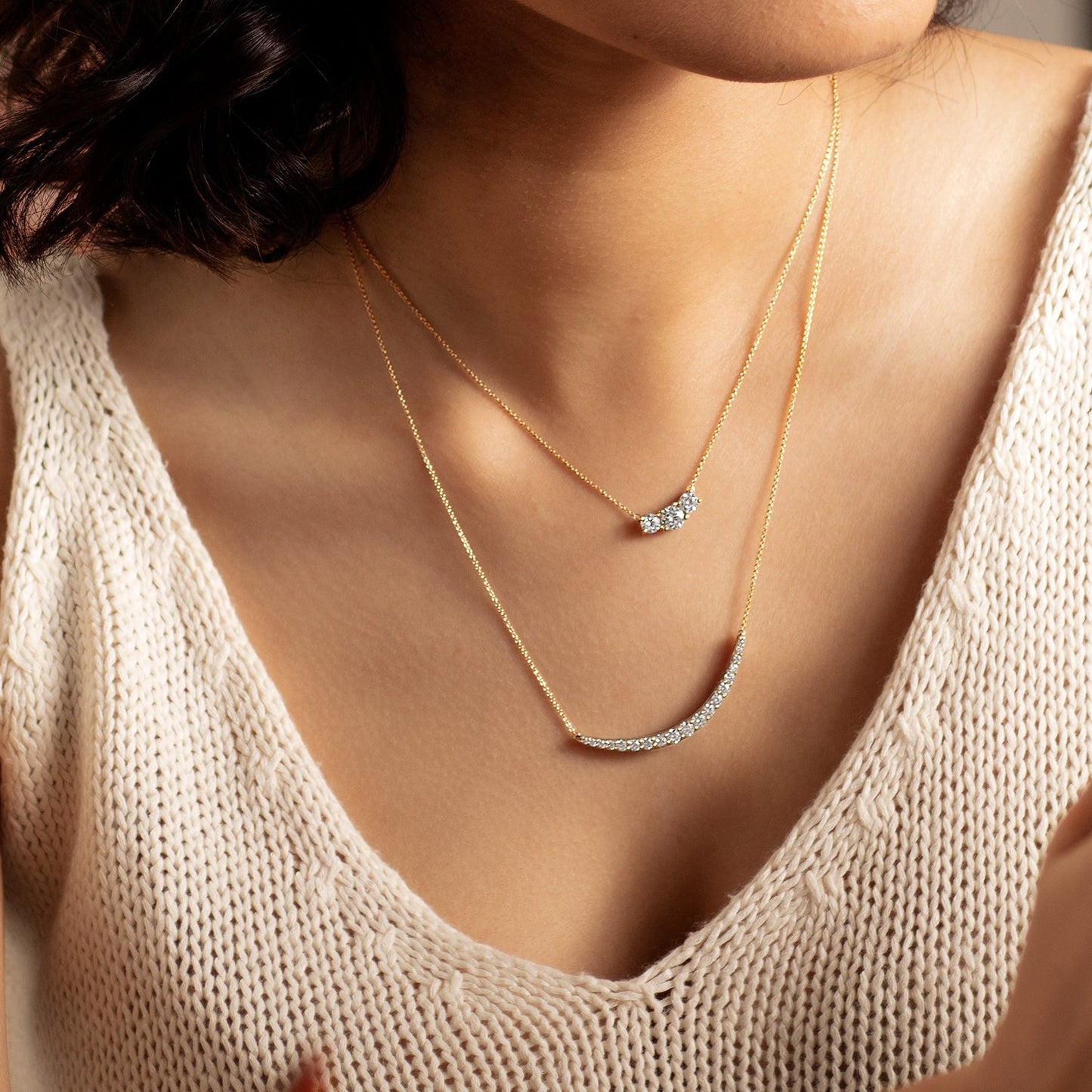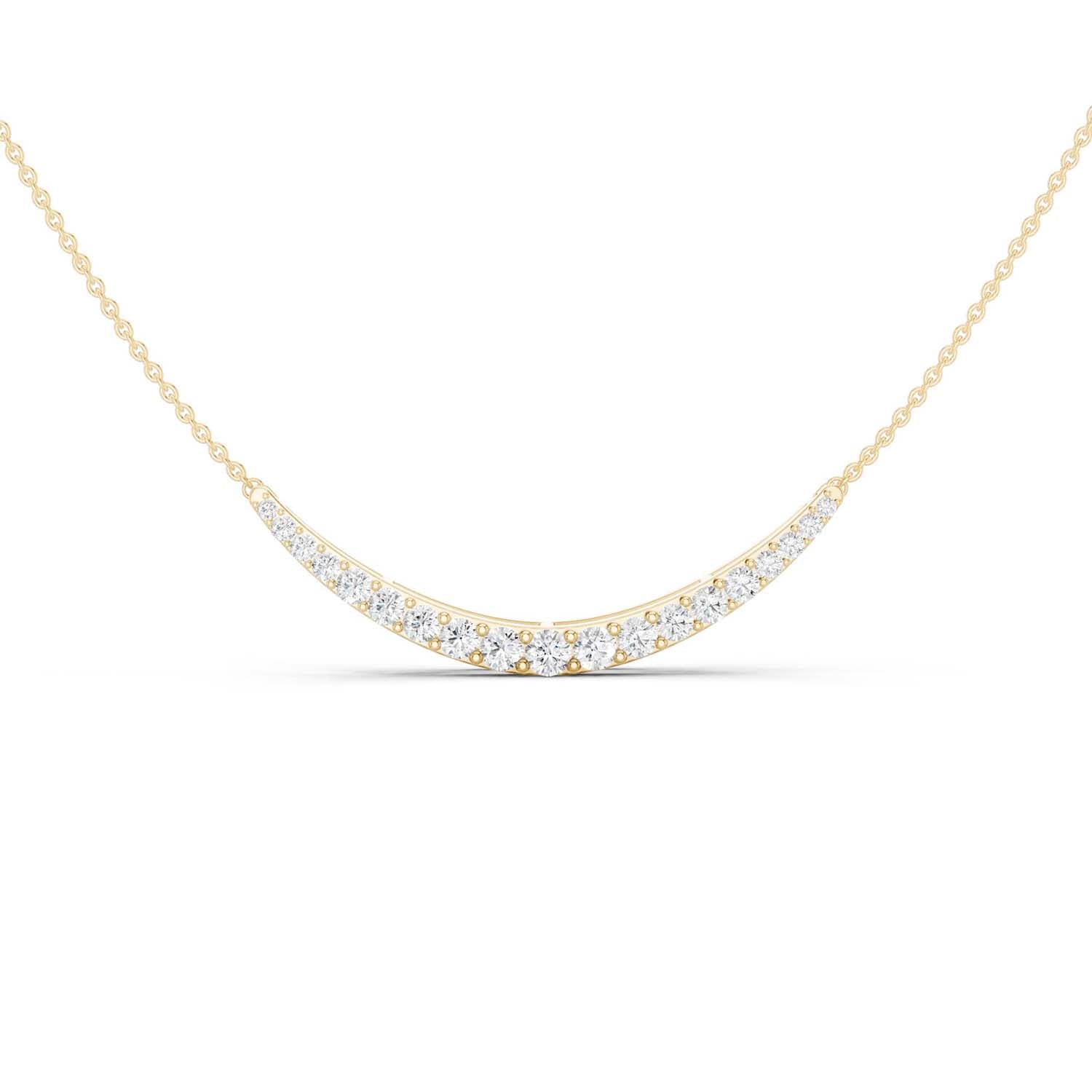 Read MoreThis graduated necklace features 21 best lab-made diamonds adjoined together in a channel setting. Presented in a smile shape, the curved necklace has a scintillating stream of brilliance, making it a perfect choice for any occasion.