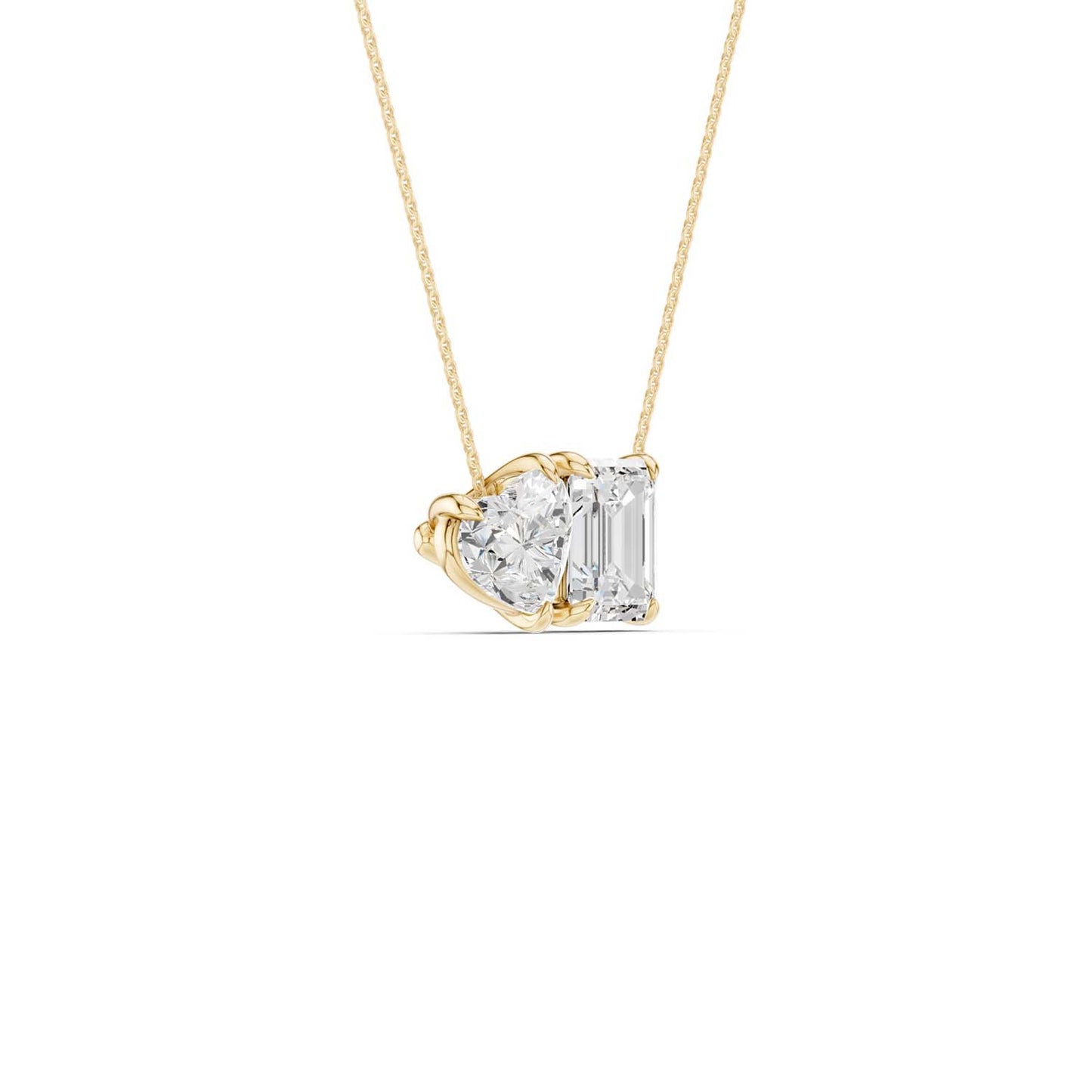 This Toi et Moi Necklace boasts a design that seamlessly marries classic elegance with contemporary flair. Its focal point is the heart, and emerald diamond shapes cradled together, adding depth and intrigue to its design. Whether as a cherished gift or a self-indulgent treat, this necklace will grace your neckline with unmatched chic and constantly remind you of the love that binds two hearts.