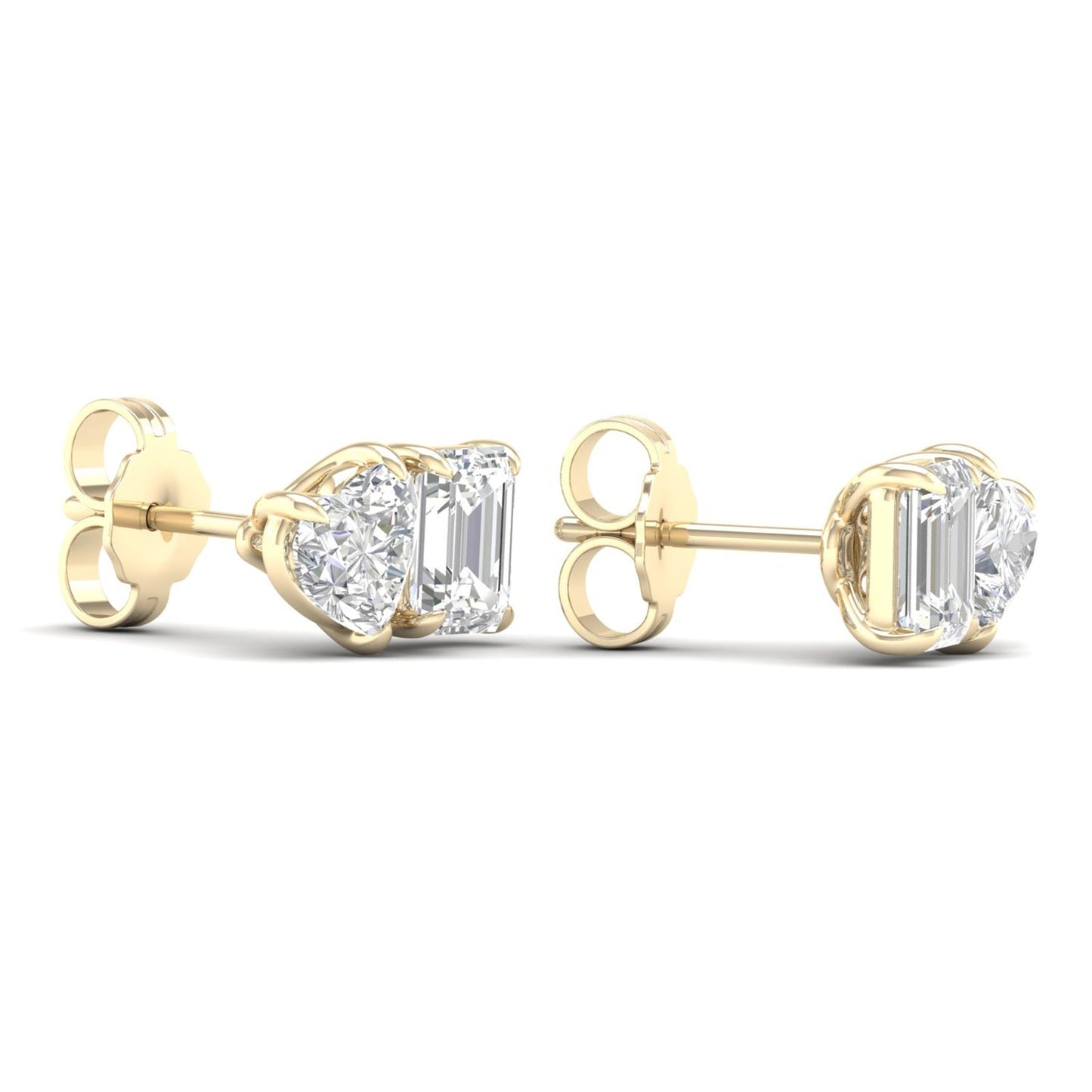 Indulge in the extraordinary beauty of this Toi et Moi Studs, where a heart-shaped diamond is lovingly cradled beside an emerald cut. This unique diamond combination sets them apart, making them a conversation starter and a symbol of your refined taste. Destined to be cherished for generations, these earrings are a testament to all those special moments that transcend time.