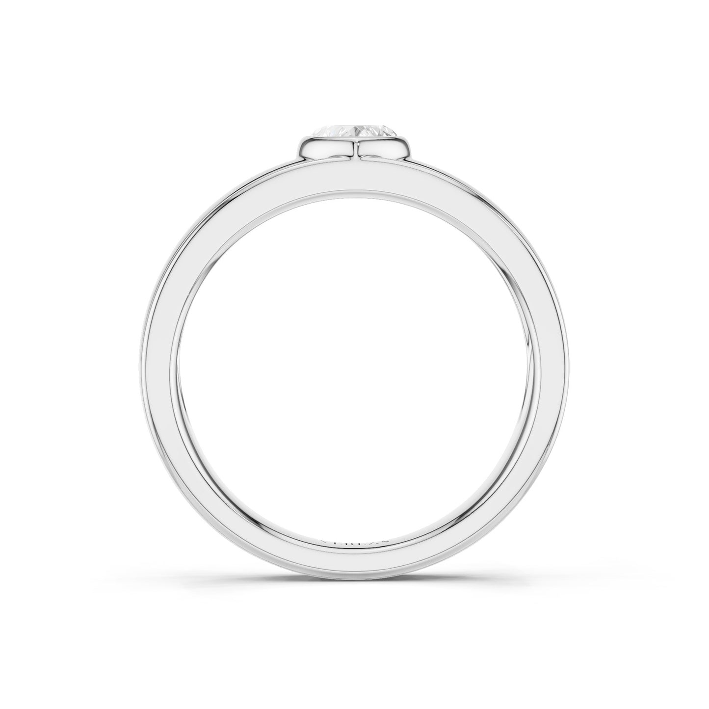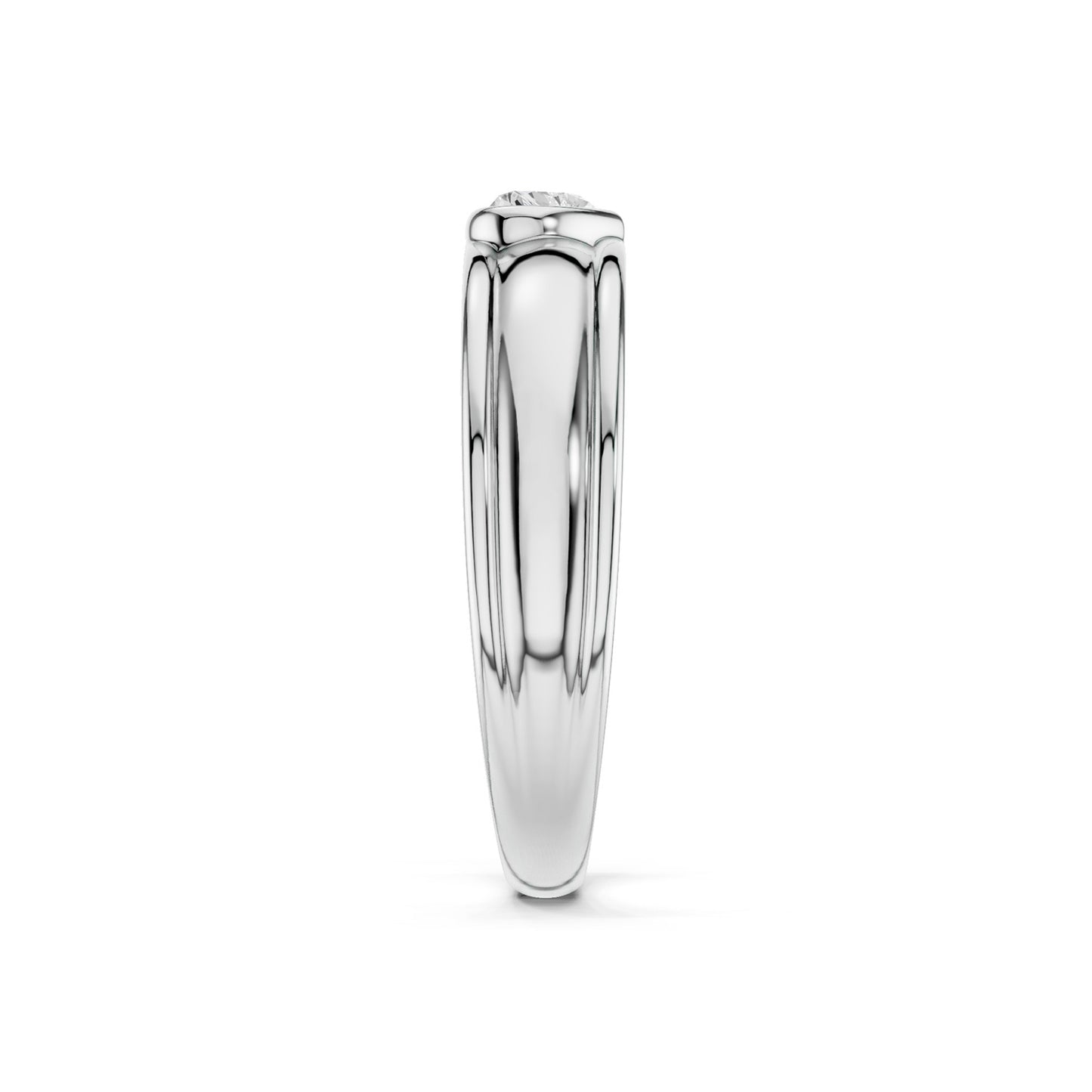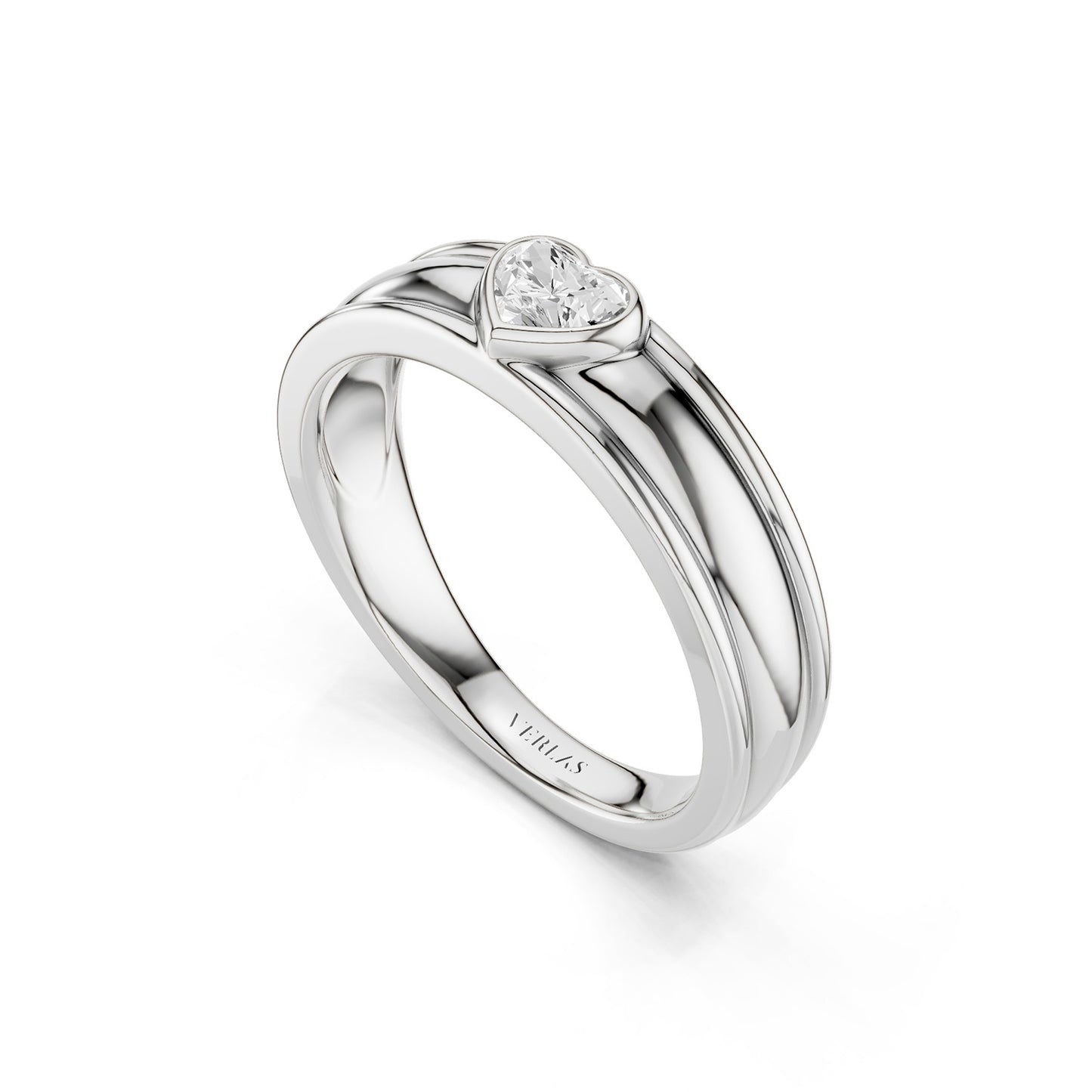 The Heart Encompassing Groove Band features a heart-shaped lab-grown diamond in a sleek bezel setting, accented by a captivating groove encircling the band. This sophisticated diamond band design offers a modern, understated symbol of devotion, perfect for celebrating lasting love.