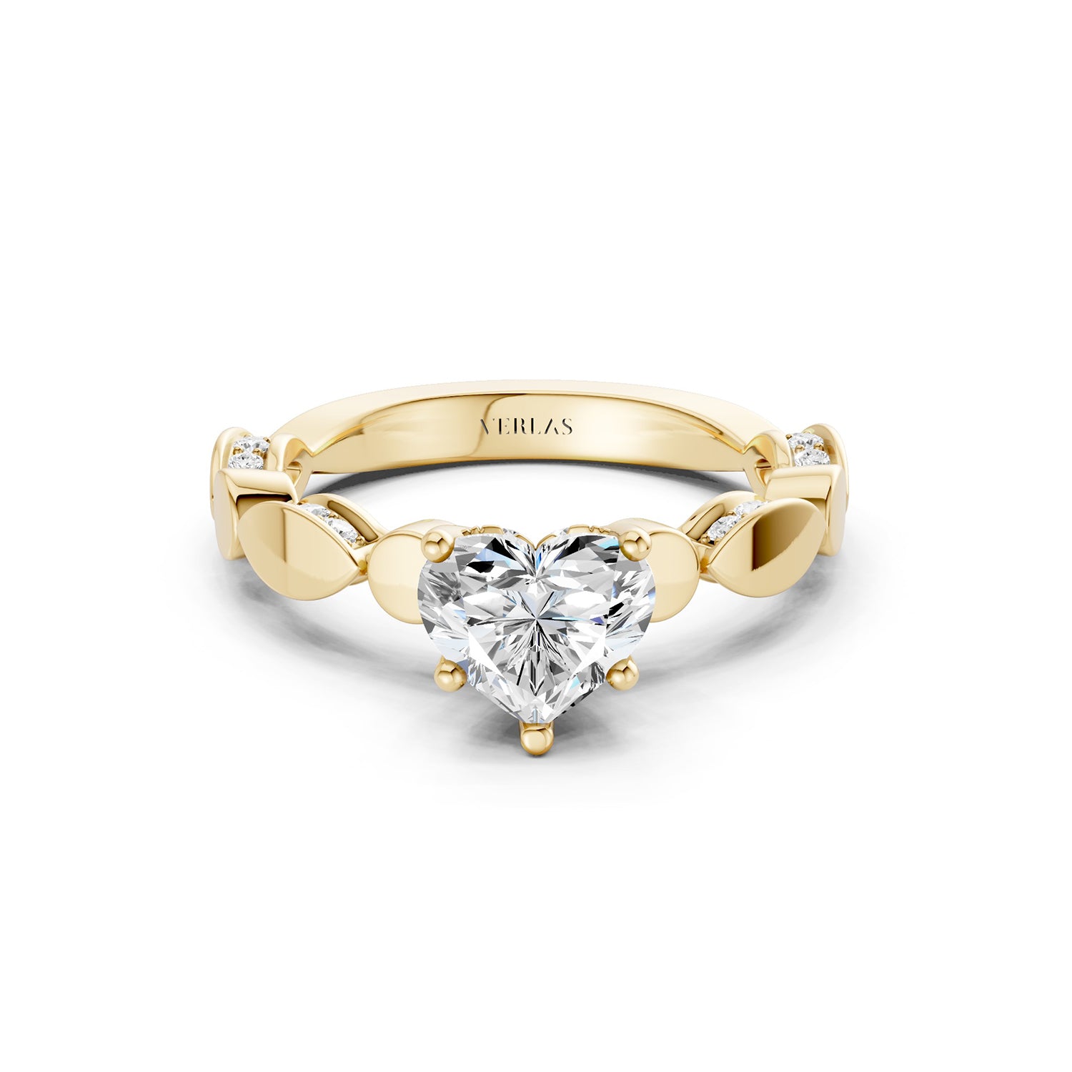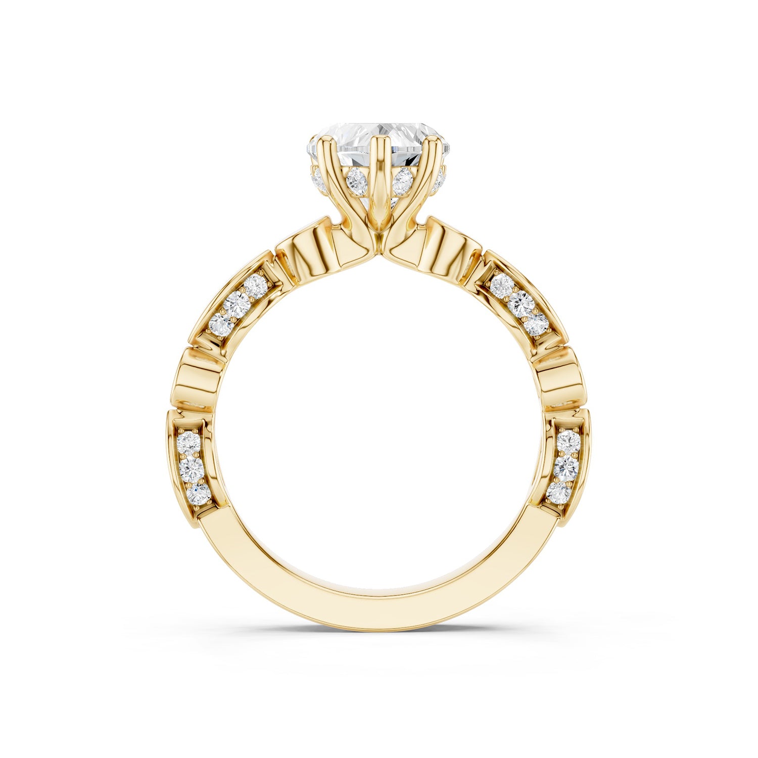 Celebrate romance with this Heart Hidden Halo Accent Diamond Ring, designed with a hidden halo for extra brilliance. The gold band features alternating marquise and round motifs, some polished and others diamond-accented, adding depth and artistry. Hidden lab-grown diamonds beneath the prongs create an unexpected sparkle from every angle.