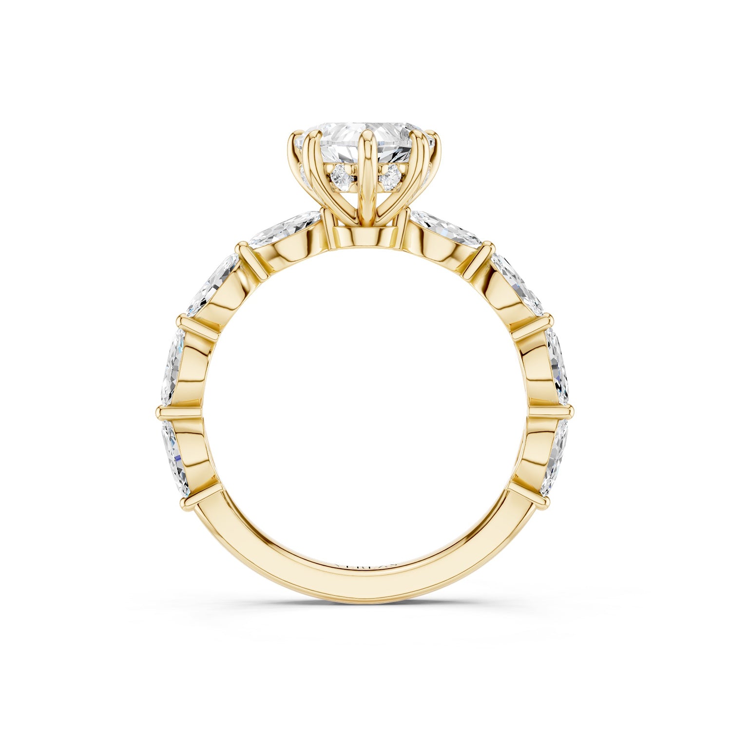 The Hidden Halo Marquise Diamond Engagement Ring reveals its artistry only upon a closer look. A delicate halo of diamonds lies beneath a stunning centerpiece; a design crafted for those who value subtle sophistication. And that golden band adorned with magnificent marquise diamonds is what elevates the experience of wearing this ring to a whole new level. Find your perfect solitaire engagement ring.