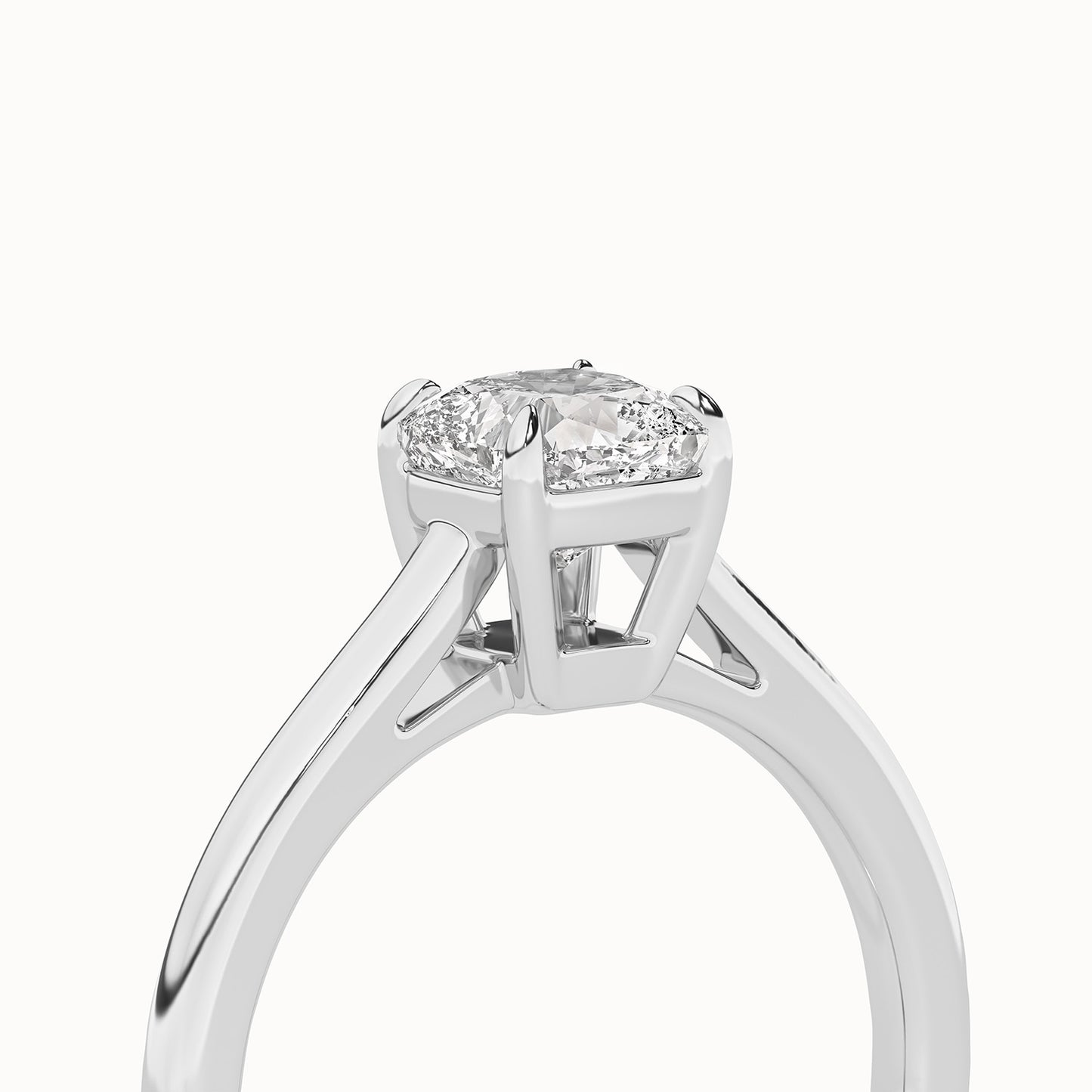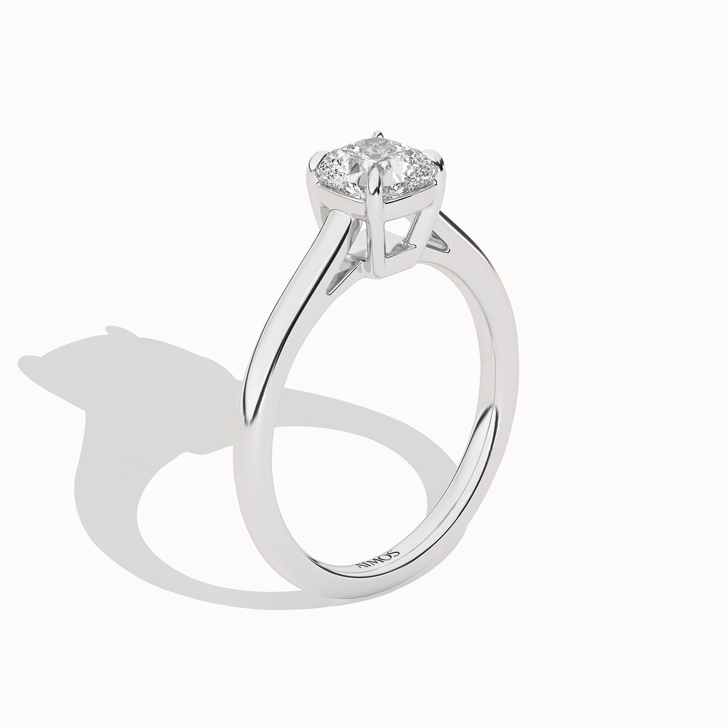 A timeless classic, this cushion-cut lab-grown diamond solitaire ring consists of soft, tapered curves set in four claw prongs, revealing its true beauty effortlessly. A graceful band holding the perfectly aligned facets lends the ring a distinct sensibility with a modern edge.