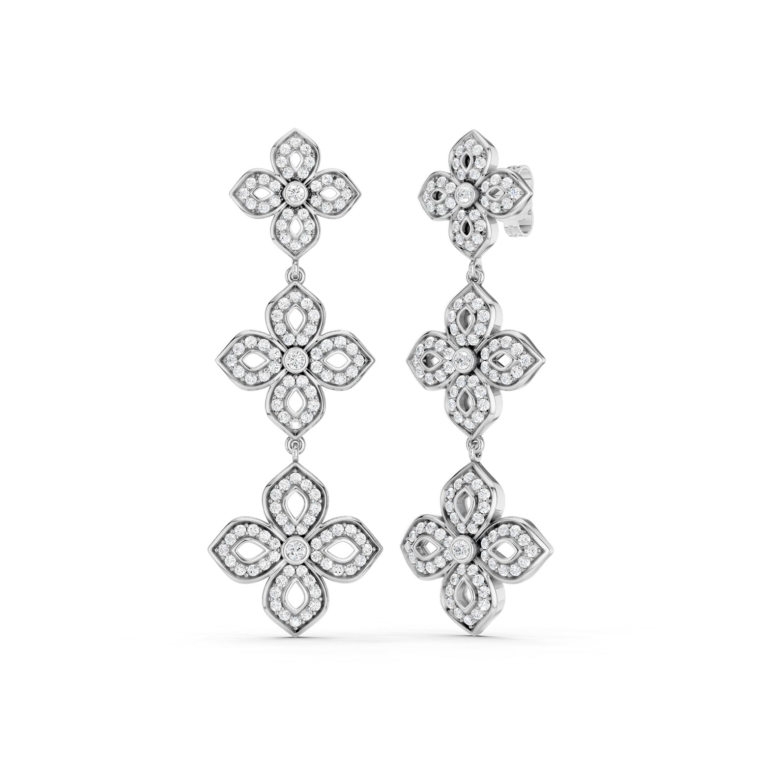 The La Fleur 2 Diamond Silhouette Drop Earrings are a harmonious blend of delicate floral motifs and the timeless allure of diamonds. Each earring features two intricate floral silhouettes brimming with brilliant-cut diamonds of exceptional quality. These diamond drop ea. . . Read More