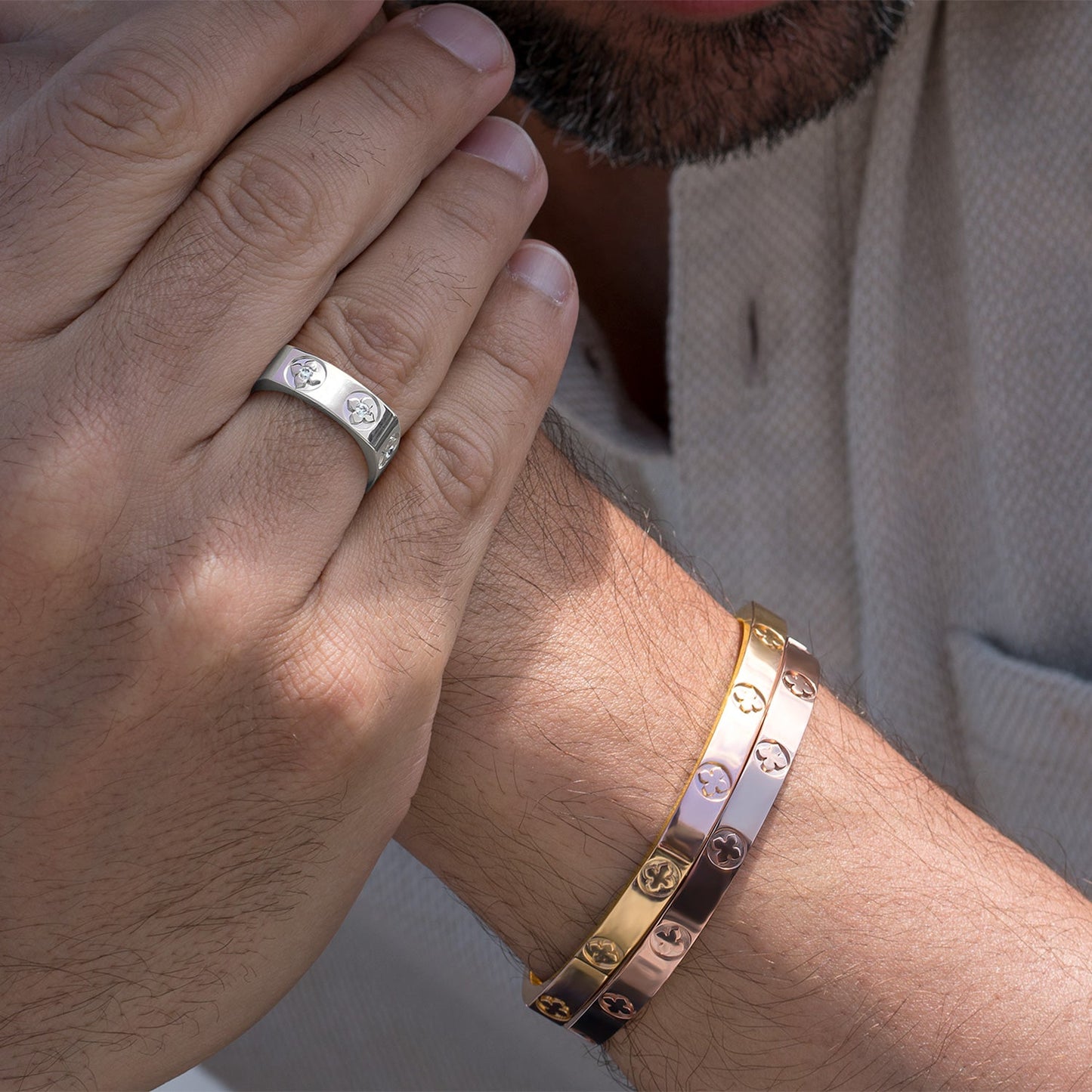 Platinum is an exceptionally durable, bright white, hypoallergenic metal that’s 30 times rarer than gold. At 95% purity, Verlas platinum is the ideal canvas to make diamonds and intricate engravings pop to the fullest.