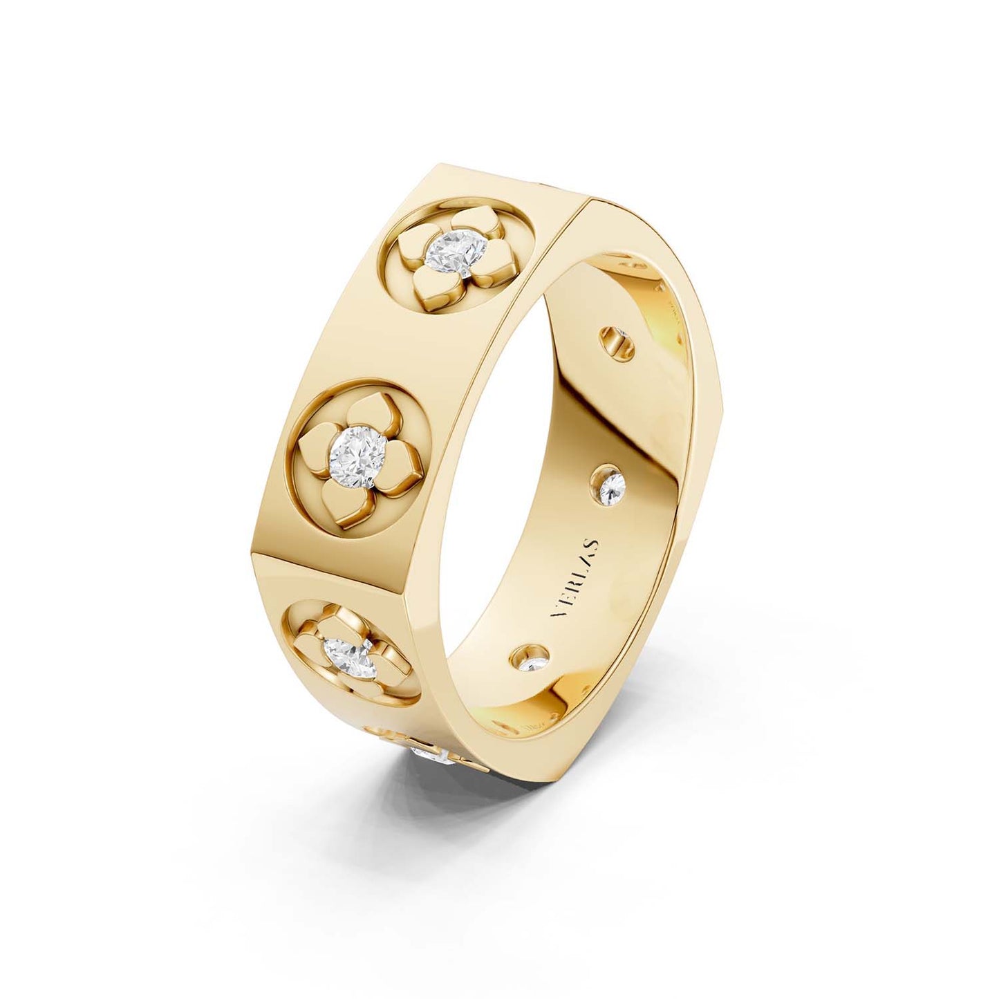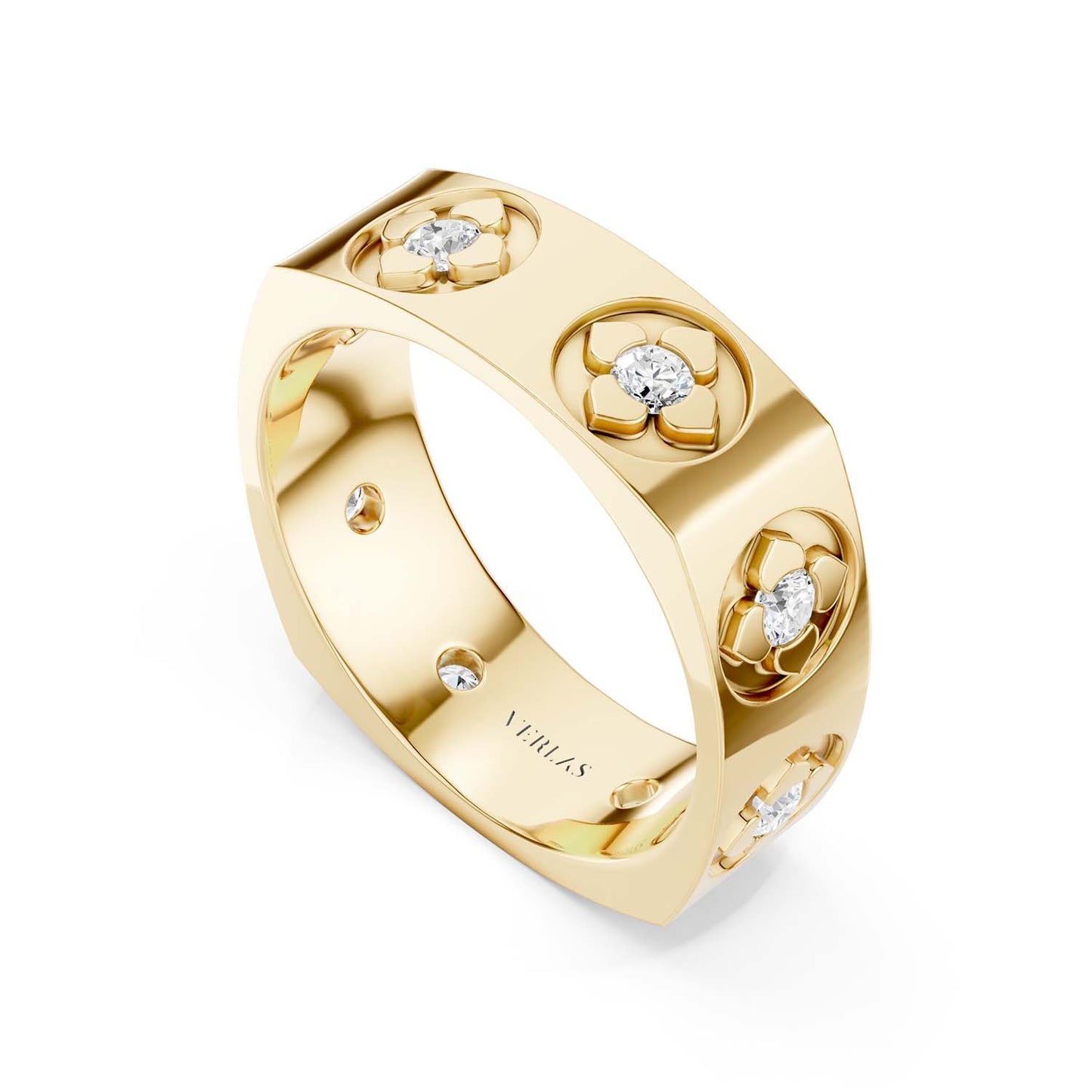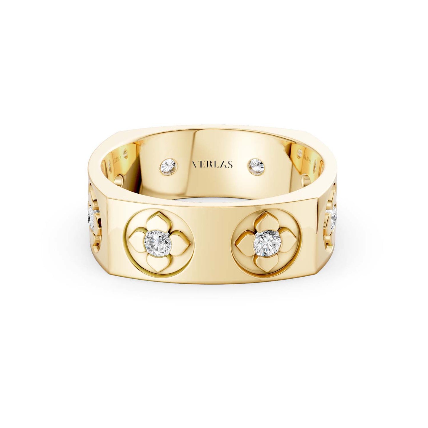 Discover the allure of the La Fleur 6.10mm 6-Diamonds Square Band. With La Fleur's iconic floral motif, it adds a touch of timeless elegance to your everyday style. Crafted in solid gold, this band can be stacked with other La Fleur bands for a powerful and personalized look.