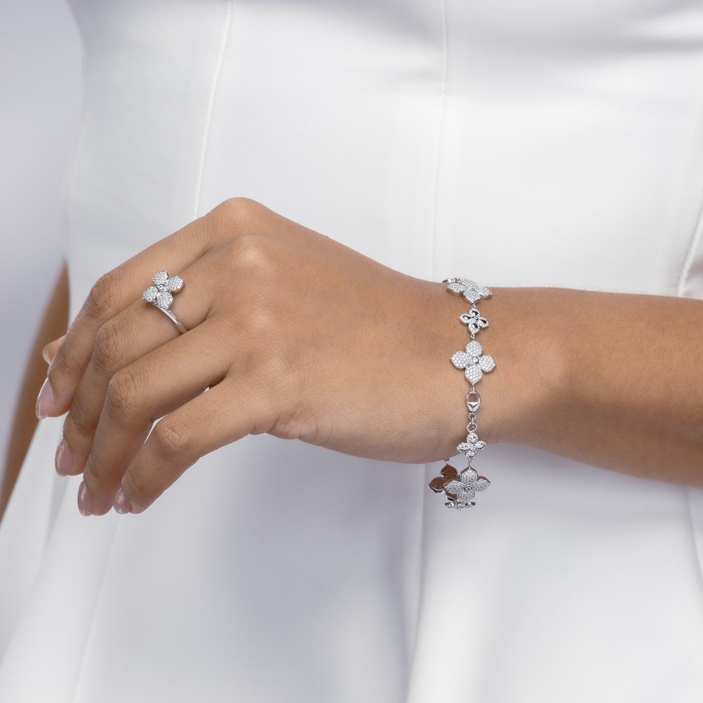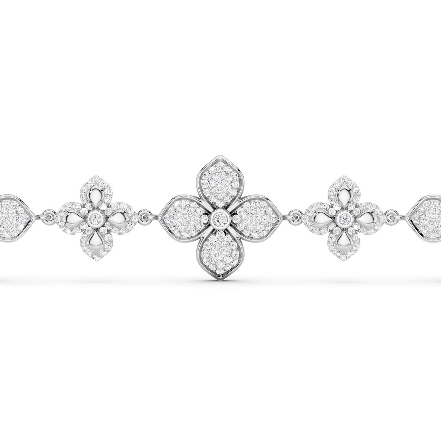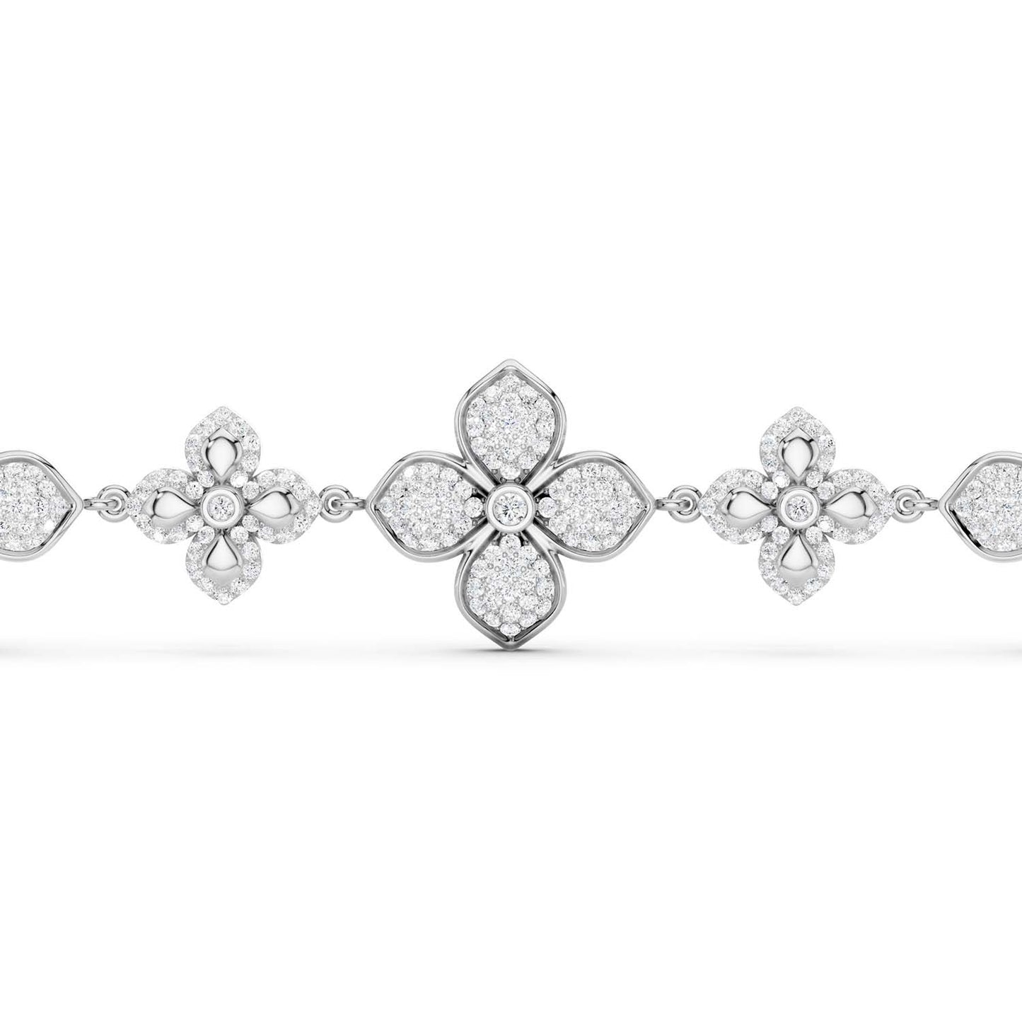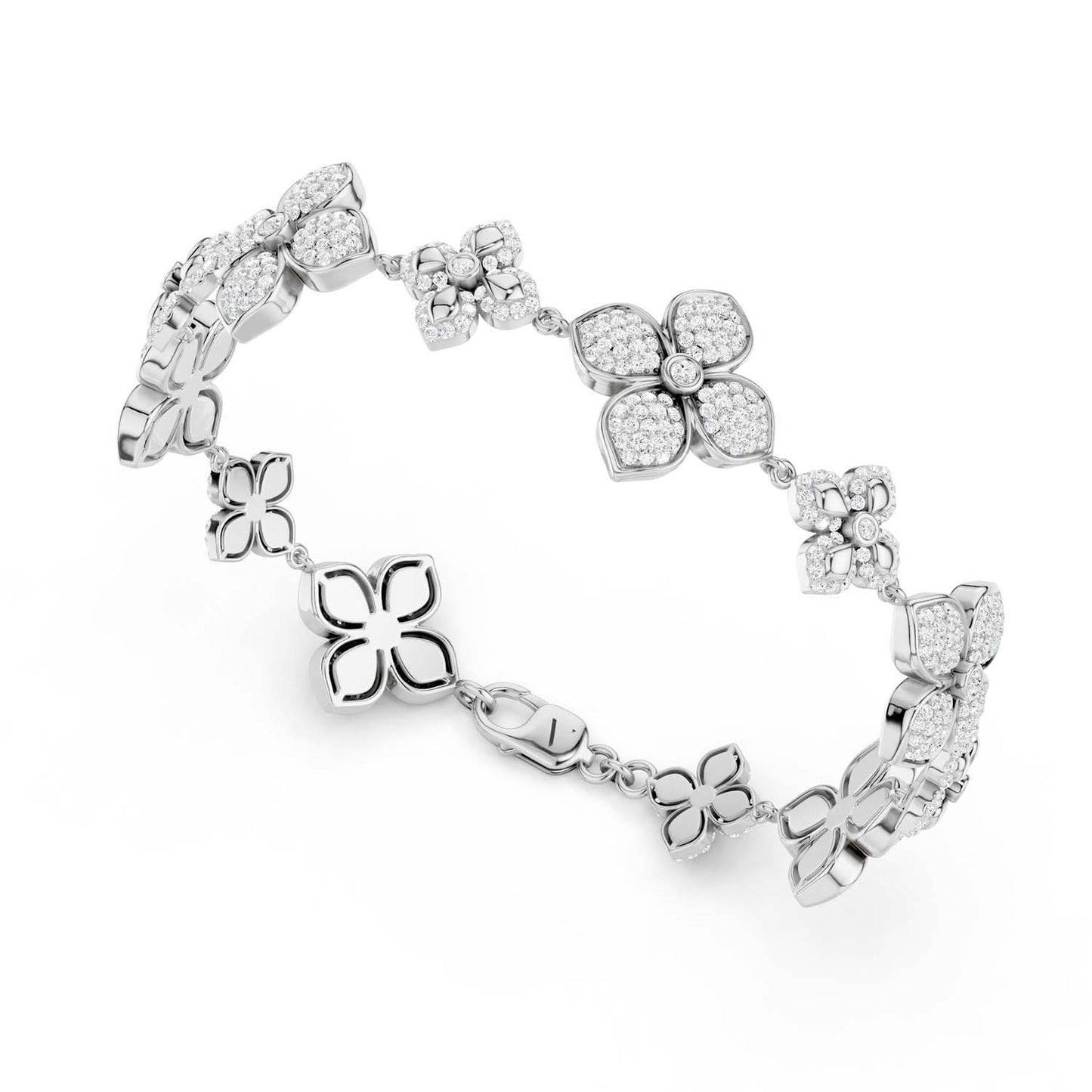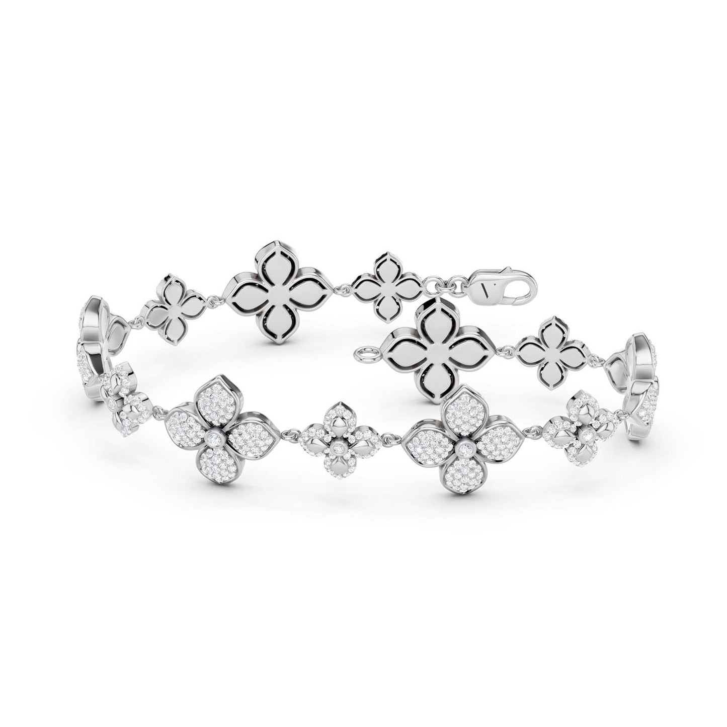 With its accentuating glow, this La Fleur Blooming Radiant Bracelet is sure to add brilliance to your everyday look. Each link is meticulously crafted and studded with lustrous diamonds to resemble the elegant, symmetrical form of a floral bloom, creating a harmonious flow that graces your wrist with style. Wear it solo, or stack this bracelet with other diamond cut bracelet designs for a powerful look.