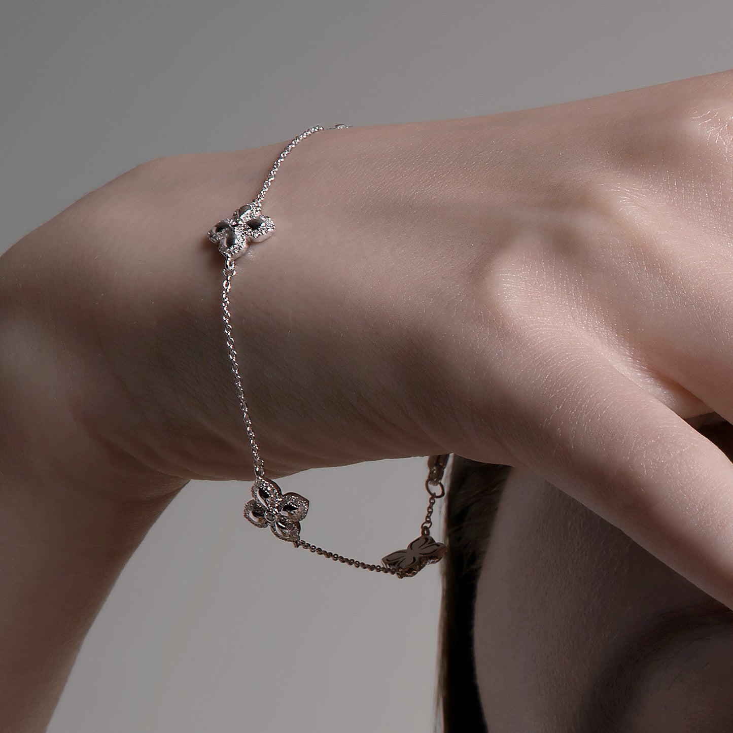 Crafted from the finest materials, this La Fleur Diamond Contour Stationed Bracelet features a delicate chain that is beautifully adorned with scintillating diamonds in a flower setting. Each diamond is carefully hand-set in a unique contour pattern and chosen to meet Verlas’s high standards. This diamond cut bracelet is incredibly versatile and can be worn alone or stacked, at any time of the day.