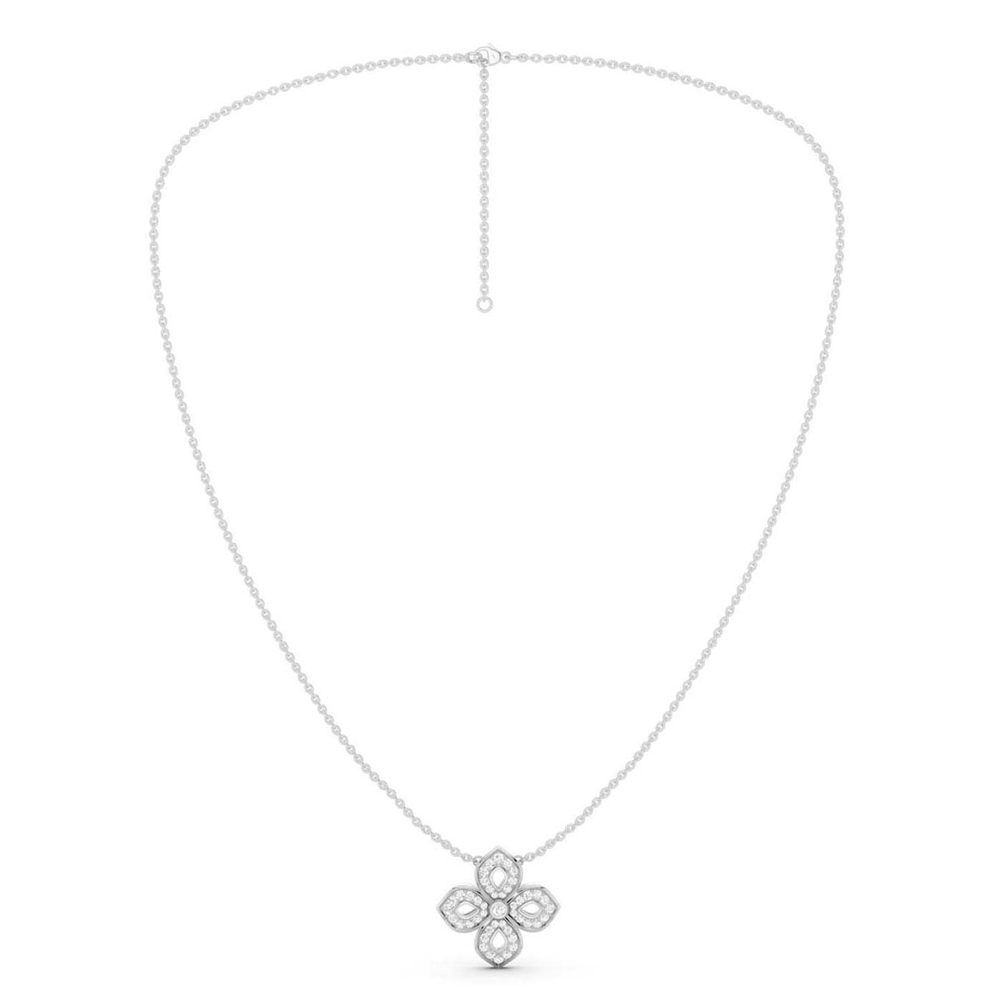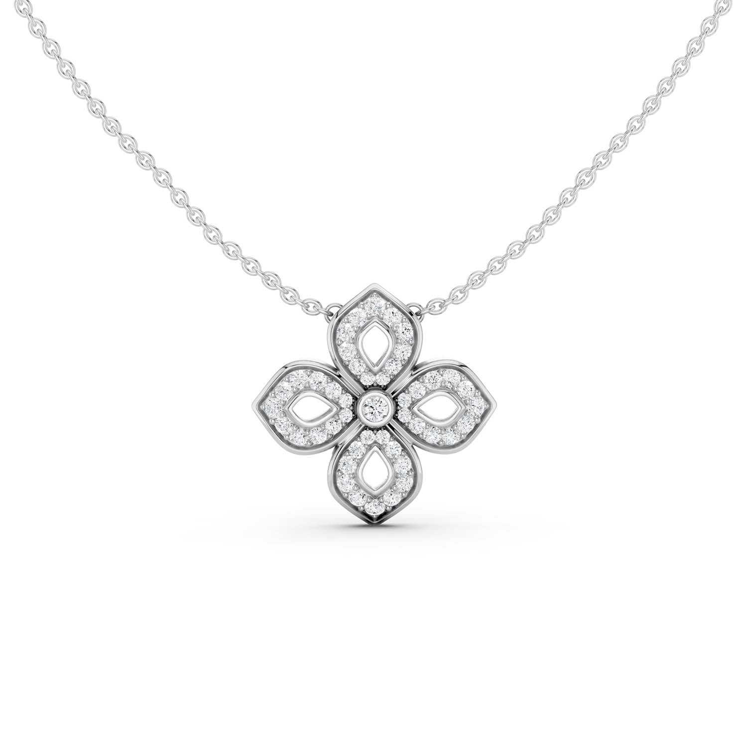 The La Fleur Diamond Silhouette Necklace can be a fresh addition to your jewelry collection. A bezel-set diamond center and micropave-set diamond petals make this necklace a head-turner. This diamond necklace can be a timeless and versatile gift for yourself or someone y. . . Read More