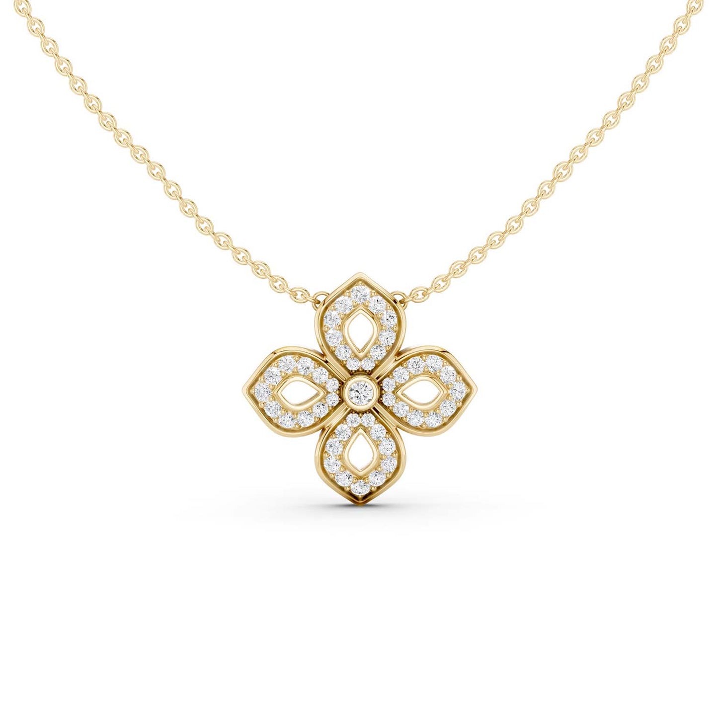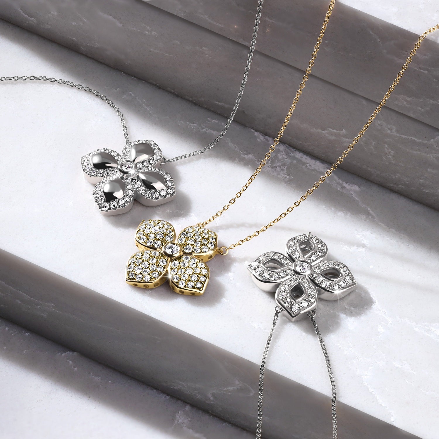 The La Fleur Diamond Silhouette Necklace can be a fresh addition to your jewelry collection. A bezel-set diamond center and micropave-set diamond petals make this necklace a head-turner. This diamond necklace can be a timeless and versatile gift for yourself or someone you love.