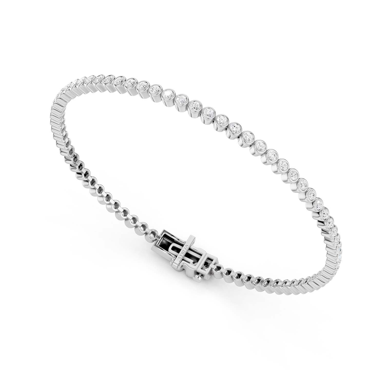 The La Fleur Encompassing Round Tennis Bracelet is a mesmerizing display of beauty and craftsmanship. Featuring a seamless line of round diamonds set in solid gold, this bracelet exudes a timeless charm. Its secure clasp ensures it stays securely on your wrist, making it perfect for any occasion.