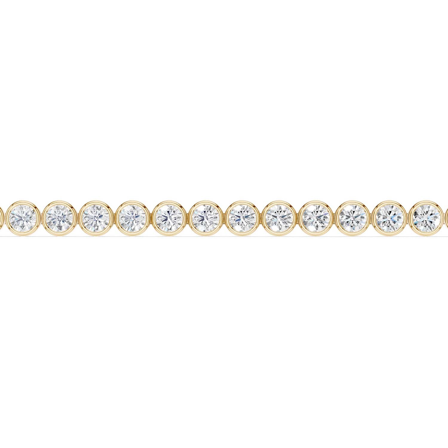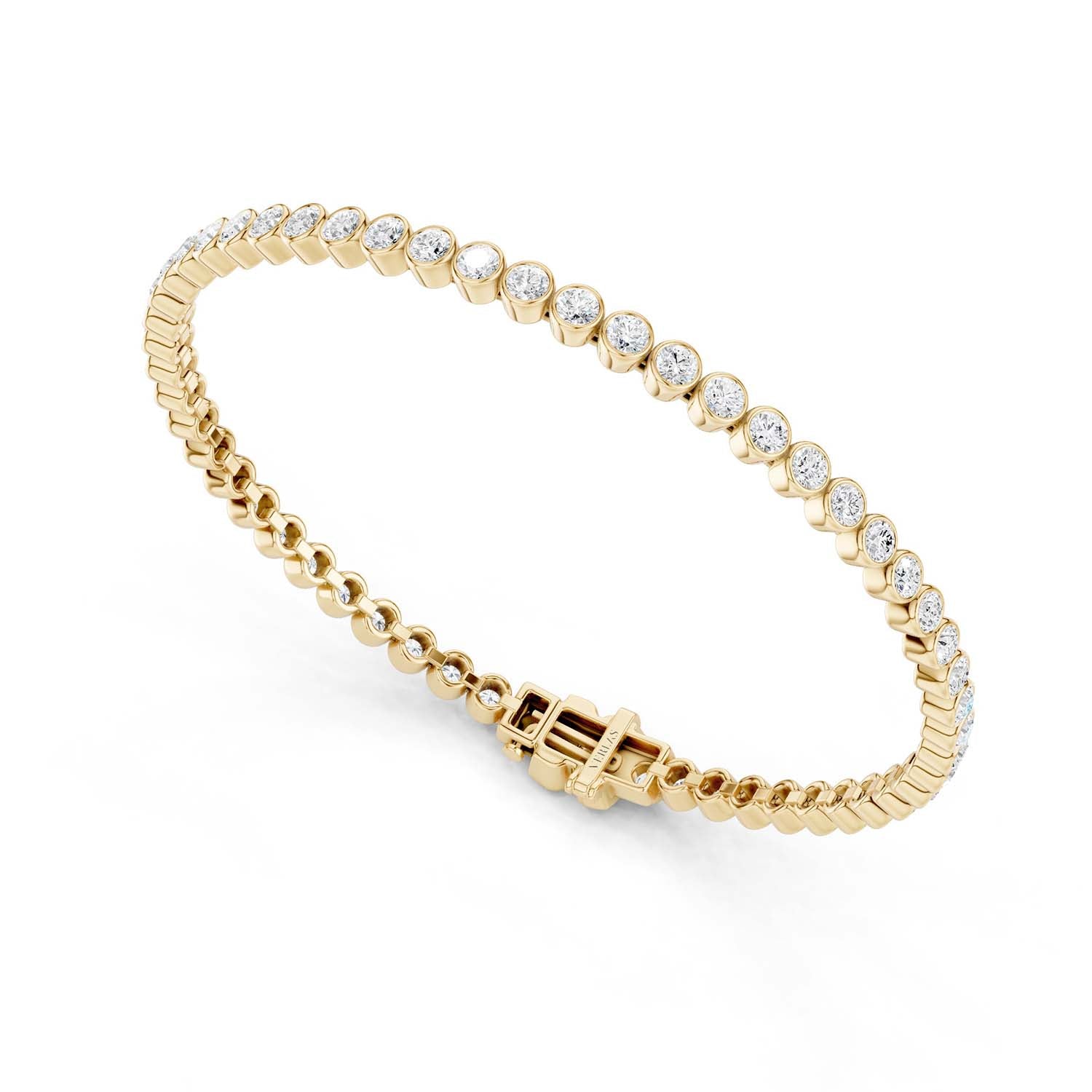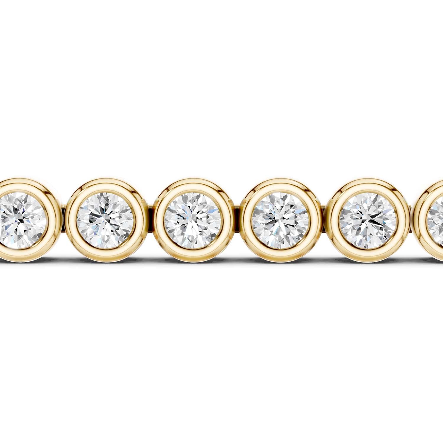The La Fleur Encompassing Round Tennis Bracelet is a mesmerizing display of beauty and craftsmanship. Featuring a seamless line of round diamonds set in solid gold, this bracelet exudes a timeless charm. Its secure clasp ensures it stays securely on your wrist, making it perfect for any occasion.