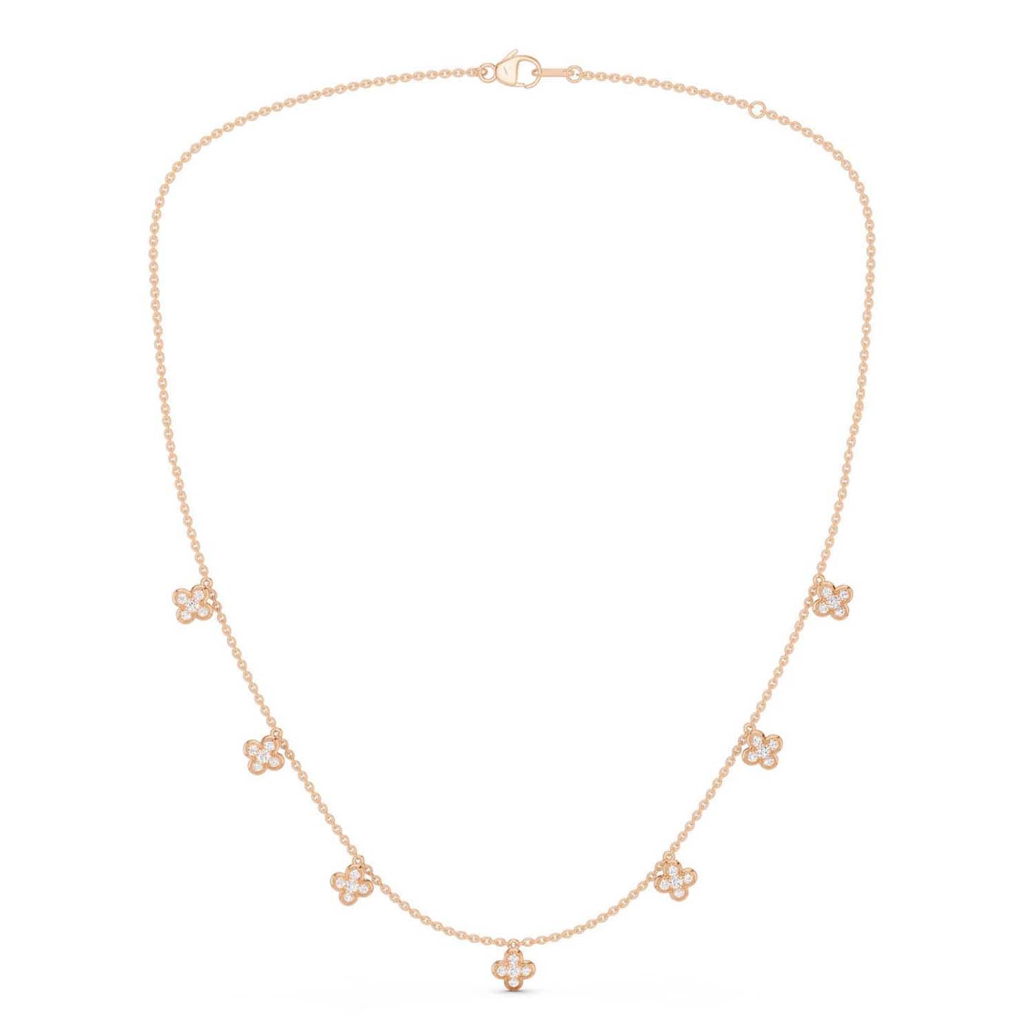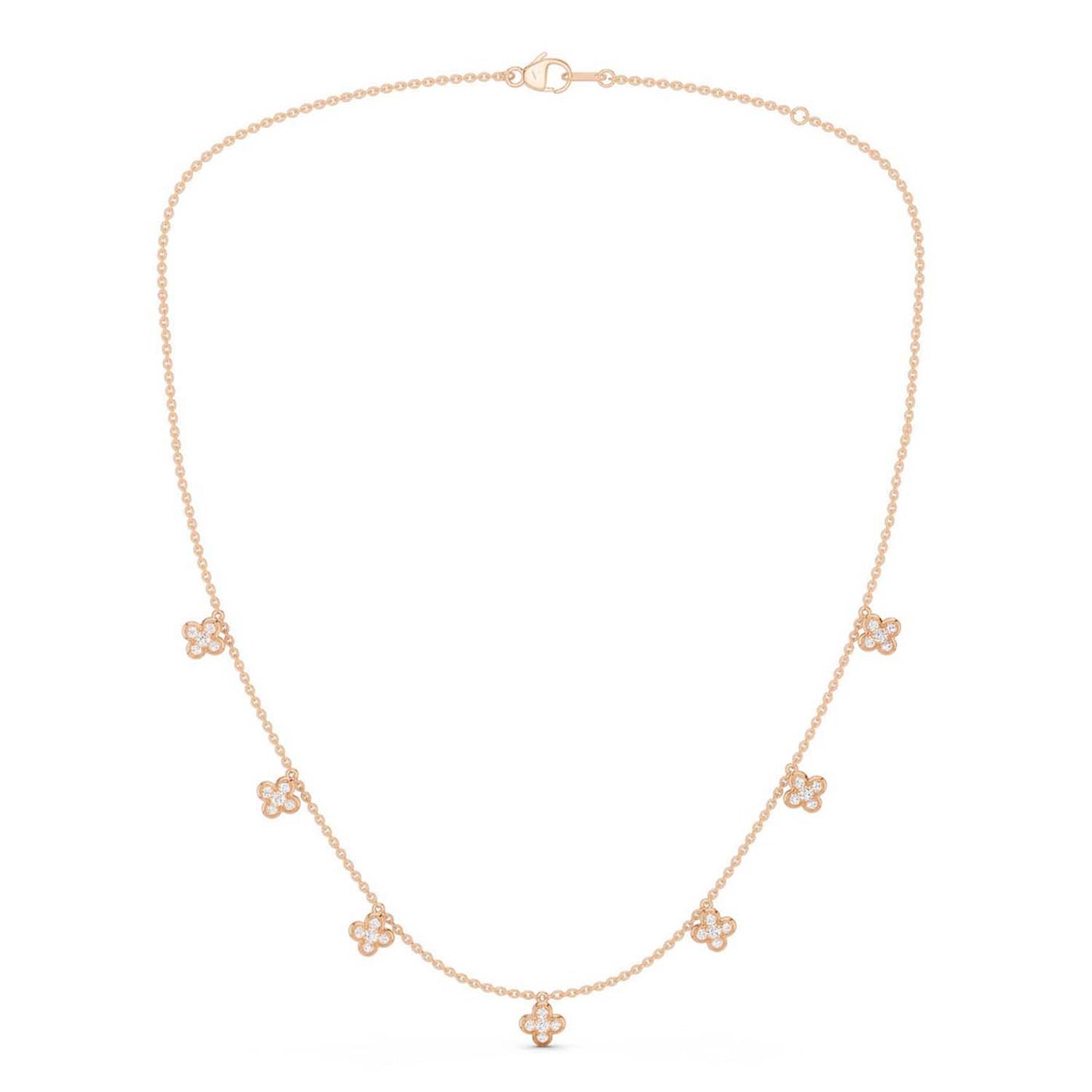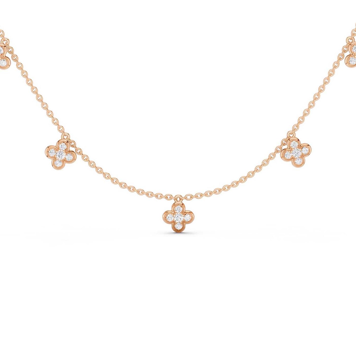 This La Fleur Stationed Choker Necklace boasts a symphony of delicate gold floral designs that encircle your neck with grace and beauty. Each floral station is thoughtfully created to mimic the enchanting intricacies of real flowers. This real diamond choker necklace exudes confidence, making it the perfect choice for special occasions.
