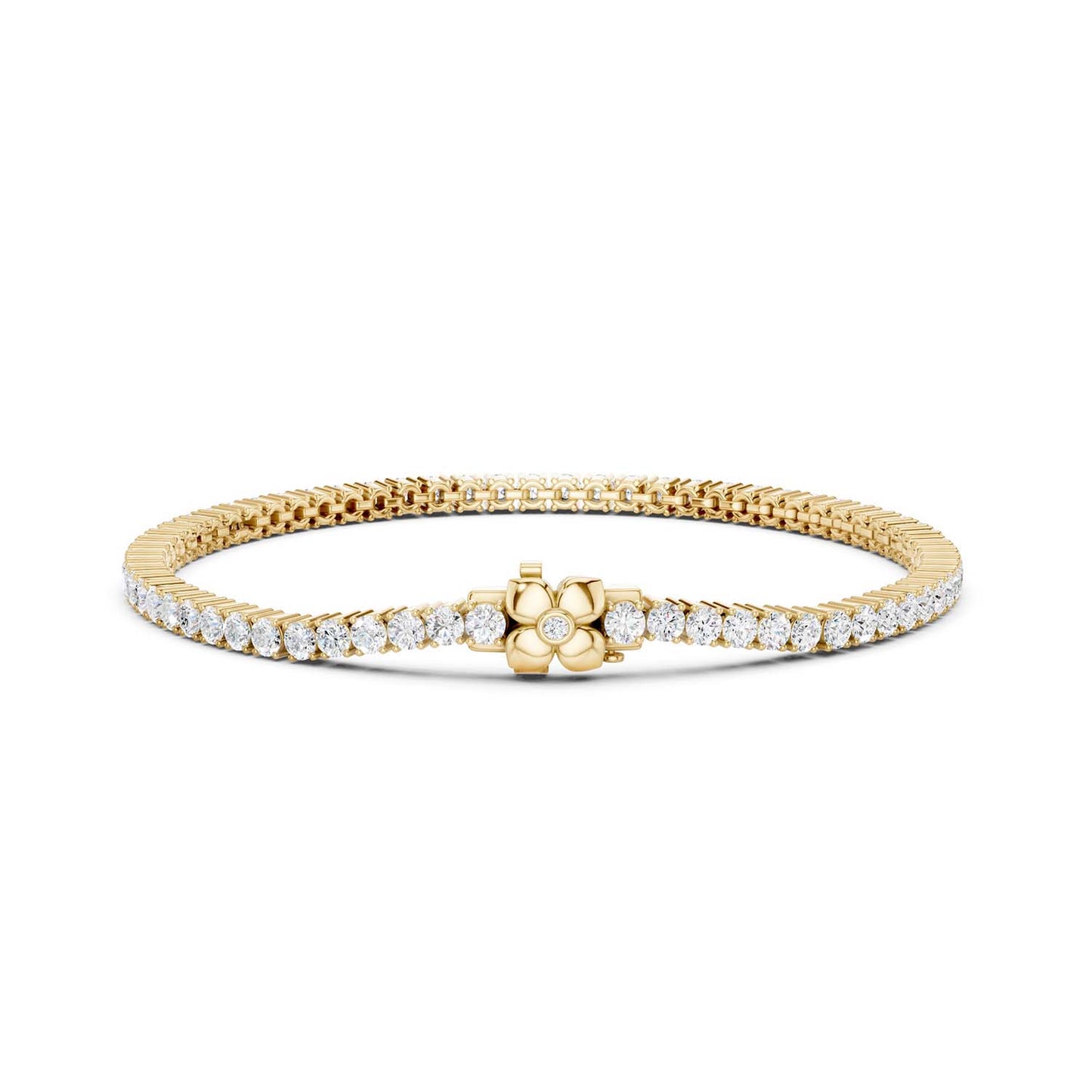 This La Fleur Tennis Bracelet is designed with delicate links adorned with sparkling round-cut diamonds and a dainty flower-shaped clasp. The diamonds catch the light from every angle, creating a breathtaking spectacle with the bracelet wrapped around the wrist. Wearing this diamond tennis bracelet is to experience the beauty and elegance of fine jewelry like never before.