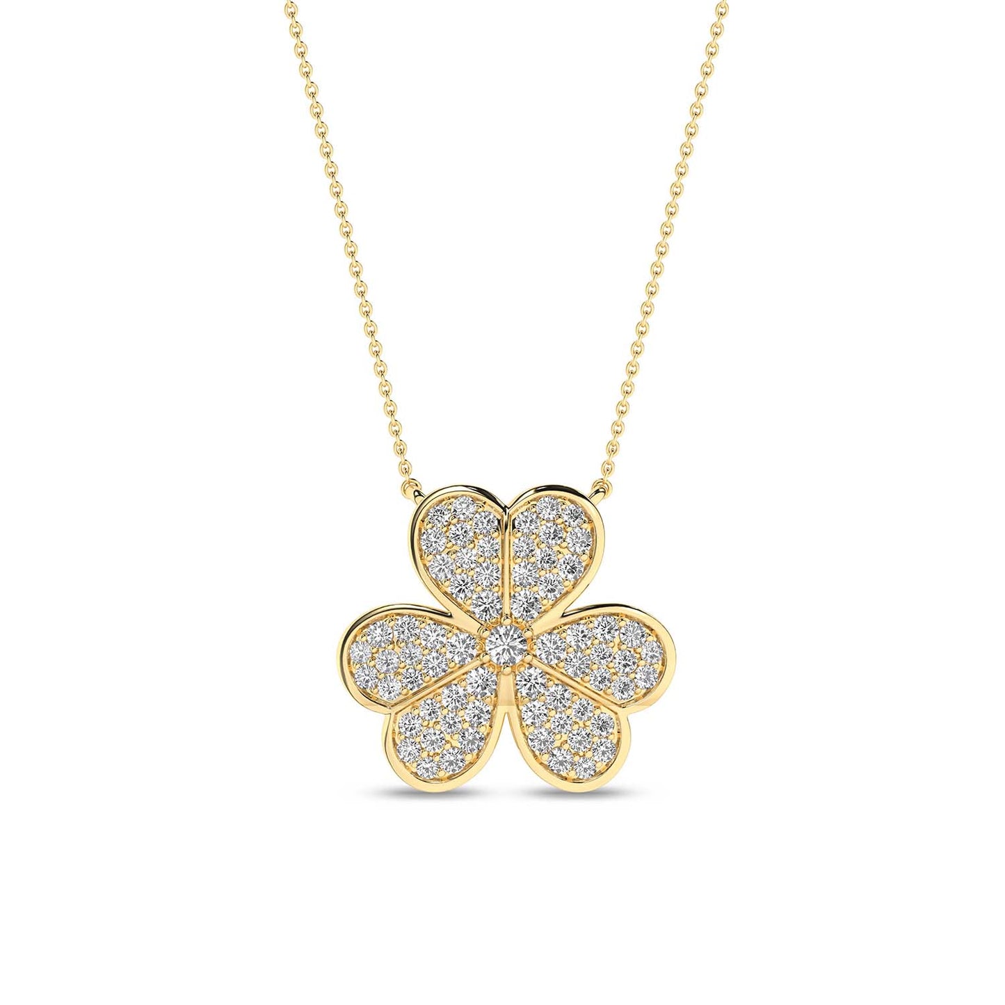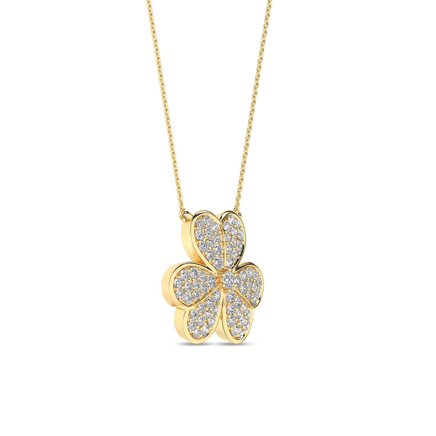 This Lucky Necklace showcases a floral motif with each petal embellished in diamond accents that capture the timeless beauty of blossoms. The floral diamond necklace design symbolizes luck and prosperity, making it a thoughtful and cherished gift.