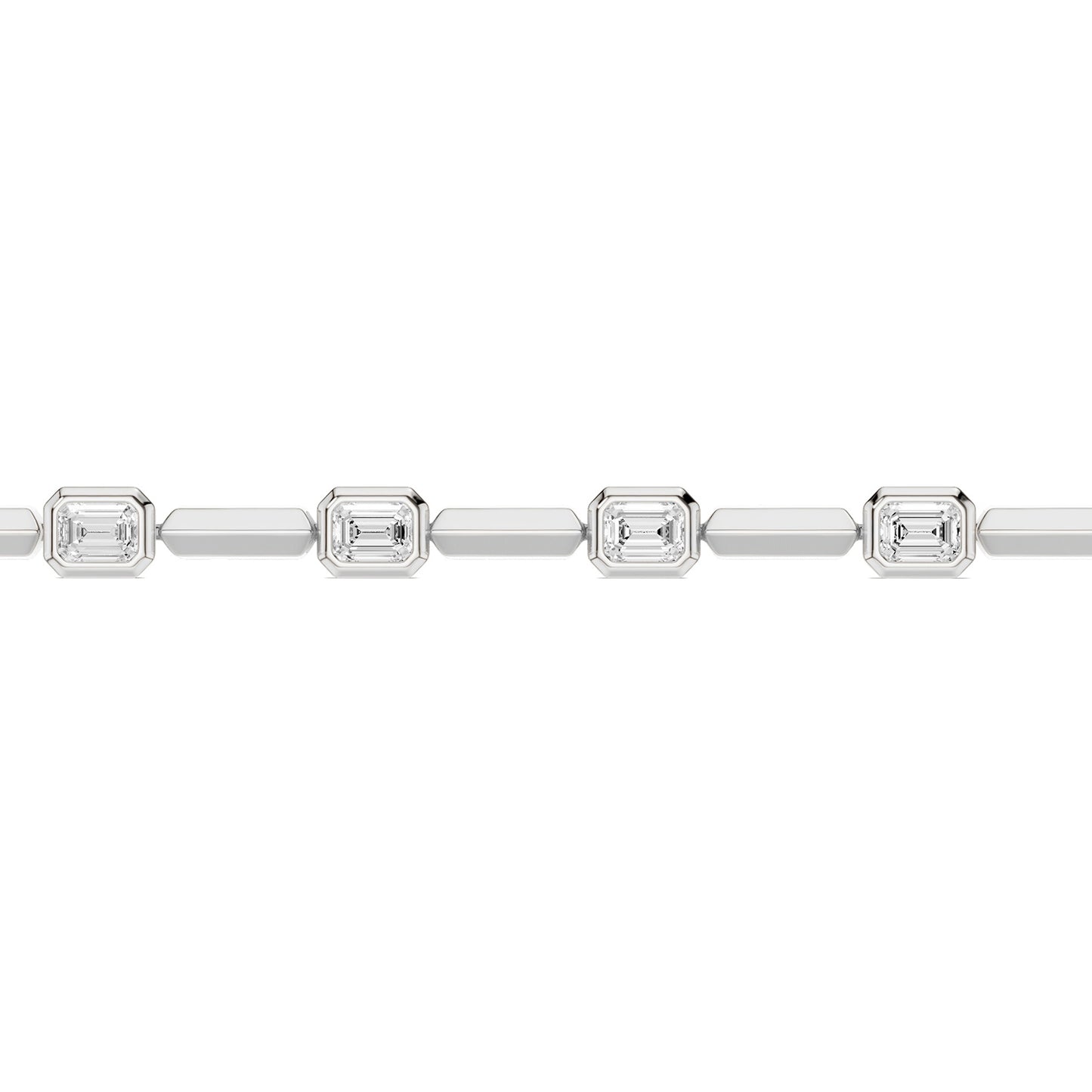Unleash timeless elegance with the Luxe Bezel-Set Emerald Tennis Bracelet—a true fusion of sophistication and modern style. This exquisite diamond bracelet features alternating emerald diamonds and sleek gold bars, each stone set in a secure and polished bezel setting that enhances its brilliance while offering a sleek, contemporary look. Whether you’re elevating a casual look or adding a touch of glamour to your evening attire, this tennis bracelet is a must-have for those who appreciate both luxury and conscious craftsmanship.