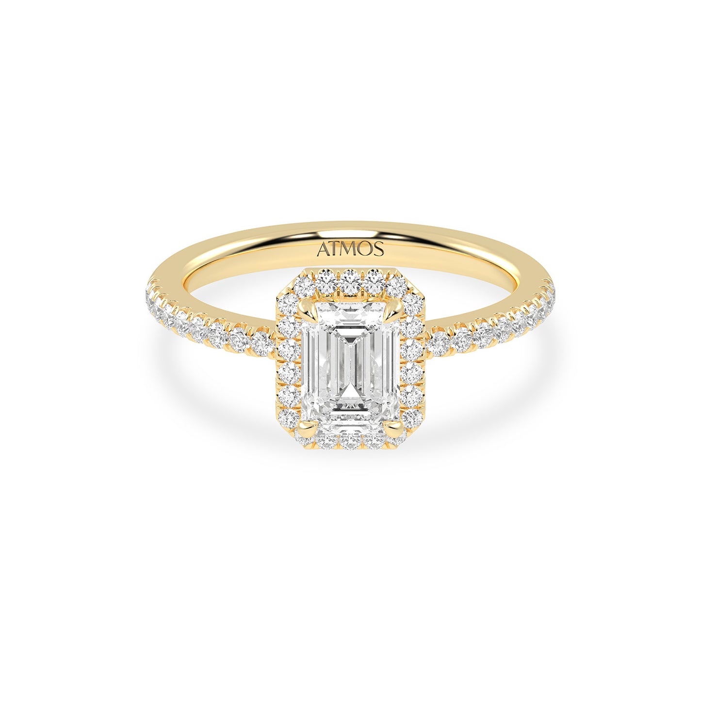 This lab-grown diamond halo ring is the epitome of vintage-inspired glamour. The classic emerald-cut center is enhanced by hand-cut facets and beautifully adorned with a halo of petite shimmering diamonds for undeniable radiance.