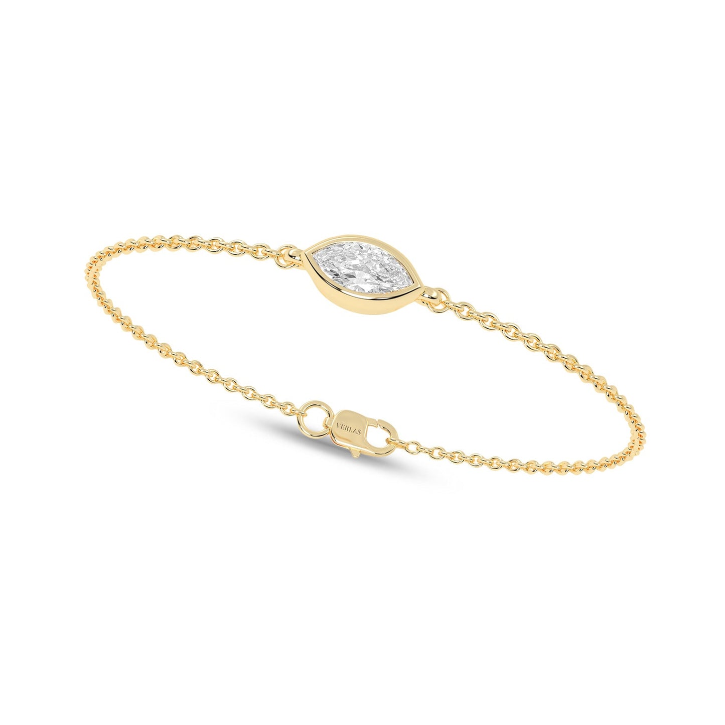 This Marquise Diamond Glitter Bracelet showcases a fine marquise diamond in a bezel setting that will instantly elevate your style. Its dainty and refined design ensures it can be worn alone for a touch of understated elegance or stacked with other bracelets for a more p. . . Read More