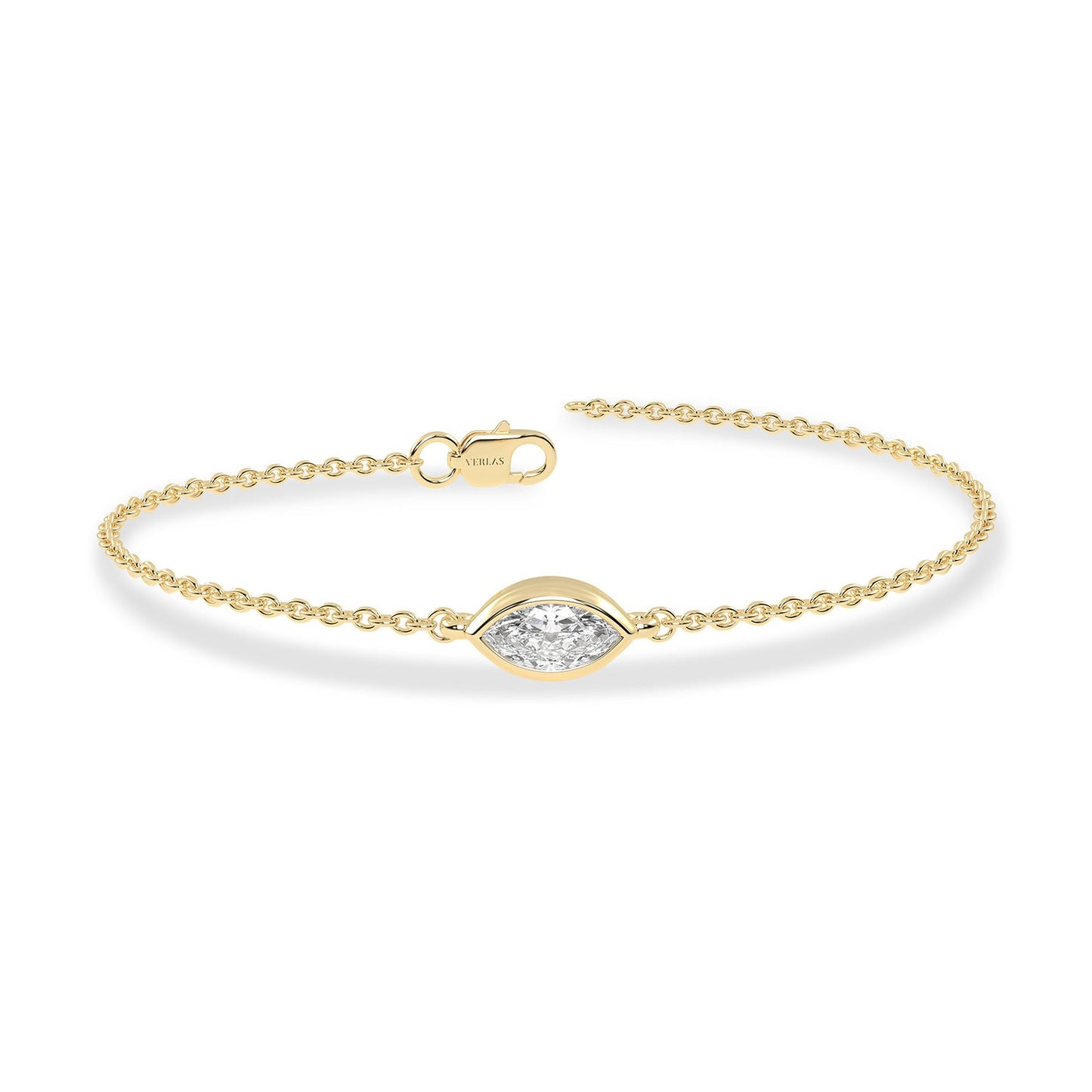 This Marquise Diamond Glitter Bracelet showcases a fine marquise diamond in a bezel setting that will instantly elevate your style. Its dainty and refined design ensures it can be worn alone for a touch of understated elegance or stacked with other bracelets for a more personalized statement. With its subtle yet captivating shimmer, this diamond cut bracelet effortlessly bestows versatile glamour upon your ensemble, whether it's a casual affair or a special occasion.