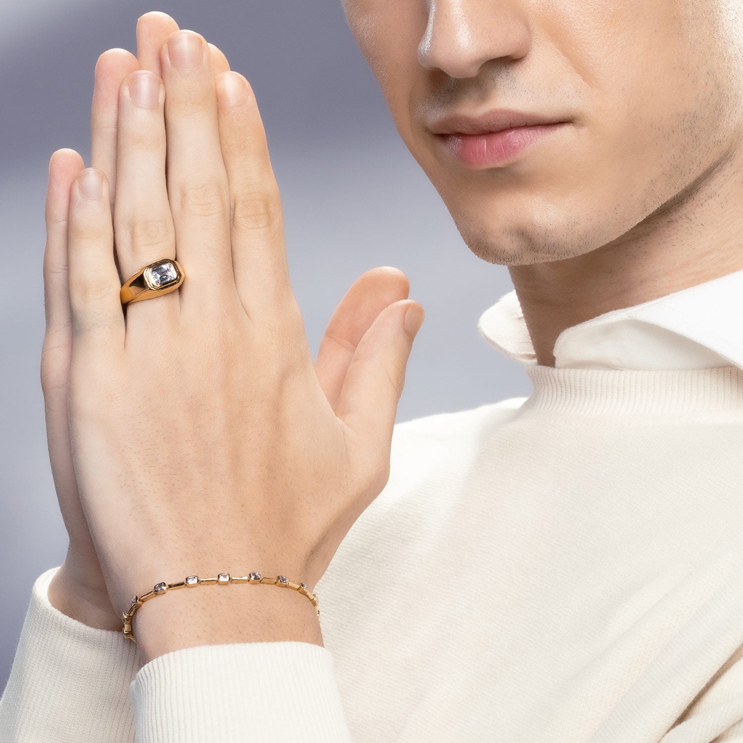 A chic emerald cut lab-grown diamond sits flat, embraced in a bezel setting, accentuating the ring's stylish look and feel. This emerald ring of the best lab-grown diamond is a perfect souvenir for your forever love and boasts a polished and understated class.