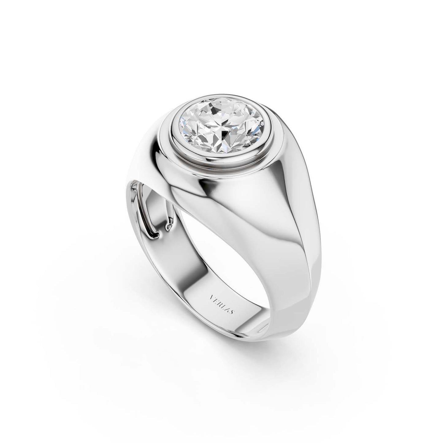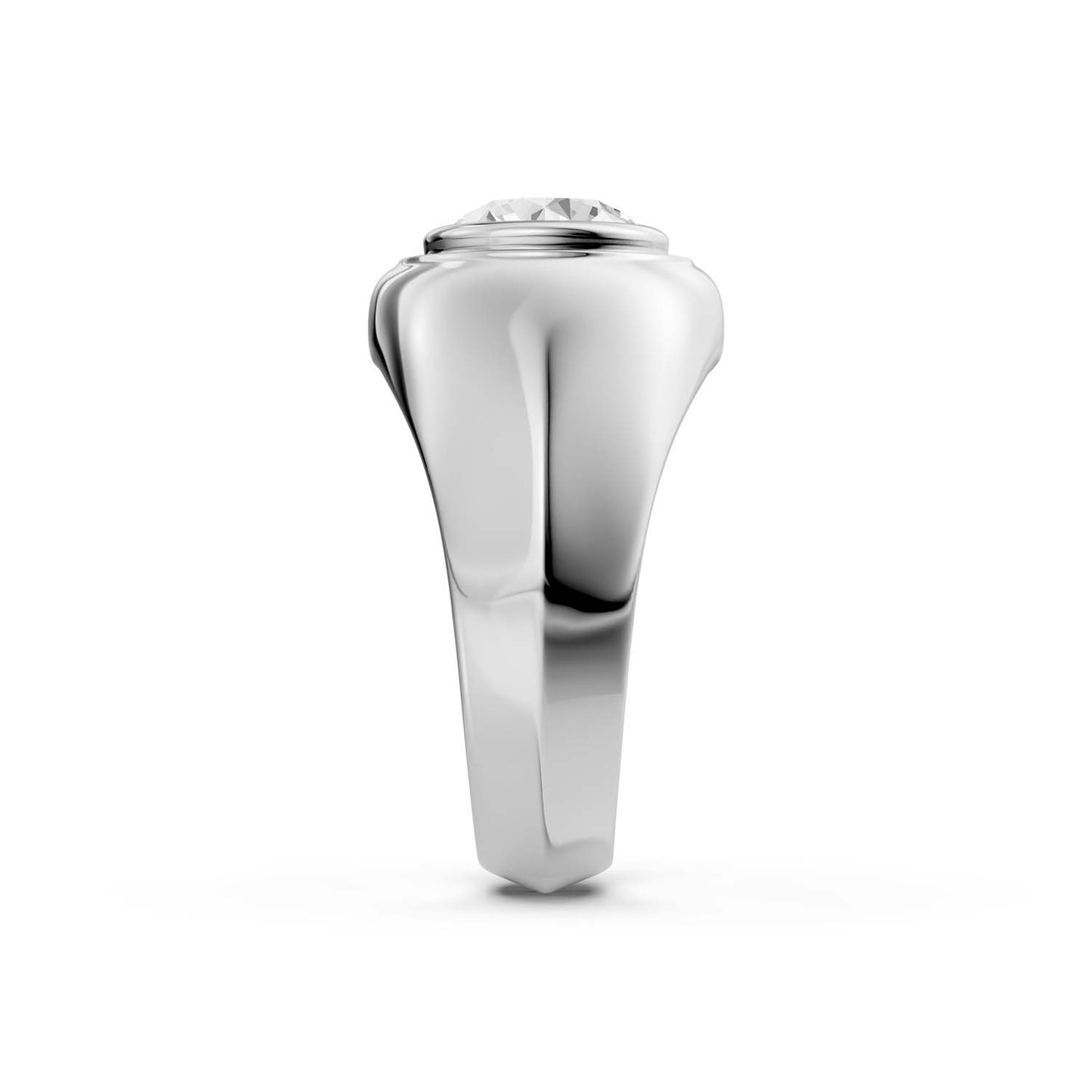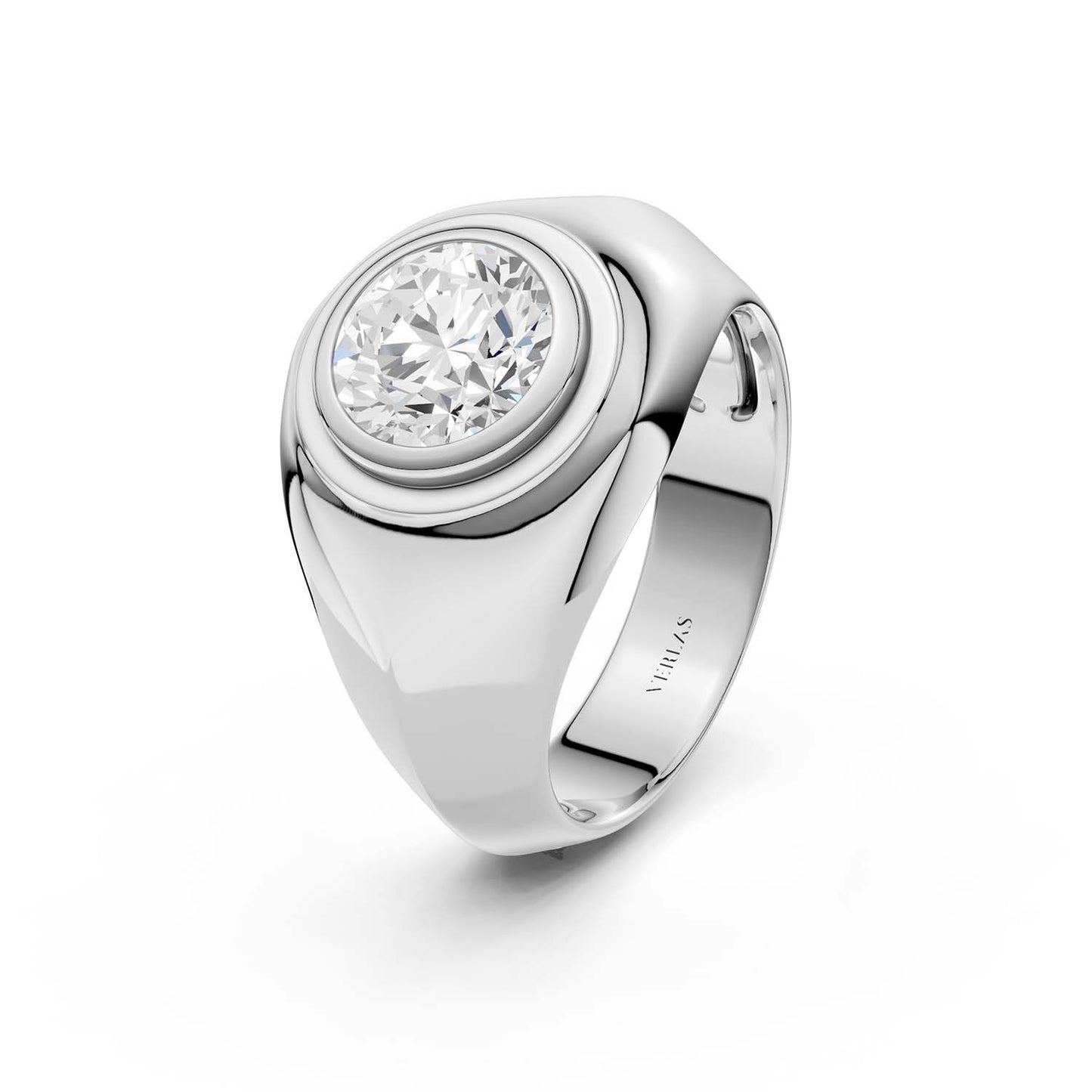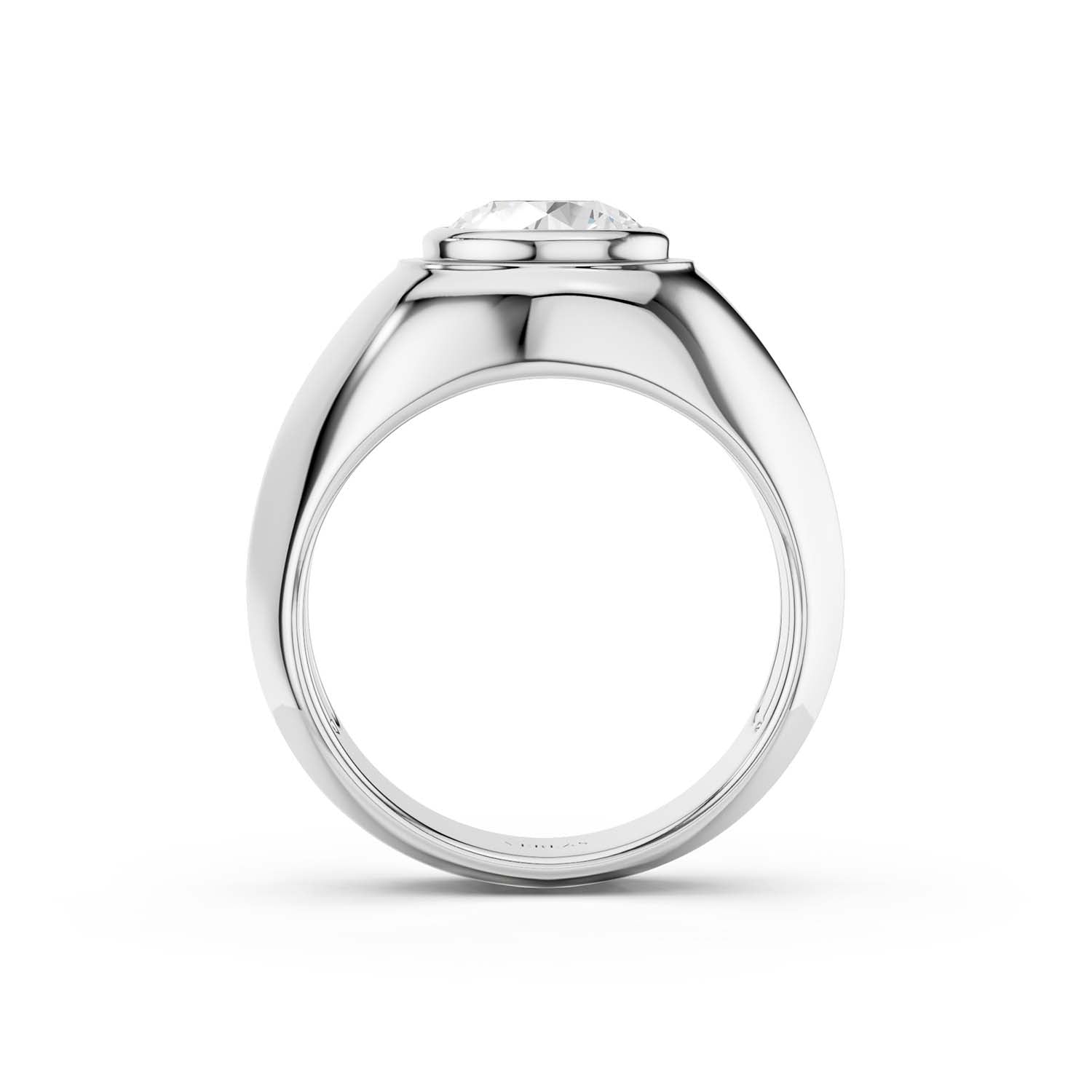 This bold ring features a flat-top labgrown diamond for an engagement ring at the center. The ring has a charming appeal with rounded edges and a sublime round-cut diamond. This bezel-set ring is the best choice for all who cares about the small things in life and espouses perfection.