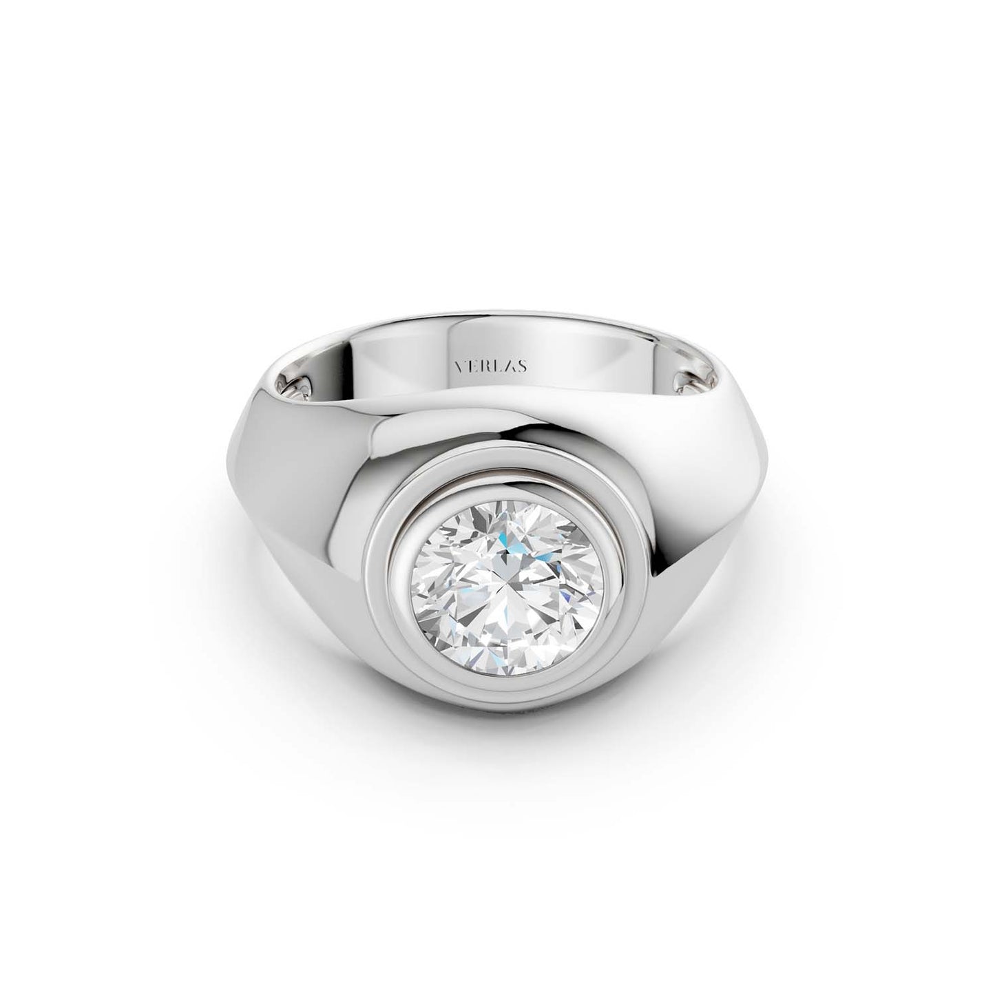 This bold ring features a flat-top labgrown diamond for an engagement ring at the center. The ring has a charming appeal with rounded edges and a sublime round-cut diamond. This bezel-set ring is the best choice for all who cares about the small things in life and espous. . . Read More