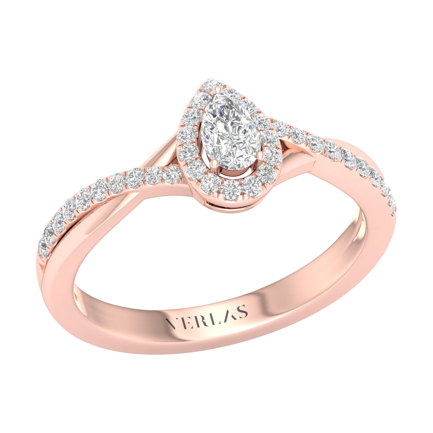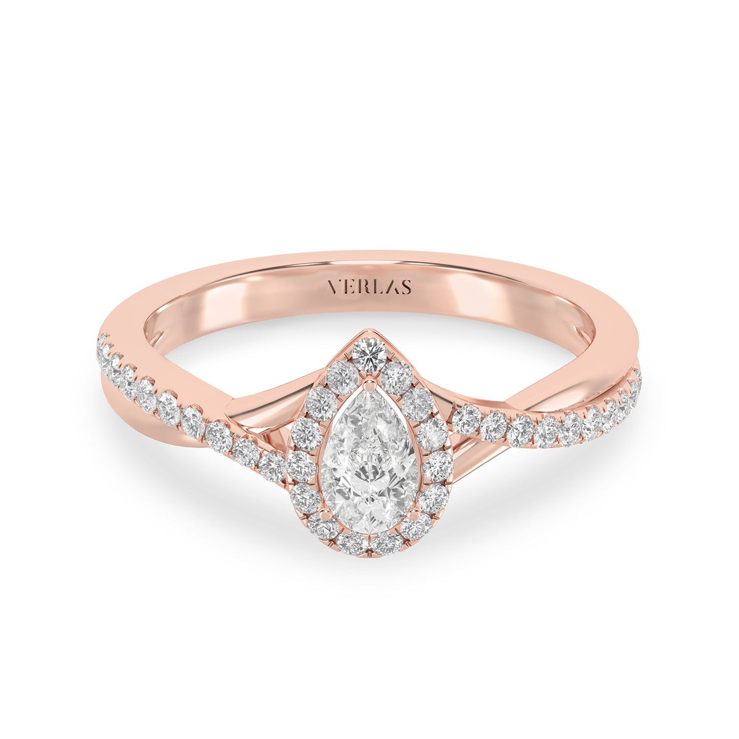 The My Crossover Peeking Dewdrop Halo Ring is a stunning ring with a round brilliant diamond peeking through a crossover halo of round diamonds. The ring is made of gold and has a split shank design that adds flair. It is a dazzling and eye-catching ring that will make y. . . Read More