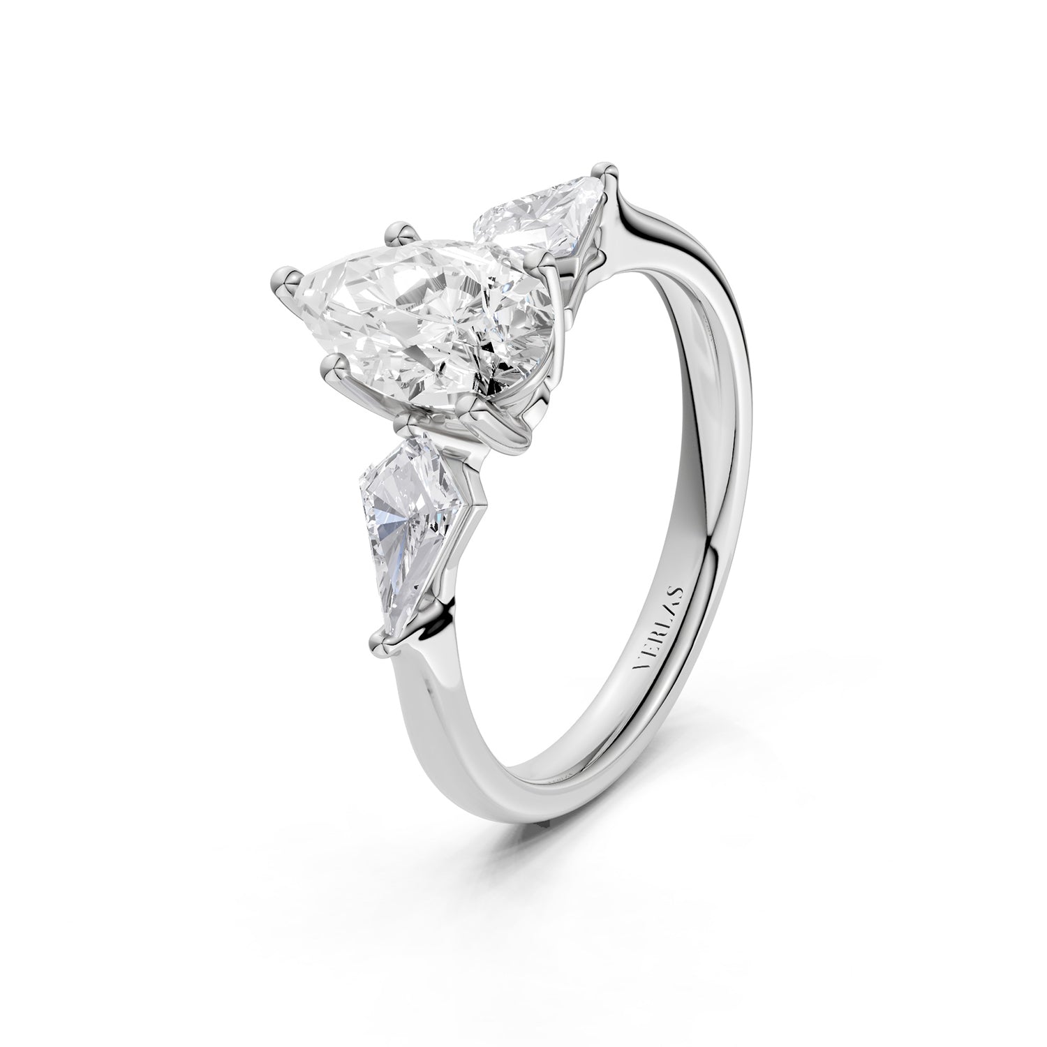 A modern take on timeless elegance, this lab-grown Pear-Kite Trinity Diamond Ring features a brilliant pear-cut center diamond framed by two kite-shaped side diamonds. Crafted in 14K gold, this three-stone design symbolizes love, balance, and f. . . Read More