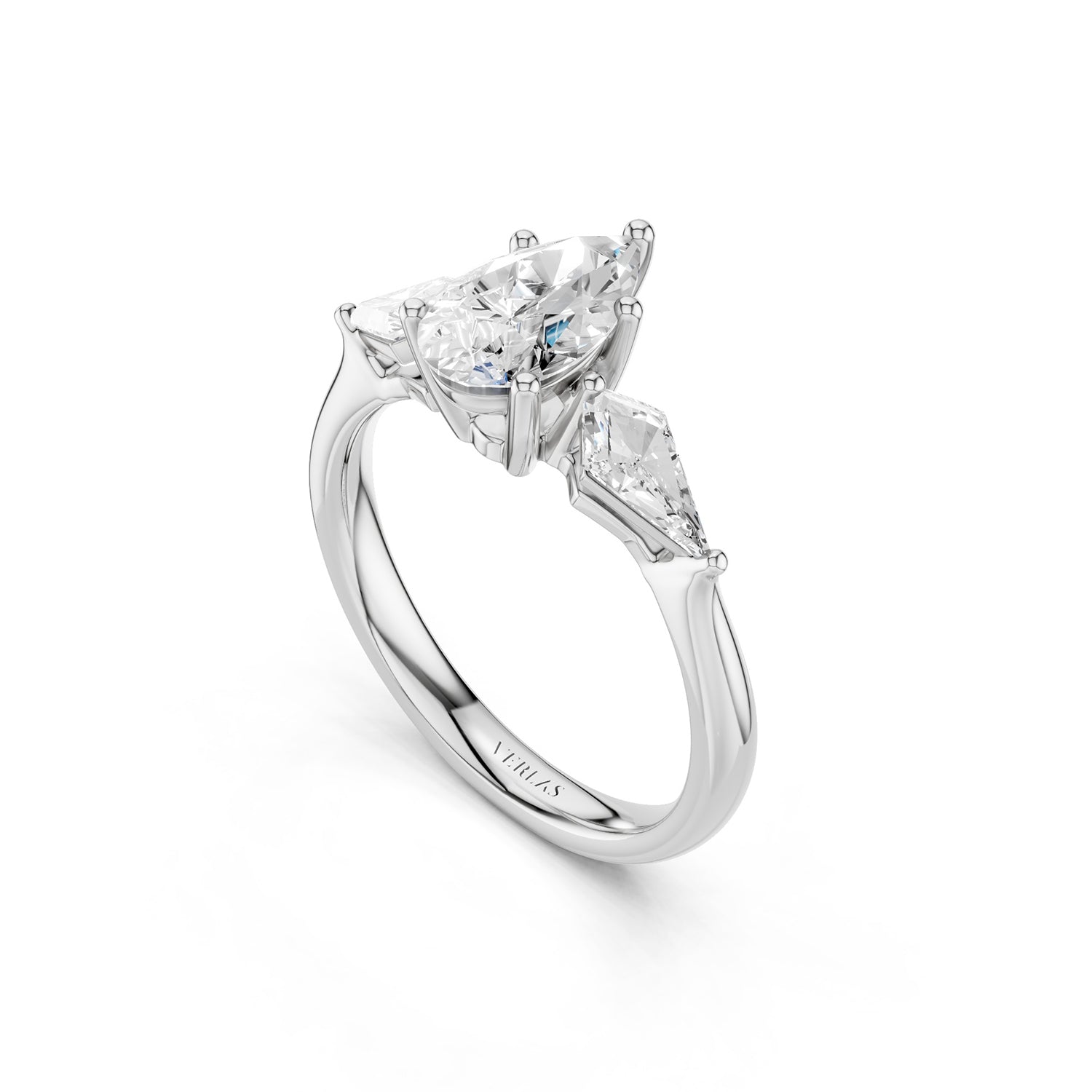 A modern take on timeless elegance, this lab-grown Pear-Kite Trinity Diamond Ring features a brilliant pear-cut center diamond framed by two kite-shaped side diamonds. Crafted in 14K gold, this three-stone design symbolizes love, balance, and forever style.