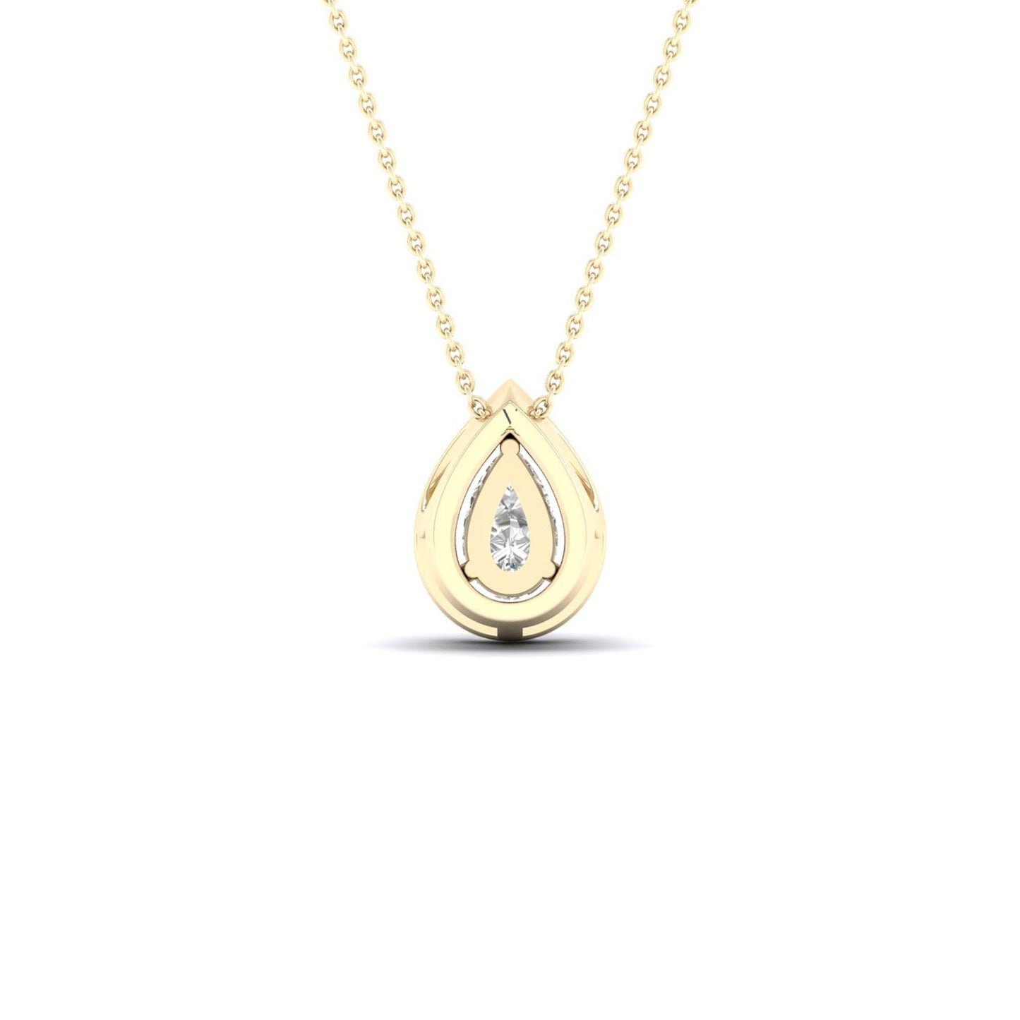 This enchanting Petite Dewdrop Halo Necklace features a petite dewdrop-shaped diamond. Surrounding it is a captivating halo of round diamonds, each one amplifying the radiance of the center stone. The design of this diamond pendant necklace is both delicate and intricate, making it a perfect accessory to add charm to your every look.
