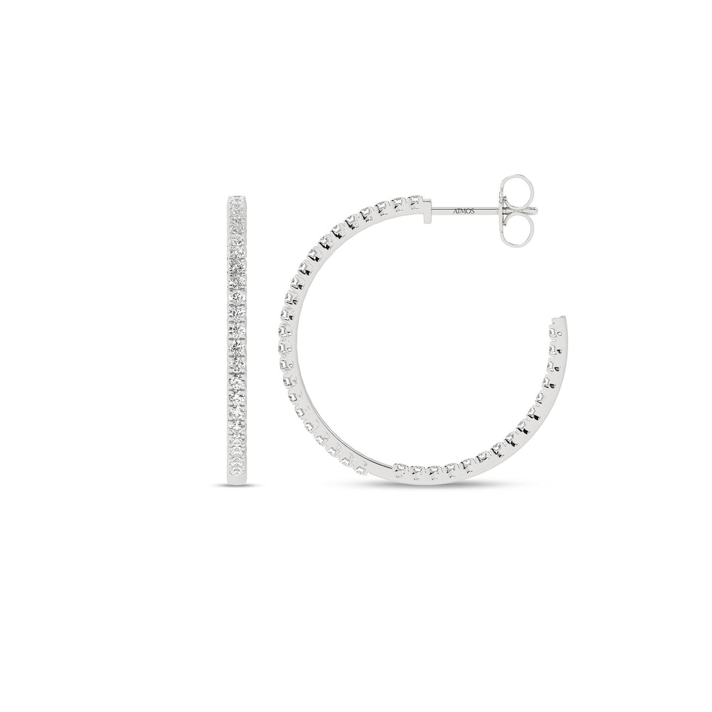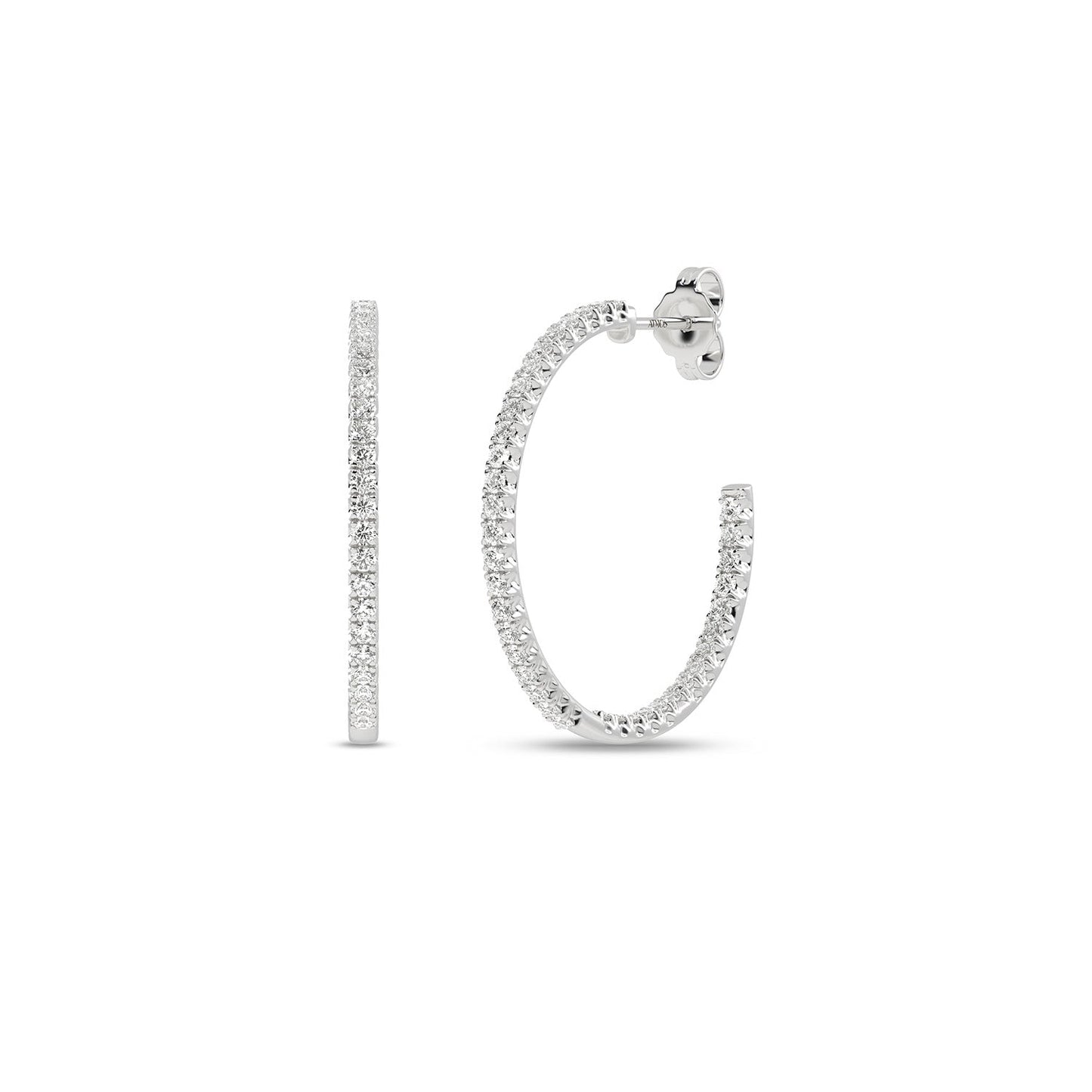 Elegant and stylish, these dainty diamond hoops consist of a row of the best lab-grown diamond pave set inside out. This statement-making pair of hoops dazzle to the core and is sure to add a gleam to your ear from every angle.