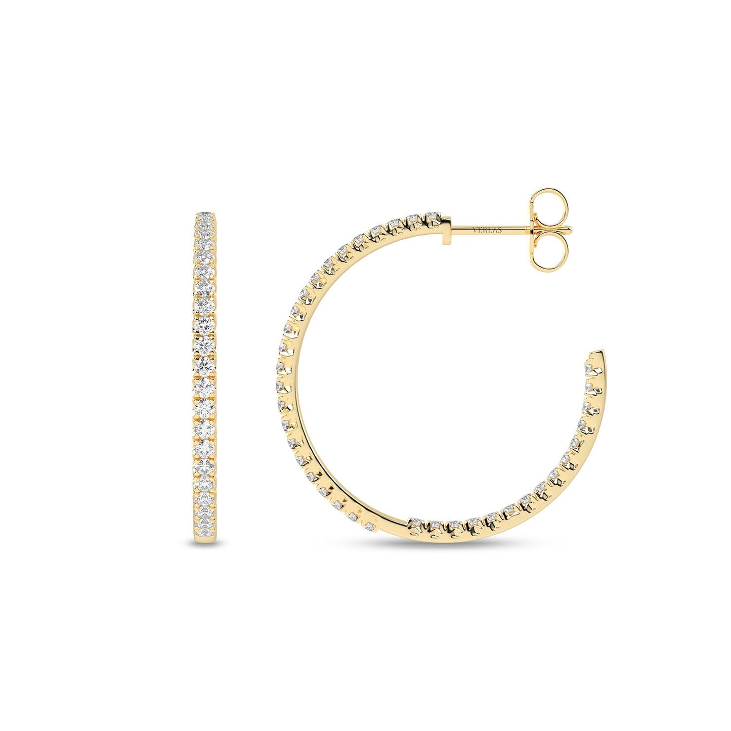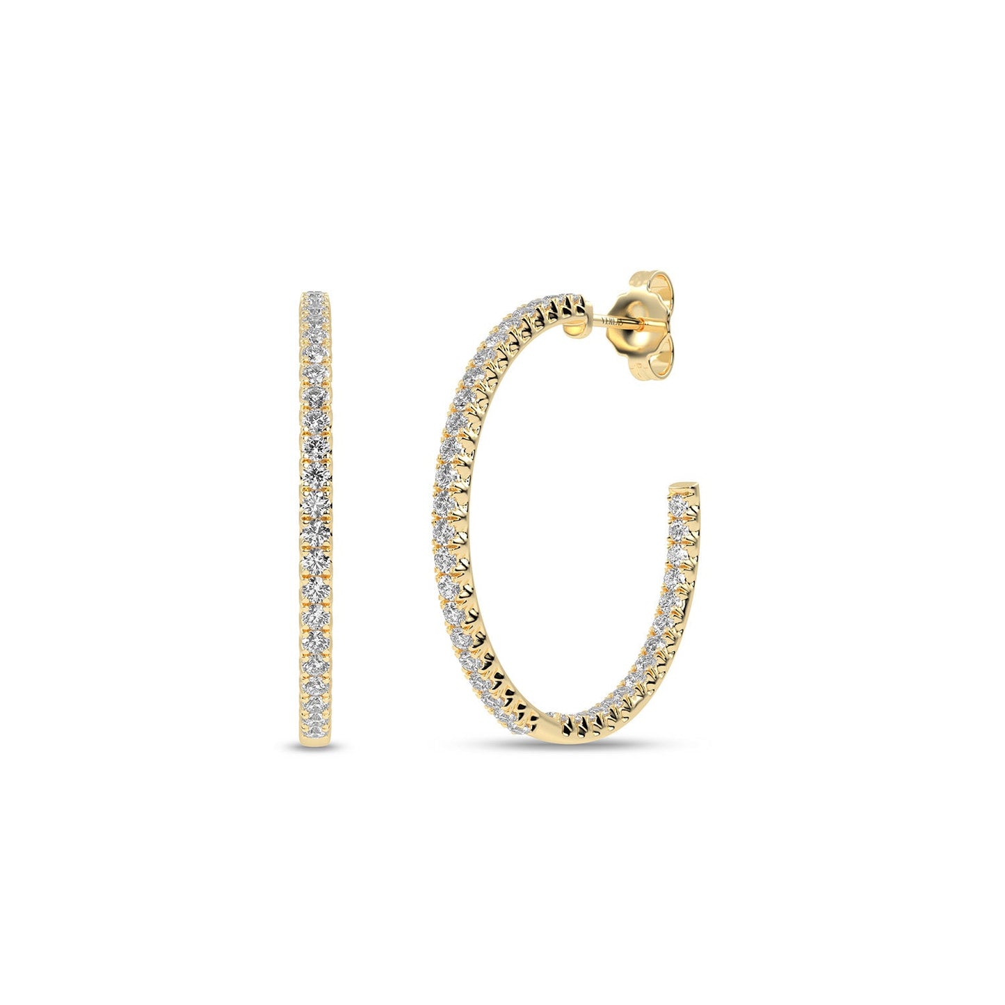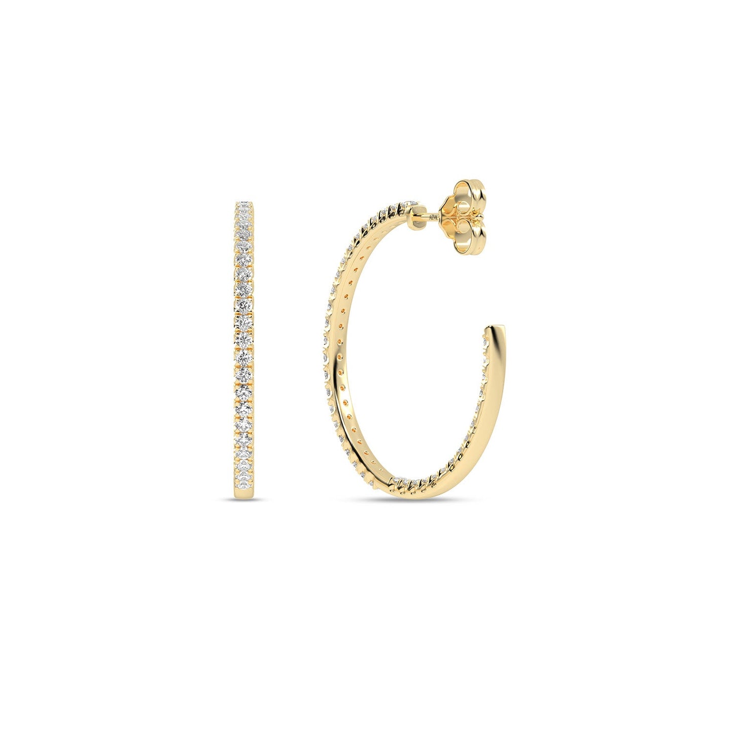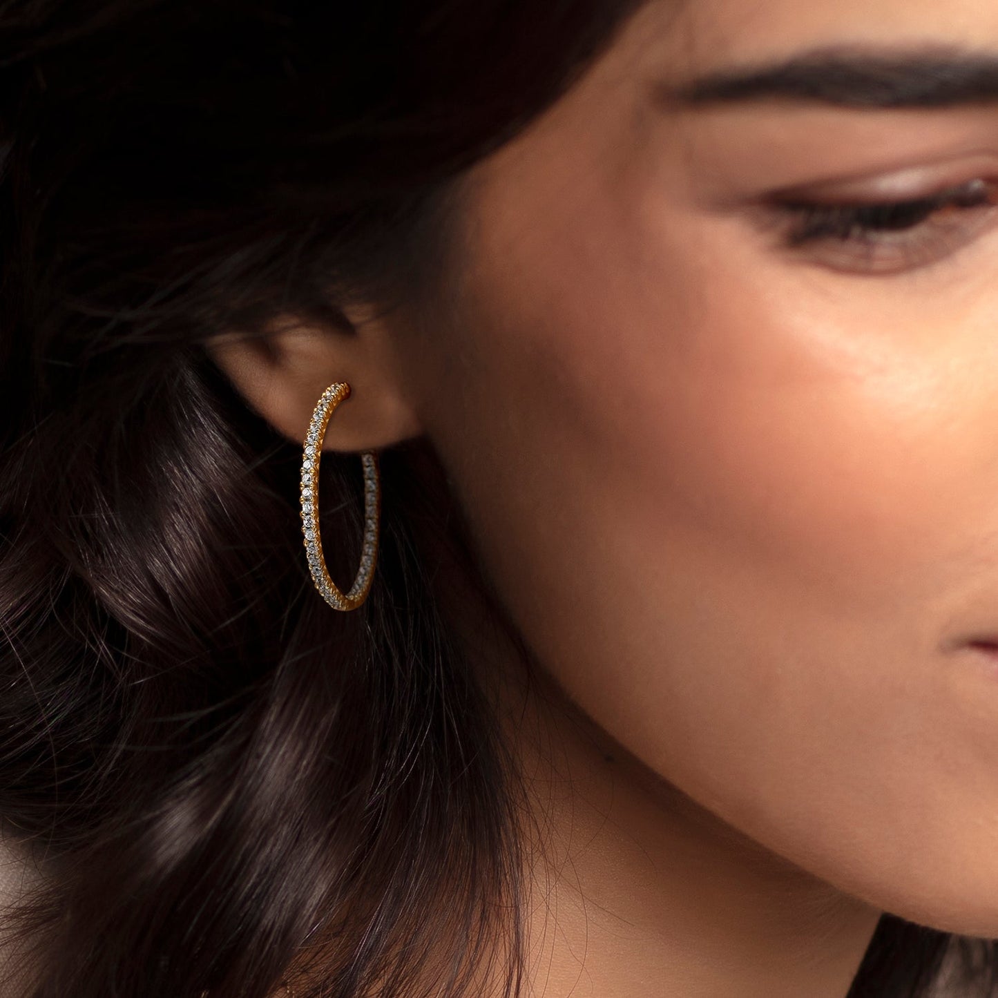 Elegant and stylish, these dainty diamond hoops consist of a row of the best lab-grown diamond pave set inside out. This statement-making pair of hoops dazzle to the core and is sure to add a gleam to your ear from every angle.