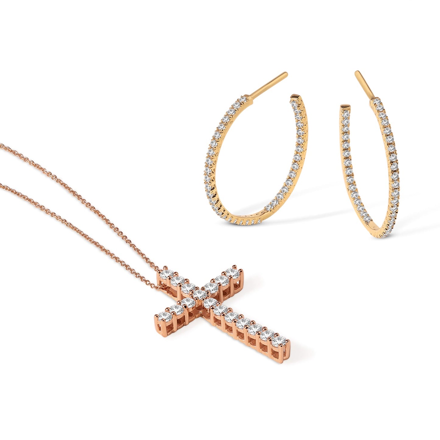 Read MoreElegant and stylish, these dainty diamond hoops consist of a row of the best lab-grown diamond pave set inside out. This statement-making pair of hoops dazzle to the core and is sure to add a gleam to your ear from every angle.